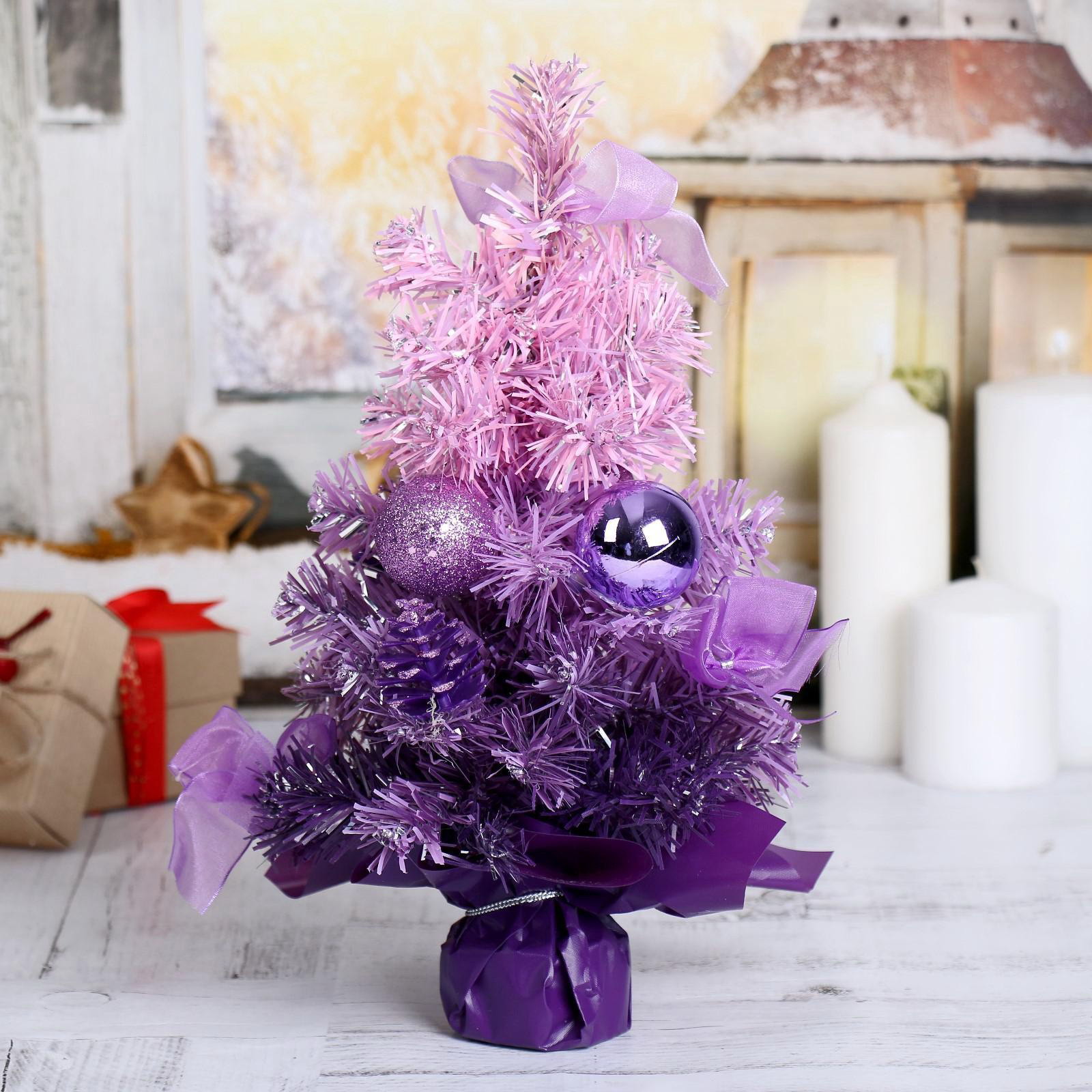 Искусственная ёлка настольная "Зимнее волшебство. Двойная", 30 см, с шарами, ветки ПВХ отгибаются, фиолетовая, 17x17x33 см., Зимнее волшебство, Китай