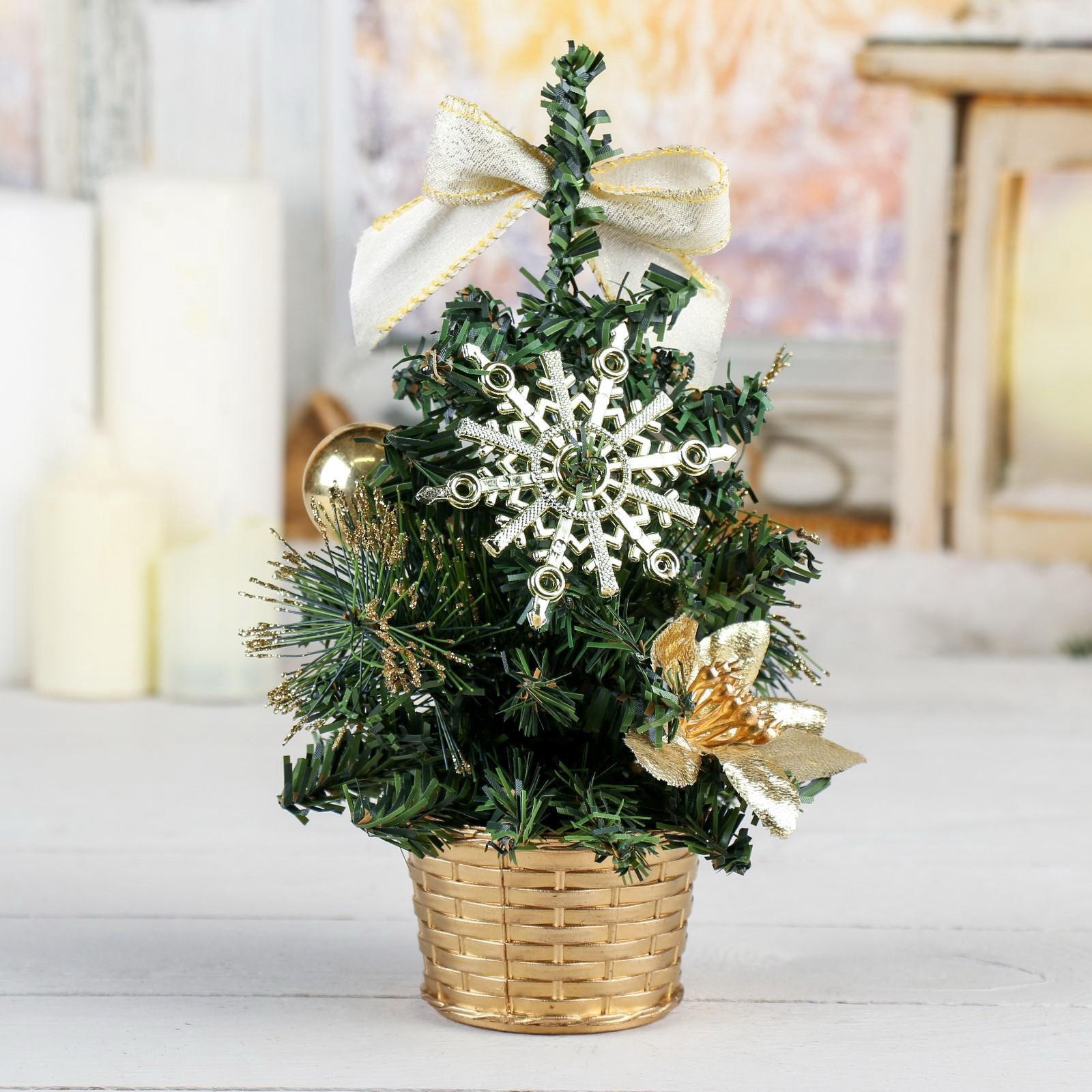 Искусственная ёлка настольная "Зимнее волшебство. Снежинка", 20 см, золото, ПВХ ветки отгибаются, 20 см., Зимнее волшебство, Китай