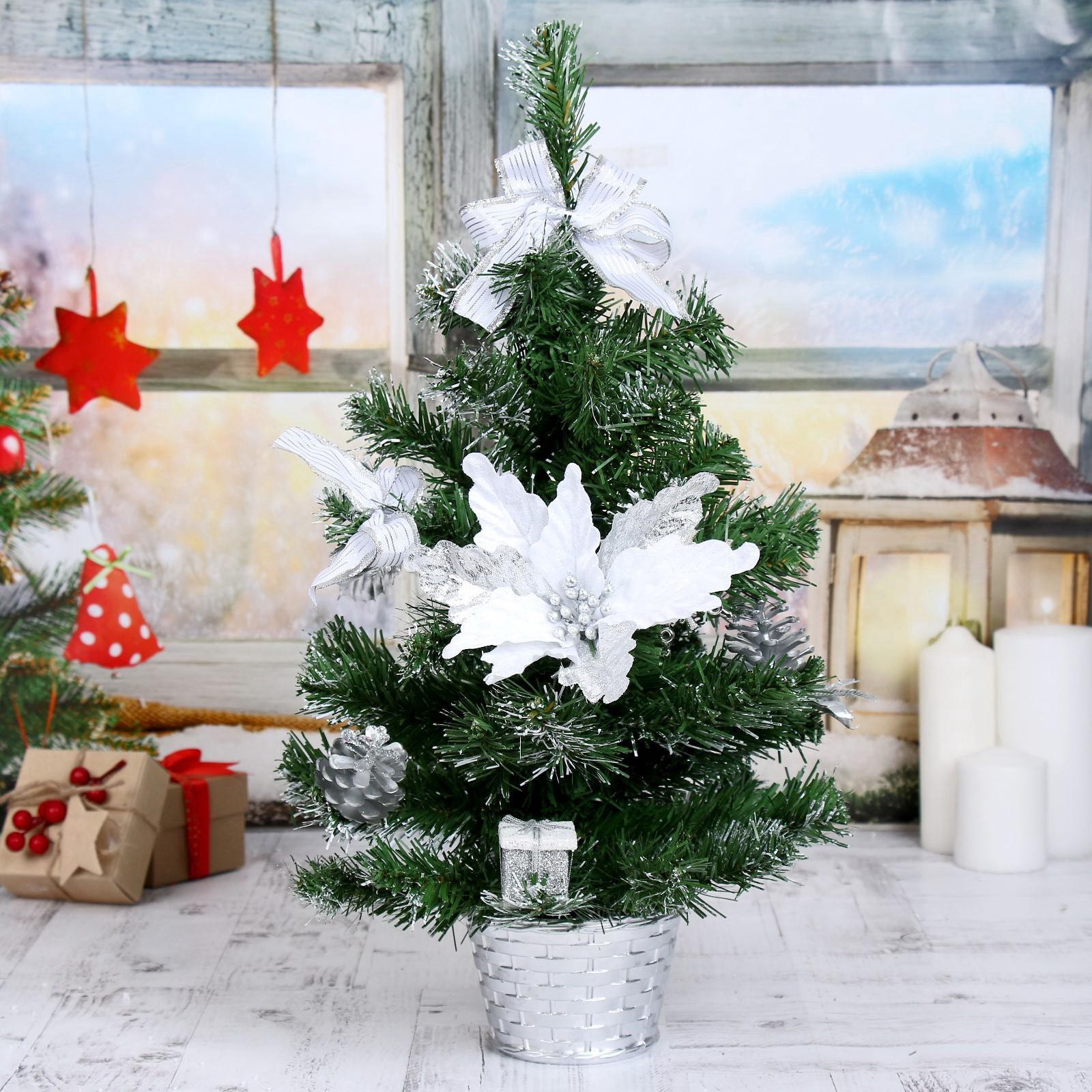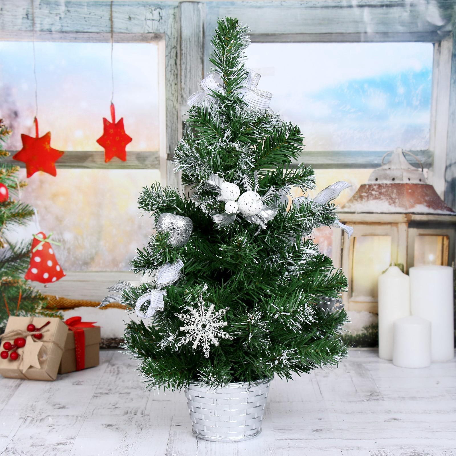 Искусственная ёлка настольная "Зимнее волшебство. Полосатые ленточки", 50 см, белый, ветки отгибаются, 50 см., Зимнее волшебство, Китай