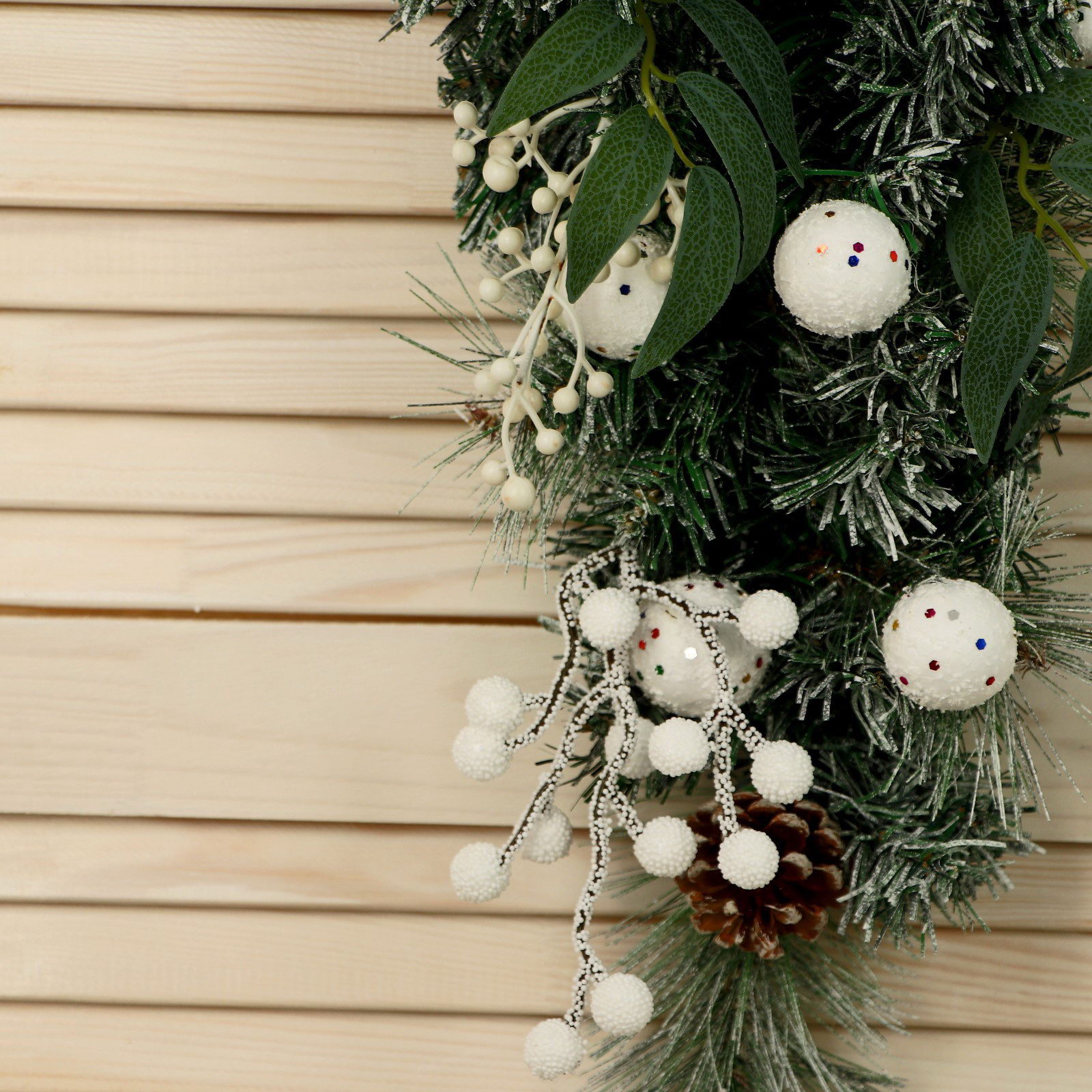 Особенности декора: Ёлочные украшения, Шишки Стиль: Ар-деко, Датский, Классика, Новогоднее барокко, Скандинавский, Советский, Фьюжн, Шебби-шик Размер упаковки: 30 x 6 x 68 см. Цвет декора: Белый Цвет хвои: Зелёный Цвет хвои: Зелёный tnved: 9505109000 Символ года: Нет Высота, см: 60 Тип ёлки: Подвесная Тип веток: ПВХ Крепление веток: Отгибающиеся Настенная ёлка "Уютная сказка", 60 см это мягкий и доброжелательный акцент для новогоднего убранства. Подвесная модель высотой 60 см выполнена из ПВХ-веток с отгибающимся креплением, имеет зелёную хвою и украшения белого цвета элемент оформления в стиле ар-деко, советской эстетики и скандинавского минимализма. Решение для тех, кто ценит свет, объём и зимнюю атмосферу в формате настенного или дверного декора. Особенности