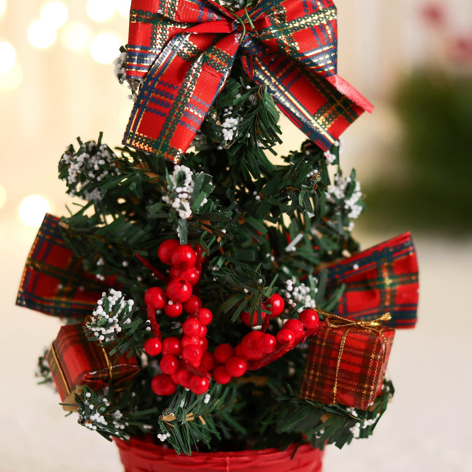 Искусственная ёлка настольная "Зимнее волшебство. Праздничная", 10x17 см, ПВХ ветки отгибаются, 10x17 см., Зимнее волшебство, Китай