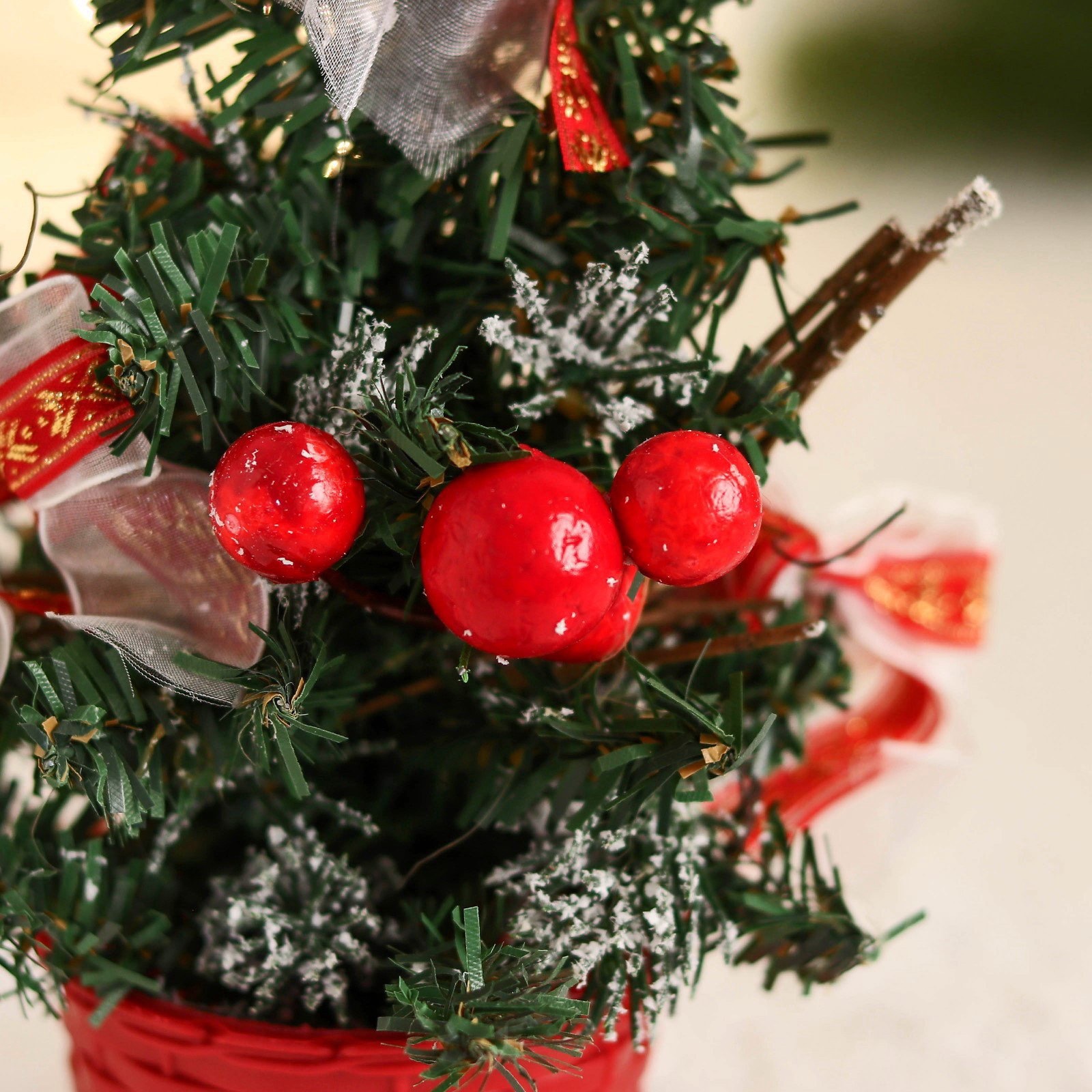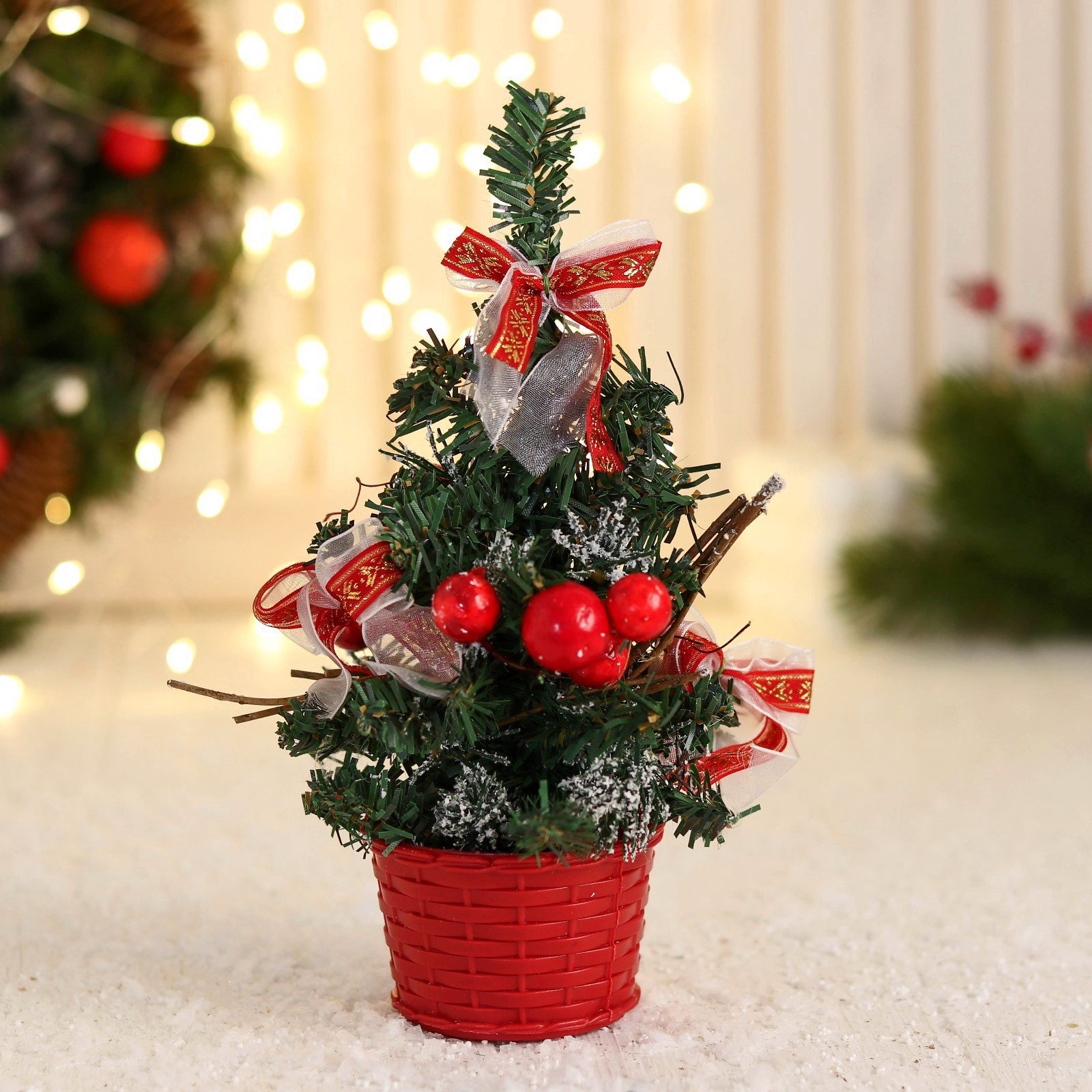 Искусственная ёлка настольная "Зимнее волшебство. Праздничная", бантик в полоску, 10x17 см, ПВХ ветки отгибаются, 10x17 см., Зимнее волшебство, Китай