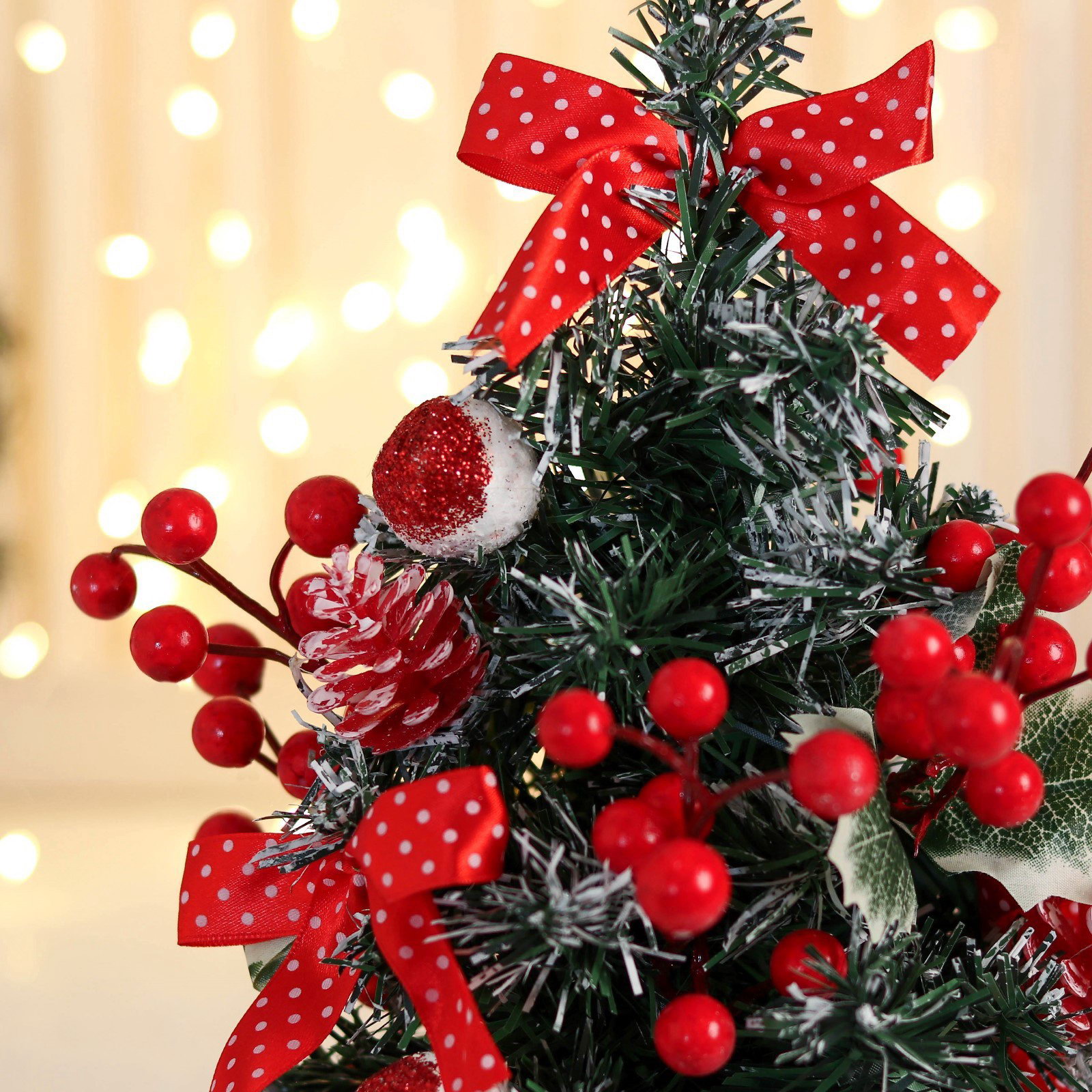 Искусственная ёлка настольная "Зимнее волшебство. Праздничная", бантик в горох, 15x29 см, ветки отгибаются, 15x29 см., Зимнее волшебство, Китай