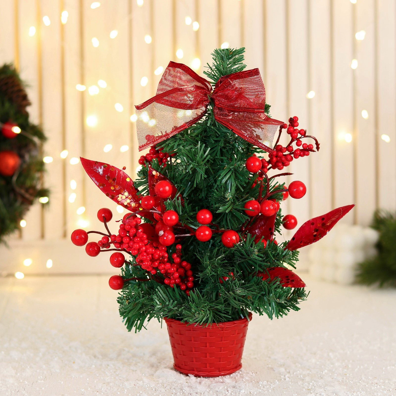 Искусственная ёлка настольная "Зимнее волшебство. Праздничная", 14x26 см, ПВХ ветки отгибаются, 14x26 см., Зимнее волшебство, Китай