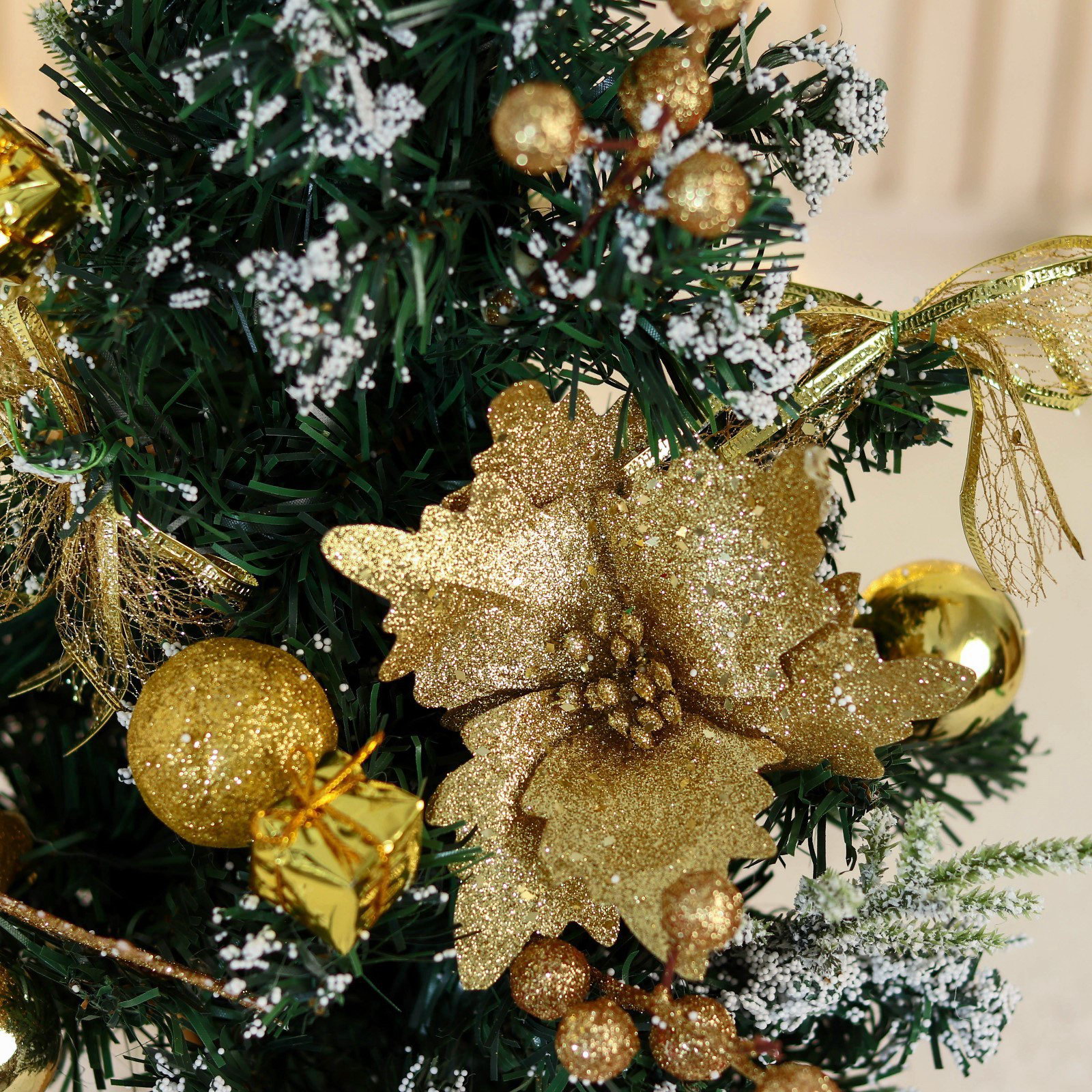 Искусственная ёлка настольная "Зимнее волшебство. Праздничная", цветок шары, 20x52 см, ПВХ ветки отгибаются, золотистый, 20x52 см., Зимнее волшебство, Китай