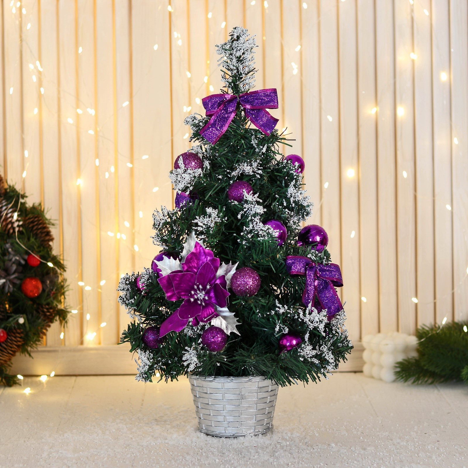 Стиль: Ар-деко, Датский, Классика, Новогоднее барокко, Скандинавский, Советский, Фьюжн, Шебби-шик Размер упаковки: 24 x 12 x 40 см. Цвет хвои: Зелёный Цвет декора: Фиолетовый Цвет декора: Фиолетовый tnved: 9505109000 Высота, см: 50 Символ года: Нет Тип ёлки: Настольная Крепление веток: Отгибающиеся Особенности декора: Ёлочные украшения Тип веток: ПВХ Настольная ёлка "Праздничная", 58 см, с фиолетовым декором это мягкий и необычный акцент для зимнего убранства. Искусственная модель высотой 58 см выполнена из ПВХ-веток с отгибающимся креплением, имеет зелёную хвою и украшения фиолетового цвета элемент оформления в универсальном стиле, сочетающем ар-деко, советские мотивы и скандинавскую простоту. Решение для тех, кто ценит свет, объём и атмосферу Нового года в формате настольного или напольного декора. Особенности