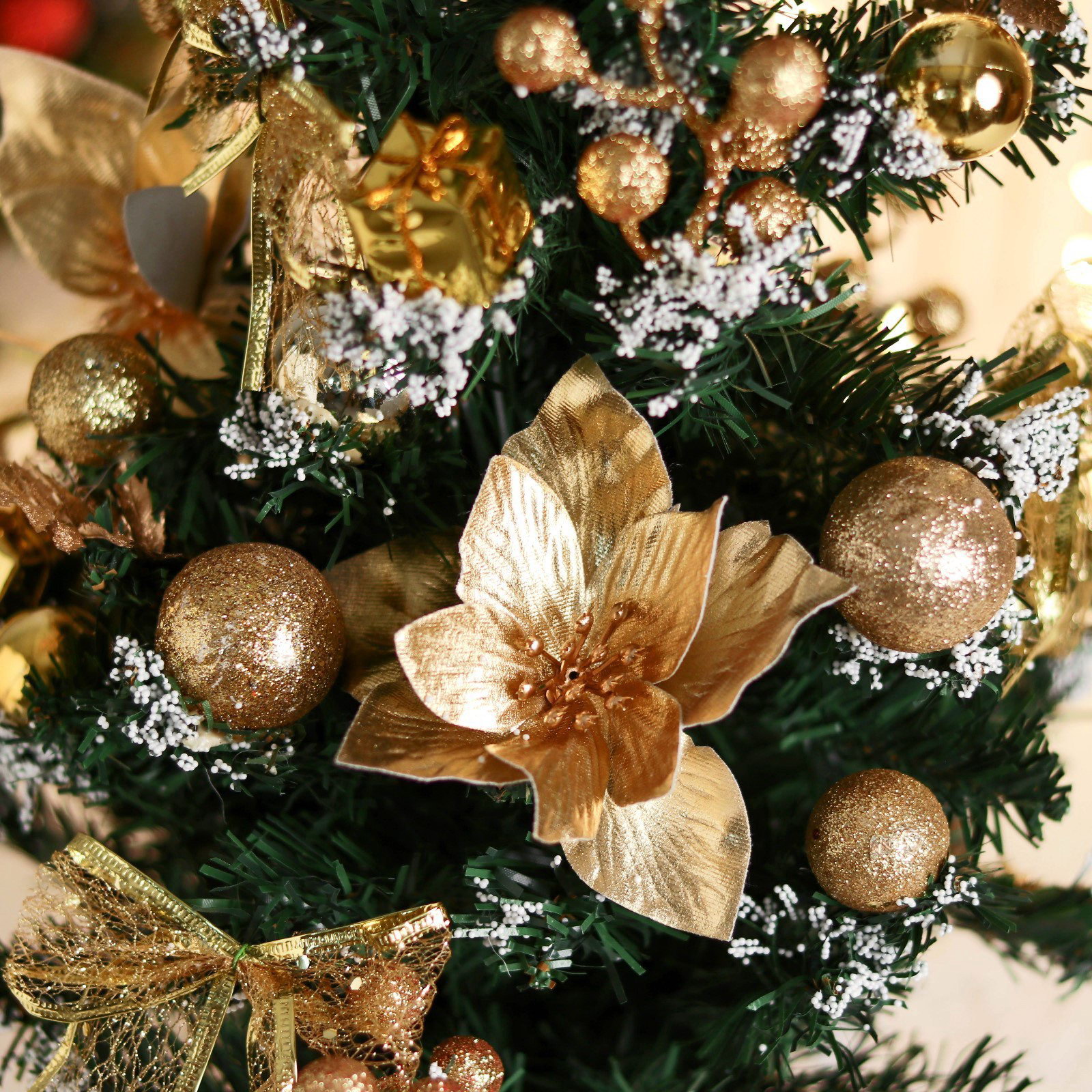 Искусственная ёлка настольная "Зимнее волшебство. Праздничная", бантик цветок шары, 28x58 см, ПВХ ветки отгибаются, золотистая, 28x58 см., Зимнее волшебство, Китай