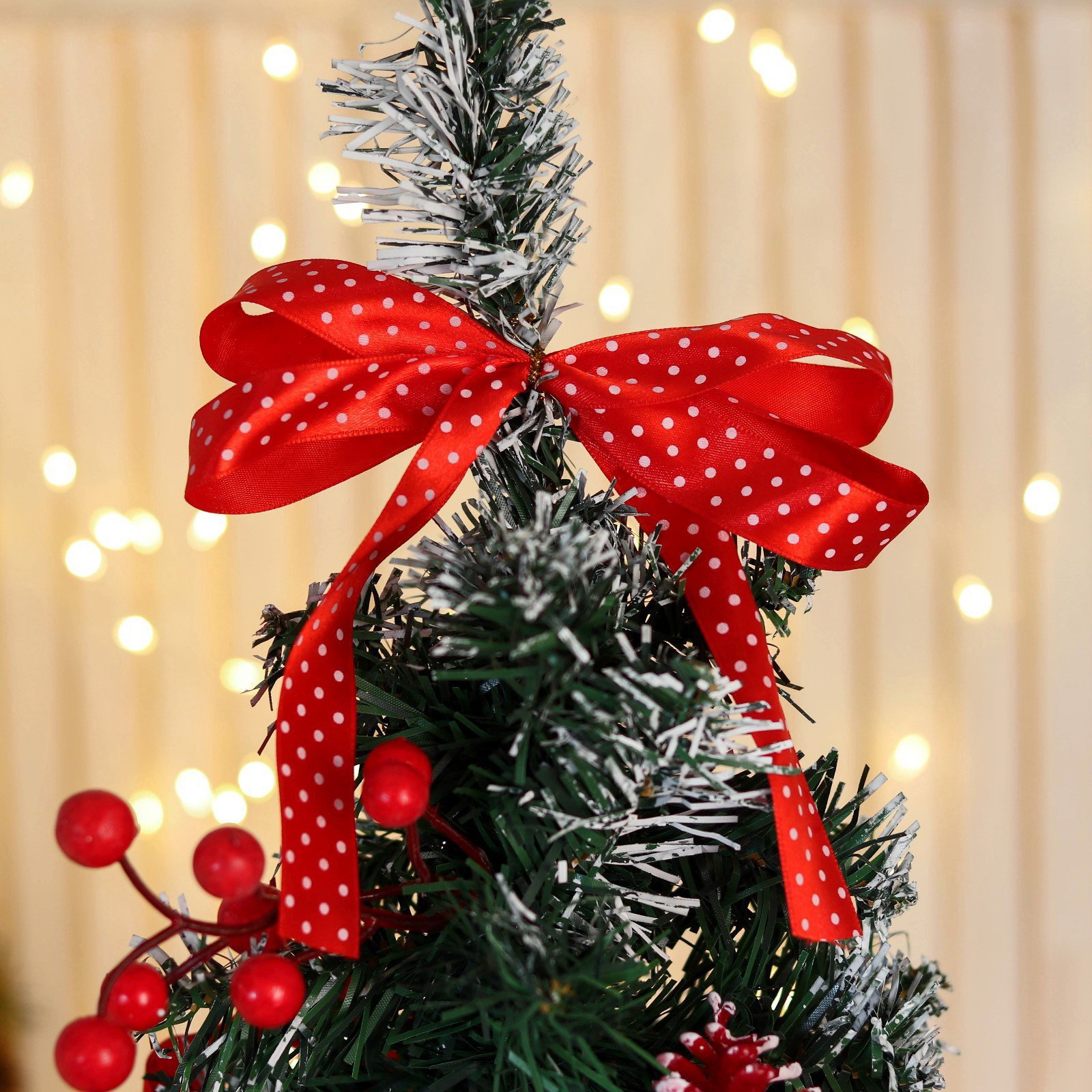 Искусственная ёлка настольная "Зимнее волшебство. Праздничная", бантик в горох, 28x58 см, ПВХ ветки отгибаются, 28x58 см., Зимнее волшебство, Китай