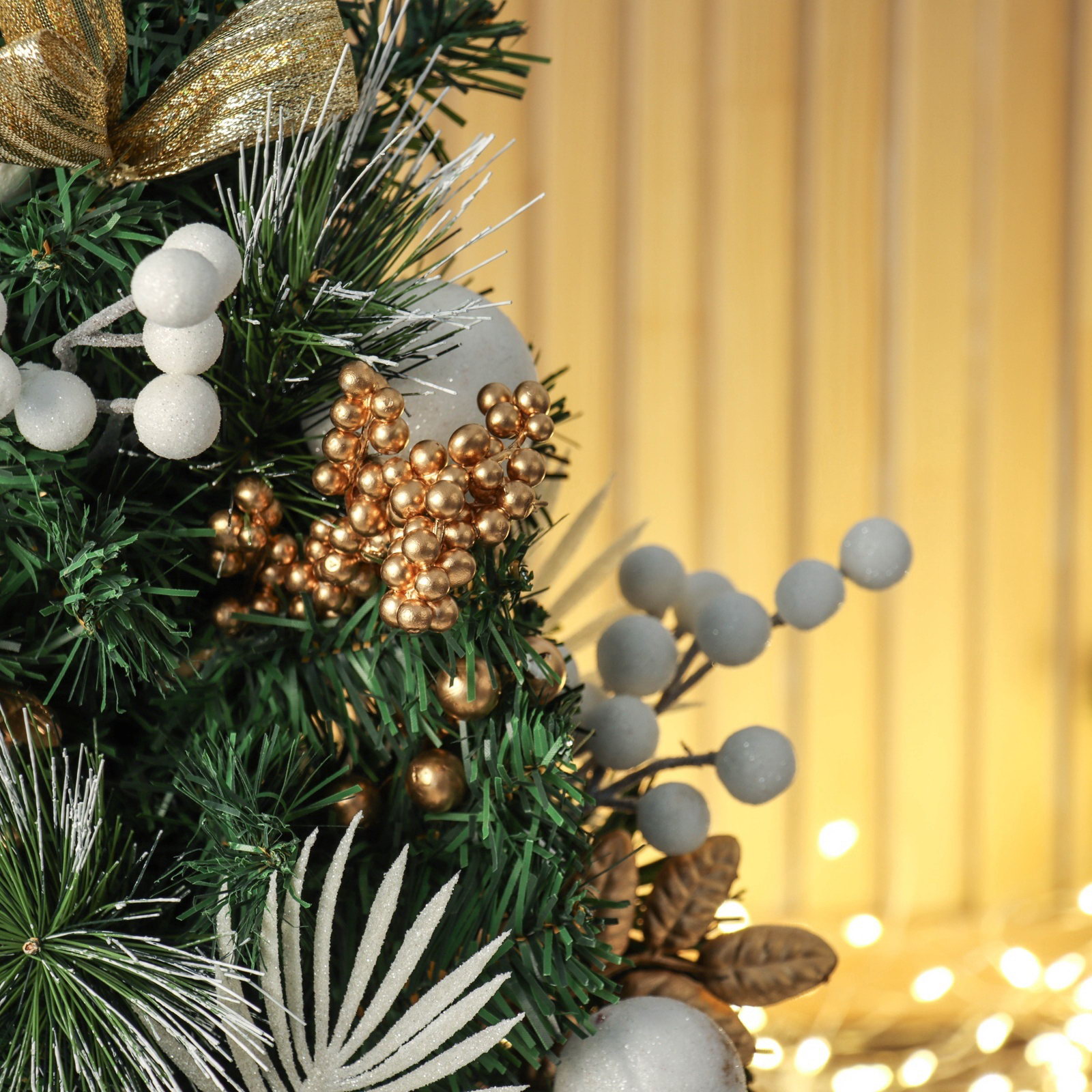 Праздник начинается с одного взгляда на белые шары и крону Эта ёлка делает рабочий стол или угол комнаты частью вашей личной зимней истории. Зелёные тона и холодные белые акценты работают вместе, чтобы передать дух Нового года и предпраздничное ожидание. Используйте её как самостоятельный элемент или как фон для других украшений одинаково хорошо усиливает атмосферу чуда и доброжелательности дома. Кроме того, ёлка "Ажурная" станет прекрасным дополнением к вашим новогодним фотосессиям, создавая атмосферу уюта и тепла. Её компактные размеры позволяют легко разместить её даже в самых маленьких пространствах, не теряя при этом в стиле и элегантности. Не упустите возможность сделать свой праздник ещё более волшебным с этой изысканной настольной ёлкой! | ||