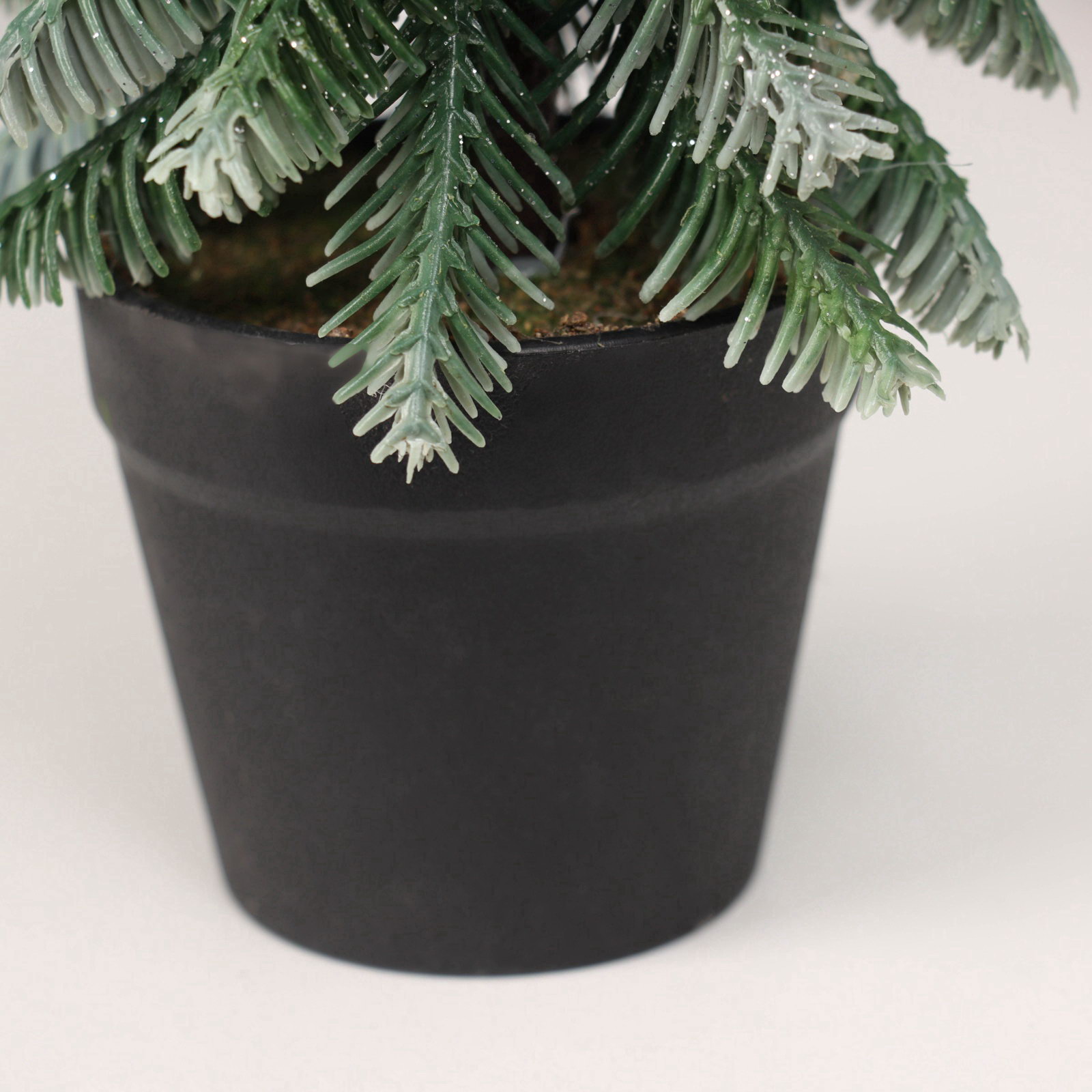 Искусственная ёлка настольная "Зимнее волшебство. Заснеженная с блёстками" в горшочке, 22 см, 7.5x22 см., Зимнее волшебство, Китай