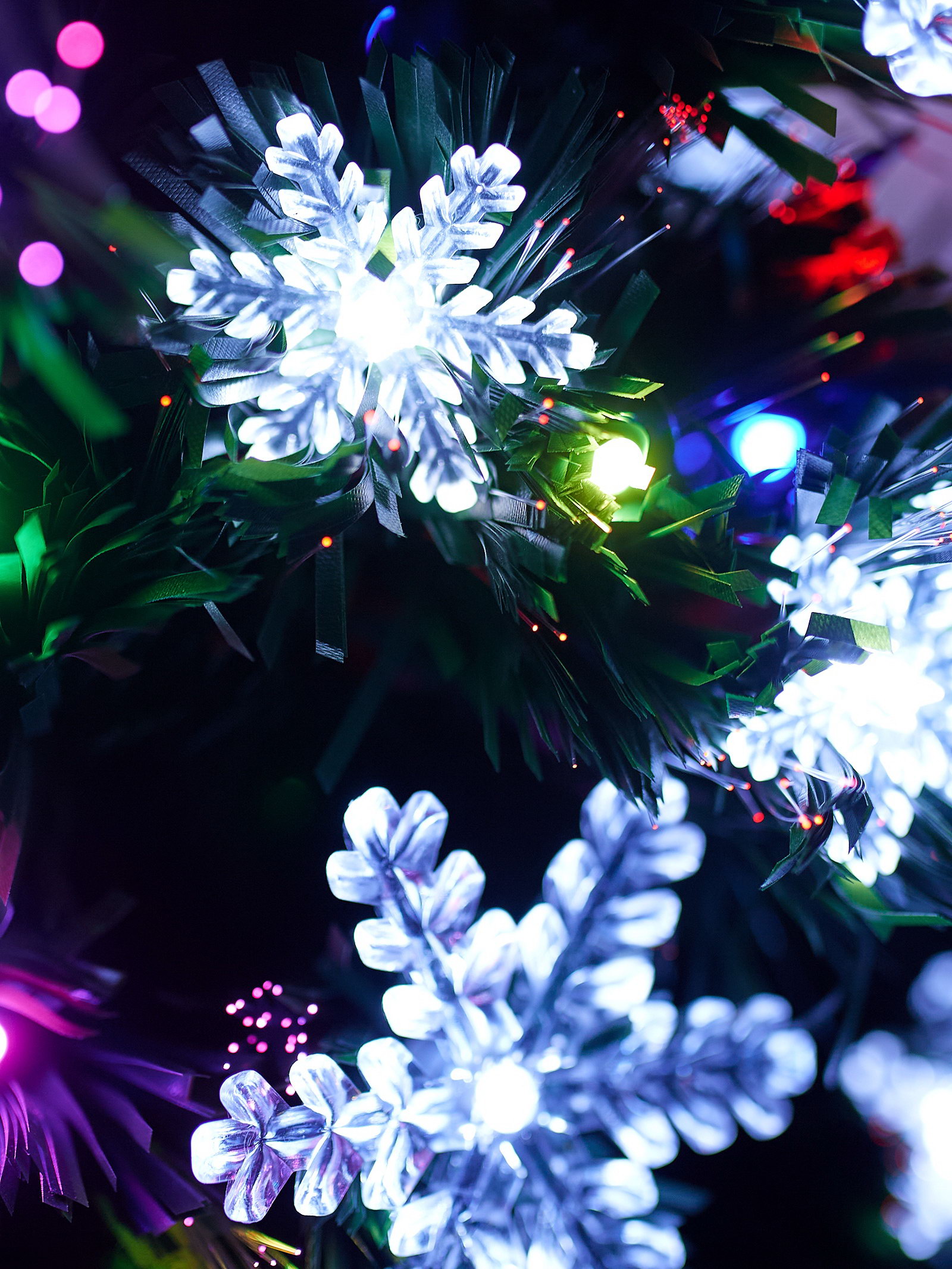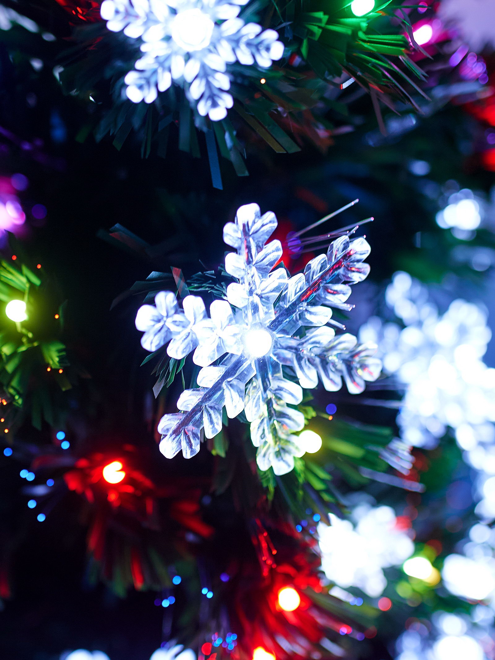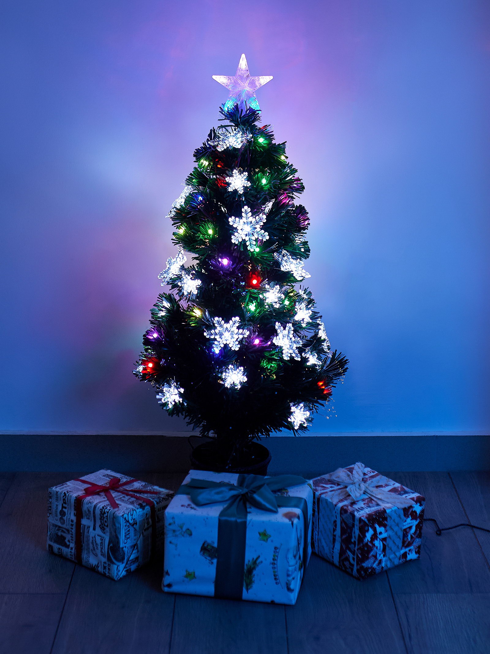 Ёлка светодиодная "Снежинки" 90 см, диаметр нижнего яруса 45 см, 80 веток, мигание, свечение мульти, 40x20x90 см., Зимнее волшебство, Китай