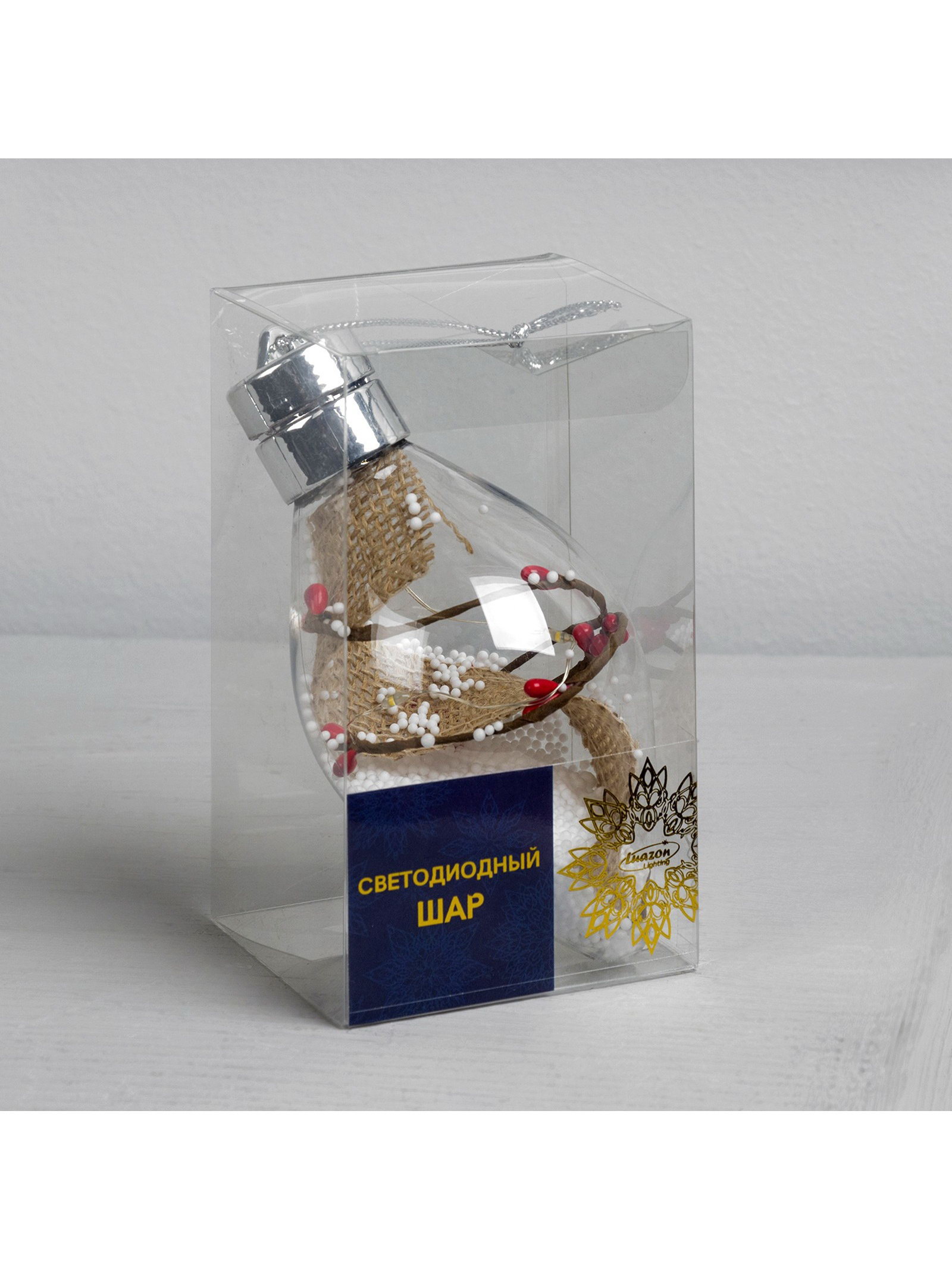 Ёлочный шар "Новый год", 5 LED, от батареек, свечение тёплое белое, Luazon Lighting, Китай