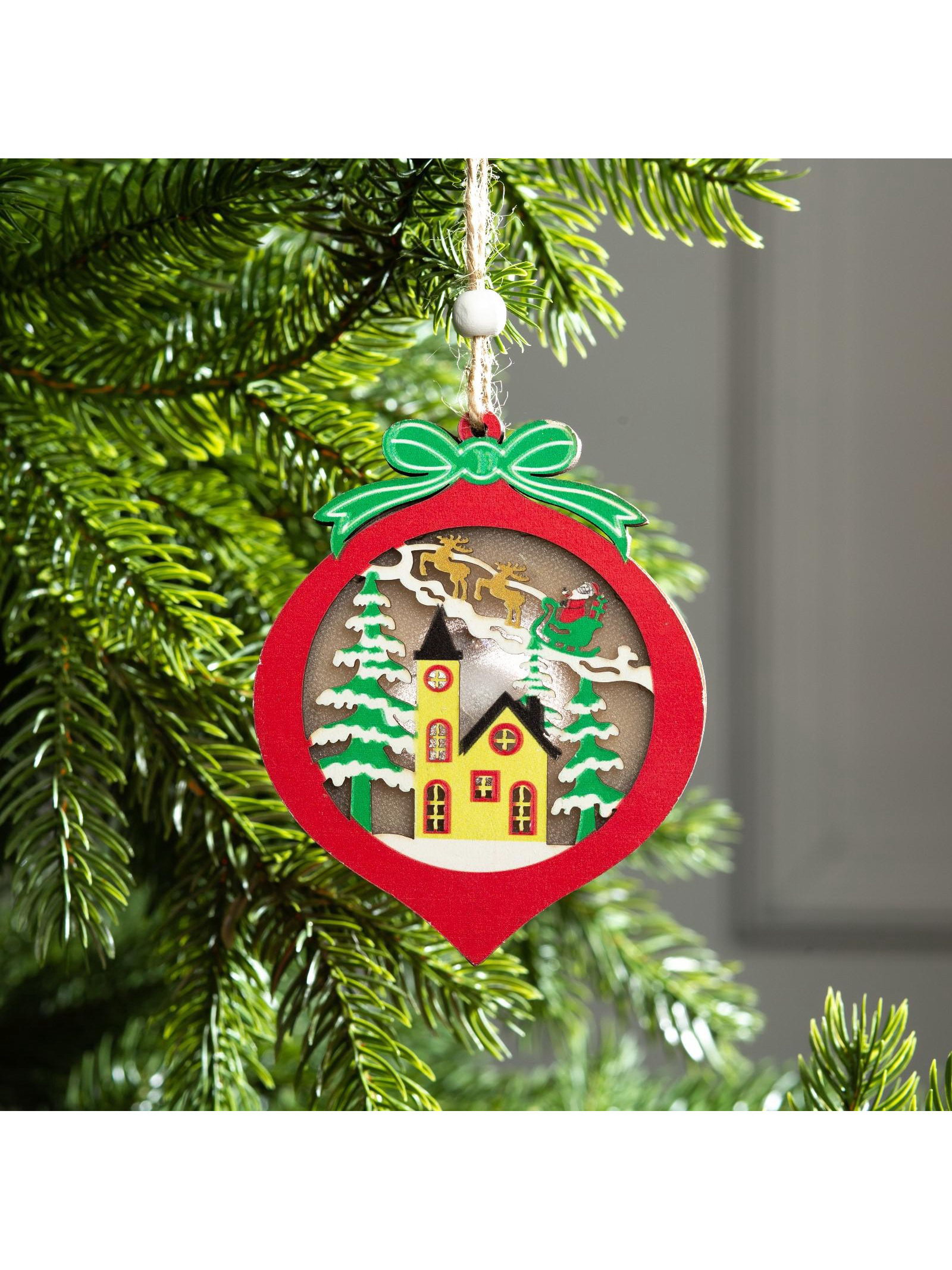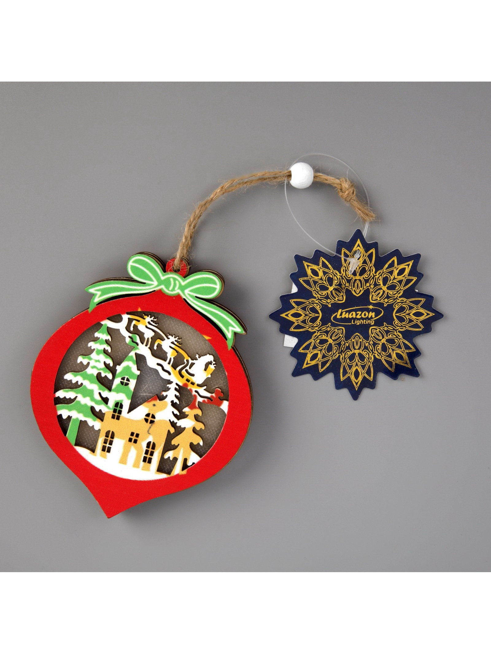 Ёлочная игрушка "Новогодний шар", 10х10х1 см, 3 LED, от батареек, свечение тёплое белое, 1x10x10 см., Luazon Lighting, Китай