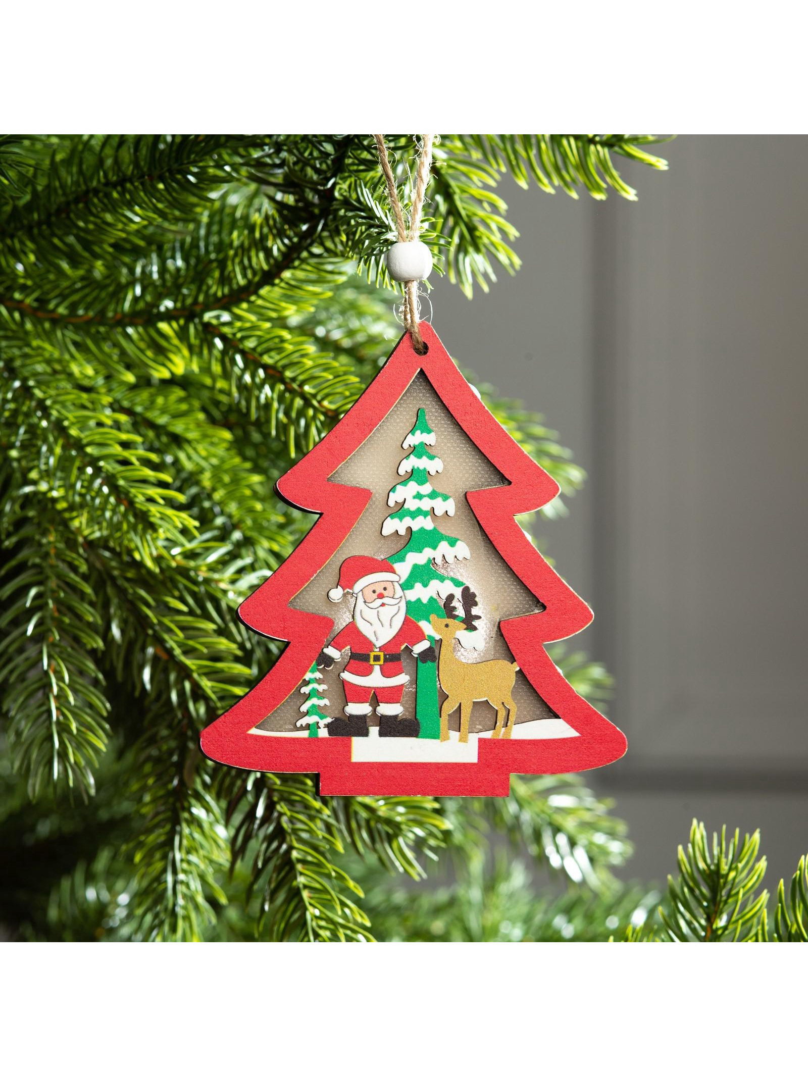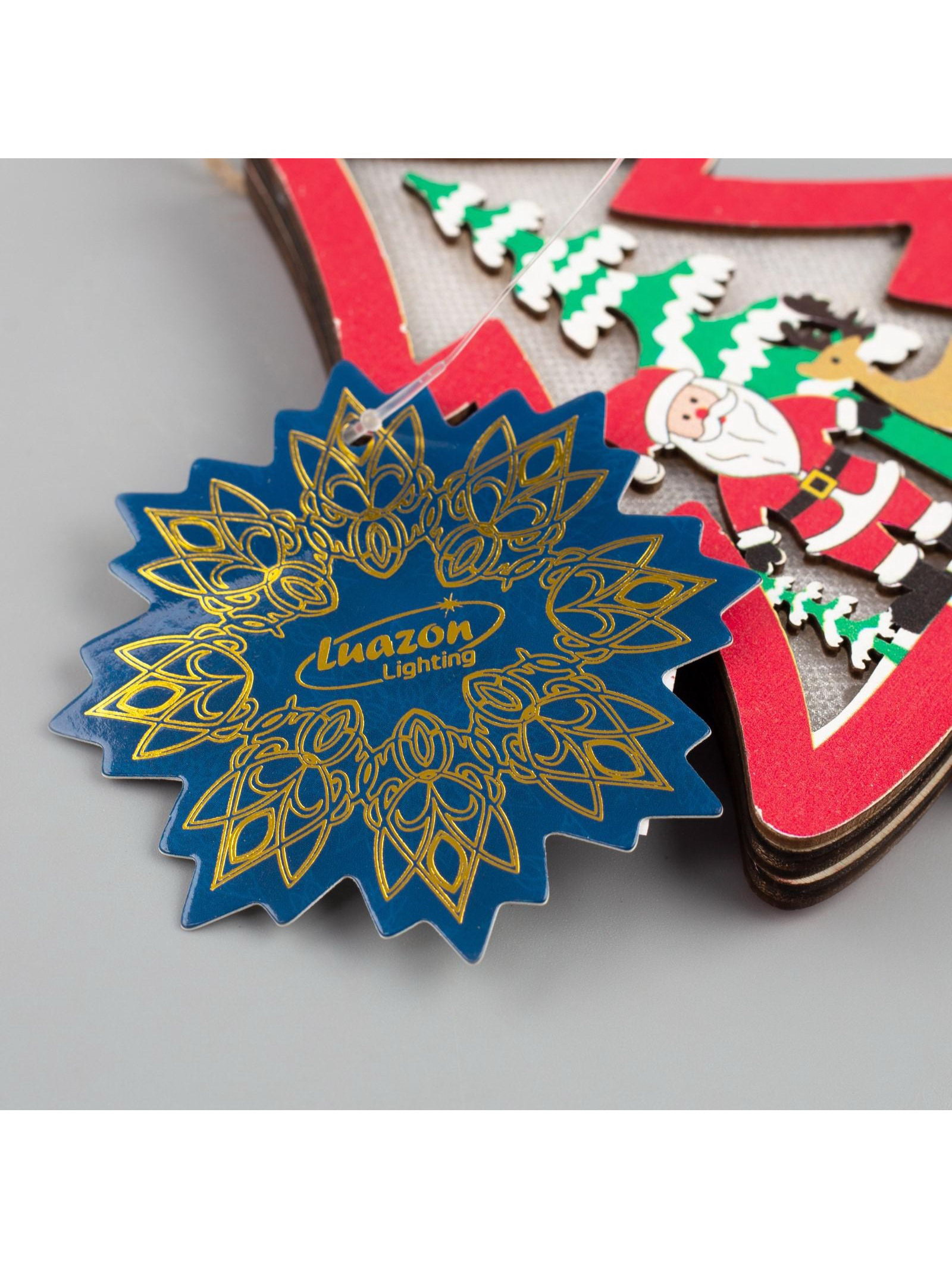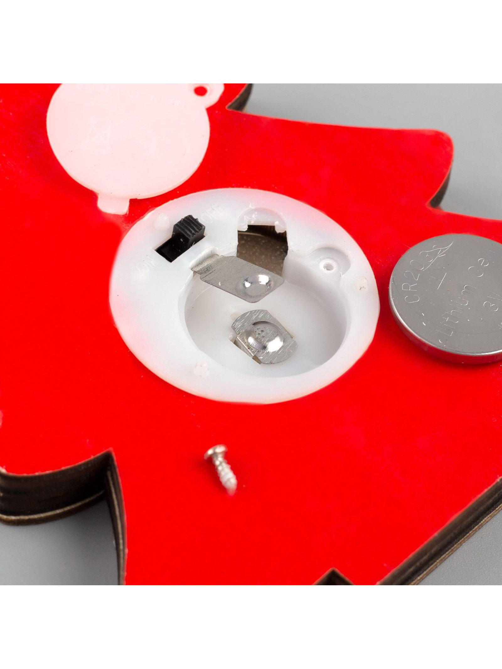 Ёлочная игрушка "Красная ёлочка с Дедом Морозом", 10х10х1 см, 3 LED, от батареек, свечение тёплое белое, 1x10x10 см., Luazon Lighting, Китай