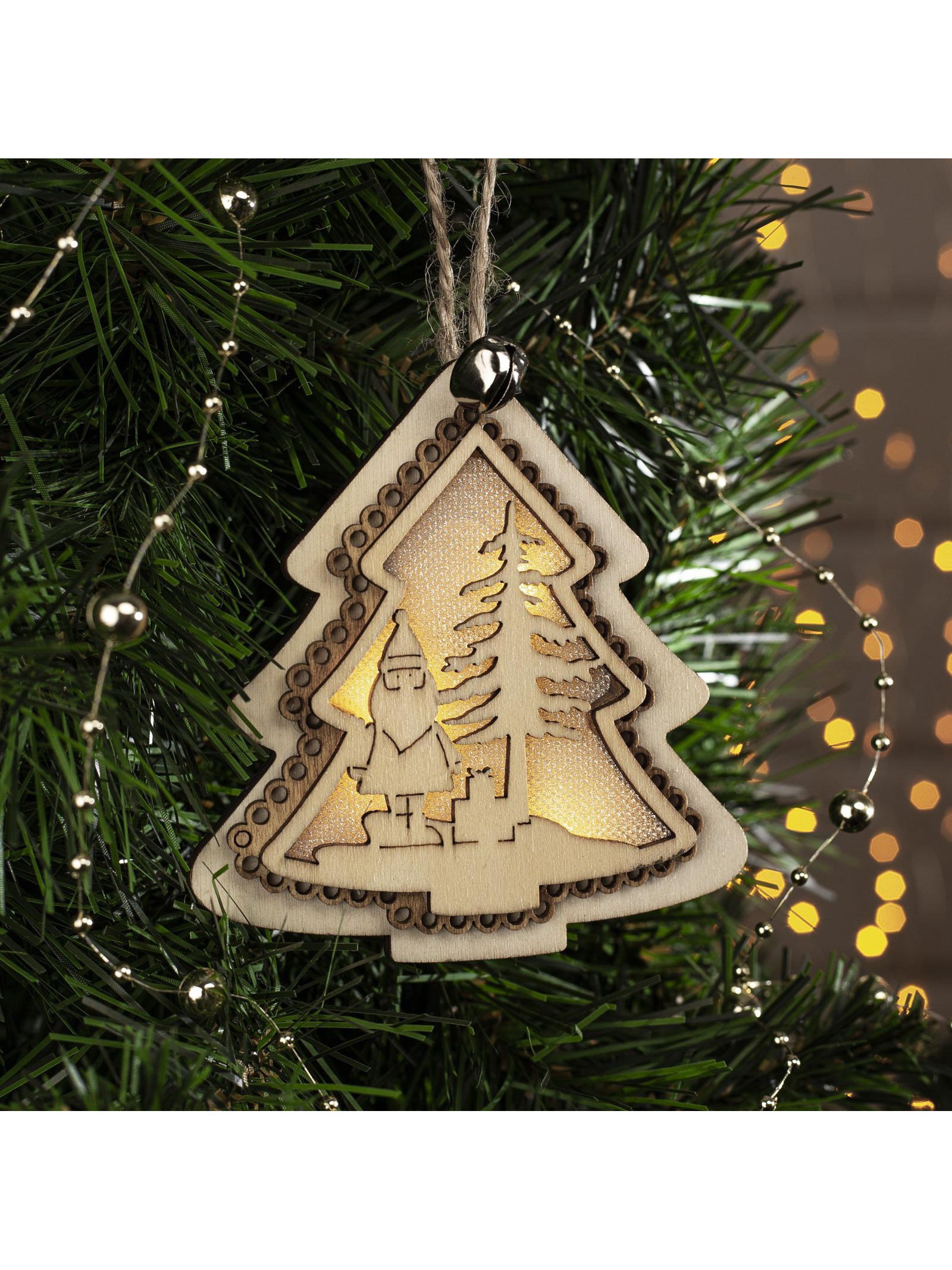 Ёлочная игрушка "Ёлочка с Дедом Морозом", 10х9х1 см, 4 LED, от батареек, свечение тёплое белое, 1x9x10 см., Luazon Lighting, Китай