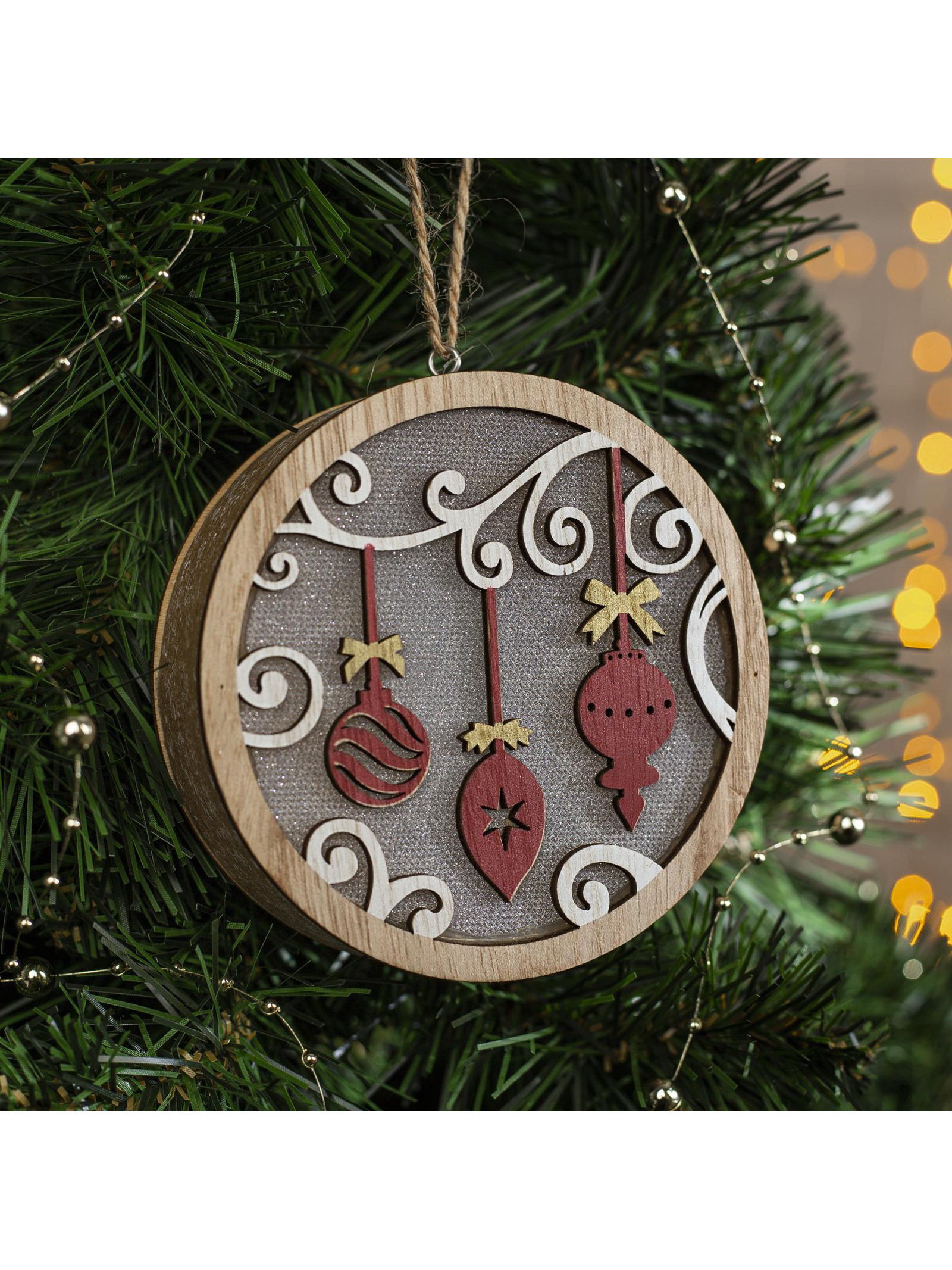 Ёлочная игрушка "Новогодние игрушки", 11х11х3 см, 4 LED, от батареек АААх2, свечение тёплое белое, 3x11x11 см., Luazon Lighting, Китай
