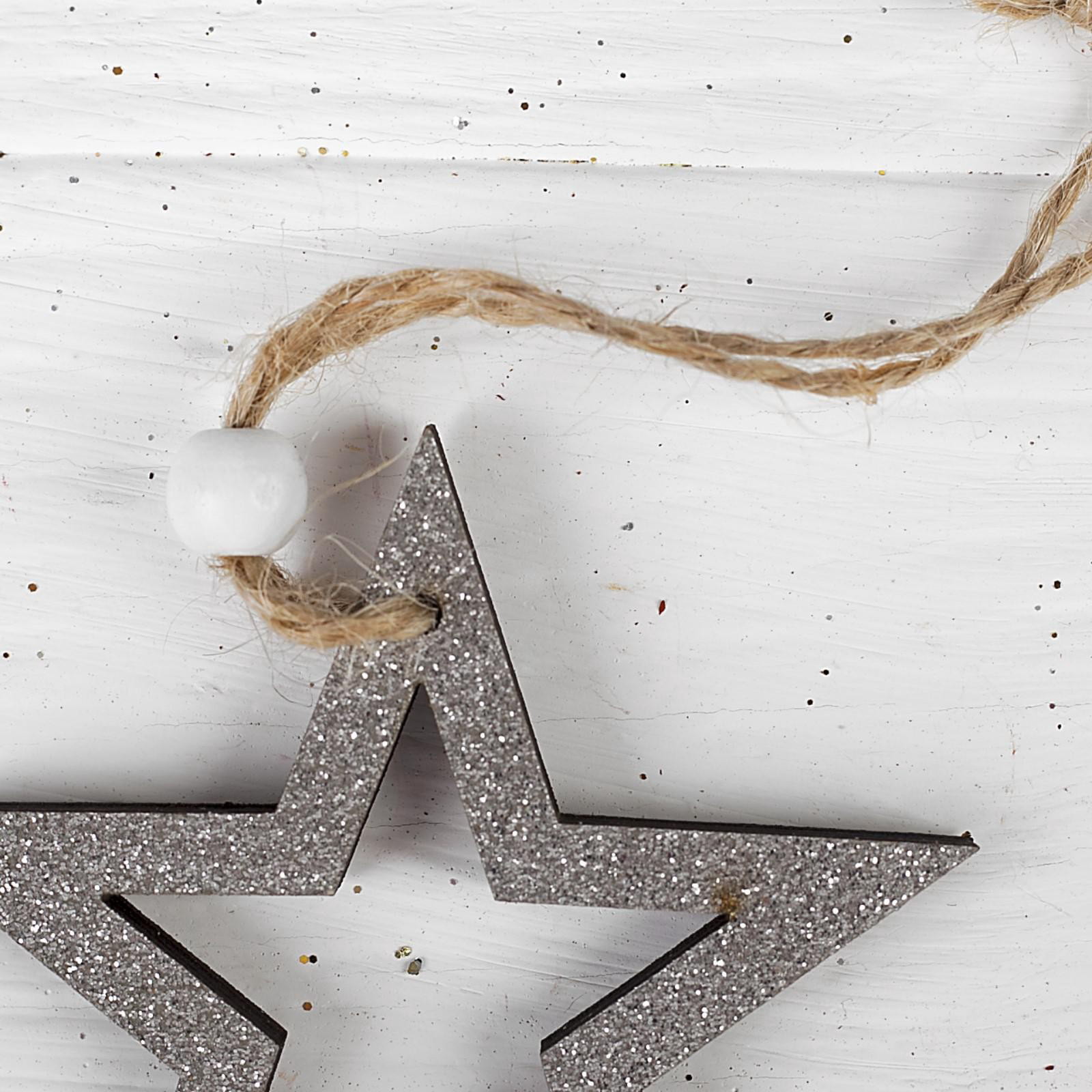 Елочная игрушка "Серебряная звезда", 7.9x7.9x0.5 см., Лесная мастерская, Китай