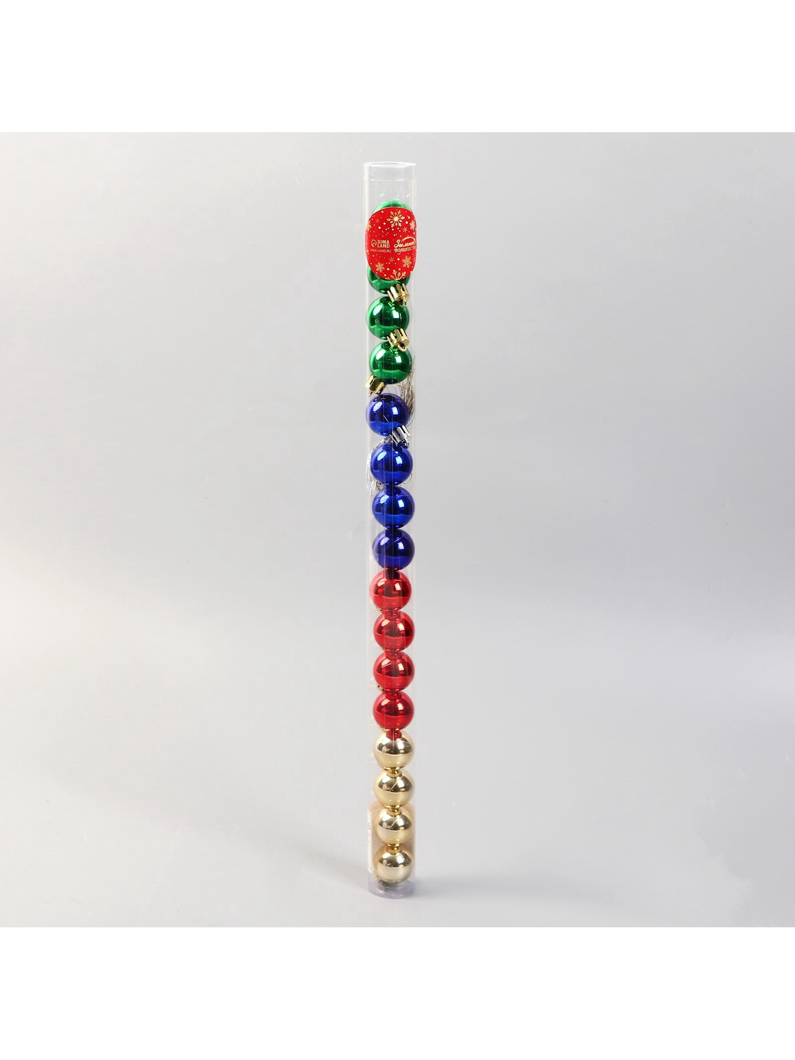 Размер упаковки: 3 x 3 x 49 см. Цвет: МИКС Набор: Да Форма игрушки: Шар Символ года: Нет Тематика праздника: Новый год tnved: 9505109000 tnved: 9505109000 Рисунок: Нет В наборе, шт.: 16 Диаметр шара, см: 3 Особенности: Однотонная Стиль: Фьюжн Глянцевые шары для ёлки это современный декор в стиле фьюжн, созданный, чтобы добавить празднику яркости и настроения. Набор из 16 новогодних игрушек диаметром 3 см оформлен в радужном стиле. Пластиковые шары с однотонной поверхностью придают ёлке упорядоченный, но живой вид, подходящий как для традиционного, так и для нестандартного интерьера. Особенности