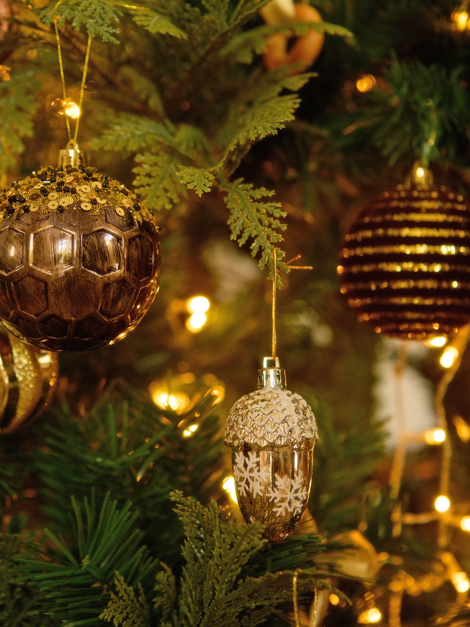 Создаём праздничное настроение Эти украшения в форме жёлудей с изящными снежинками помогают наполнить интерьер теплом и уютом. Их классический дизайн гармонирует с разнообразными стилистическими решениями, от советского ретро до современного ар-деко, создавая эффектный акцент на вашей ёлке. Золотистый цвет отражает свет гирлянд, добавляя блеска и праздничной атмосферы. | ||
