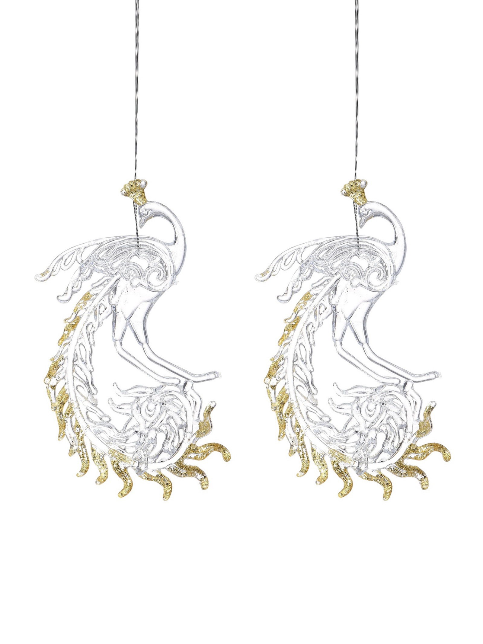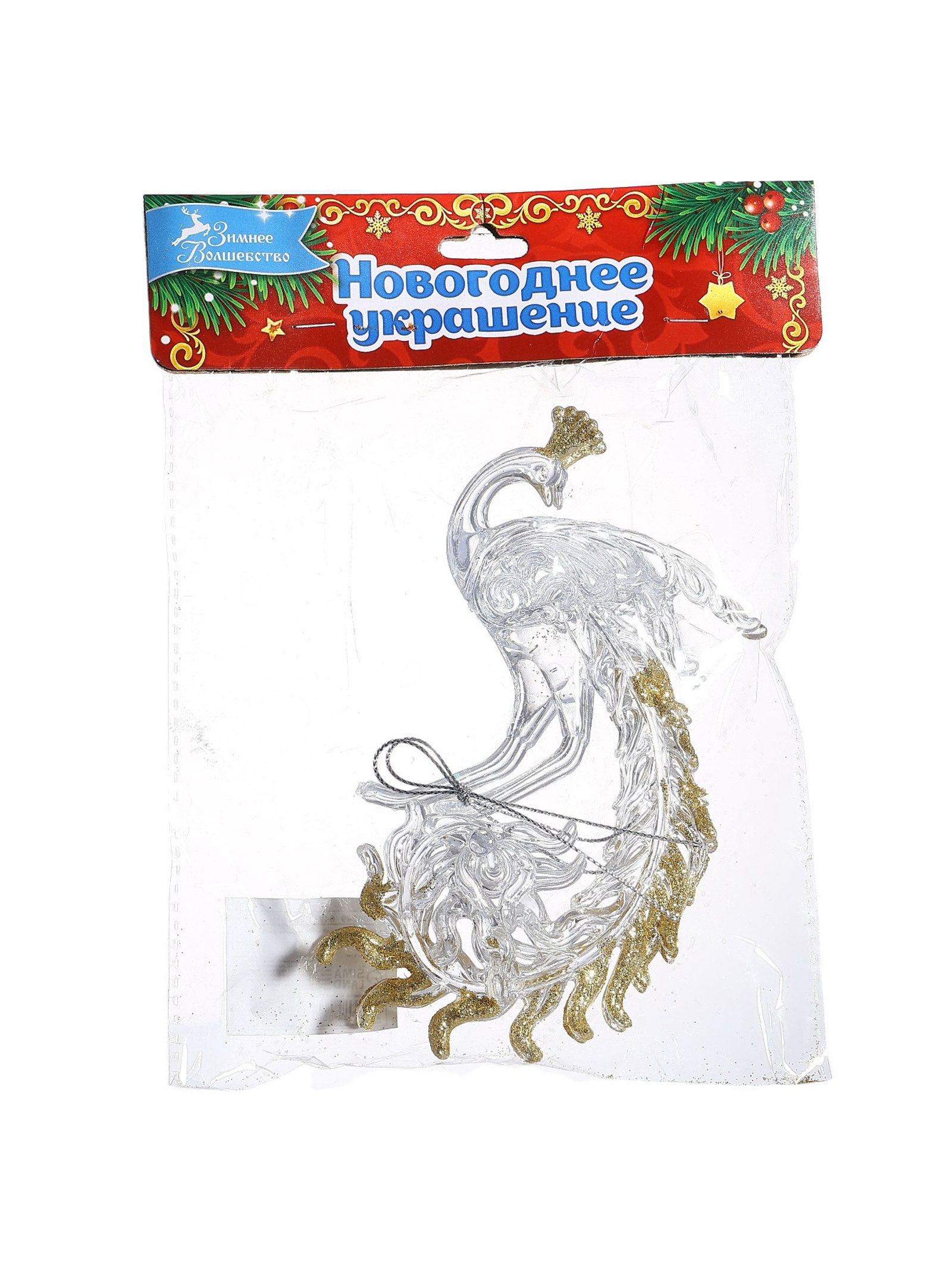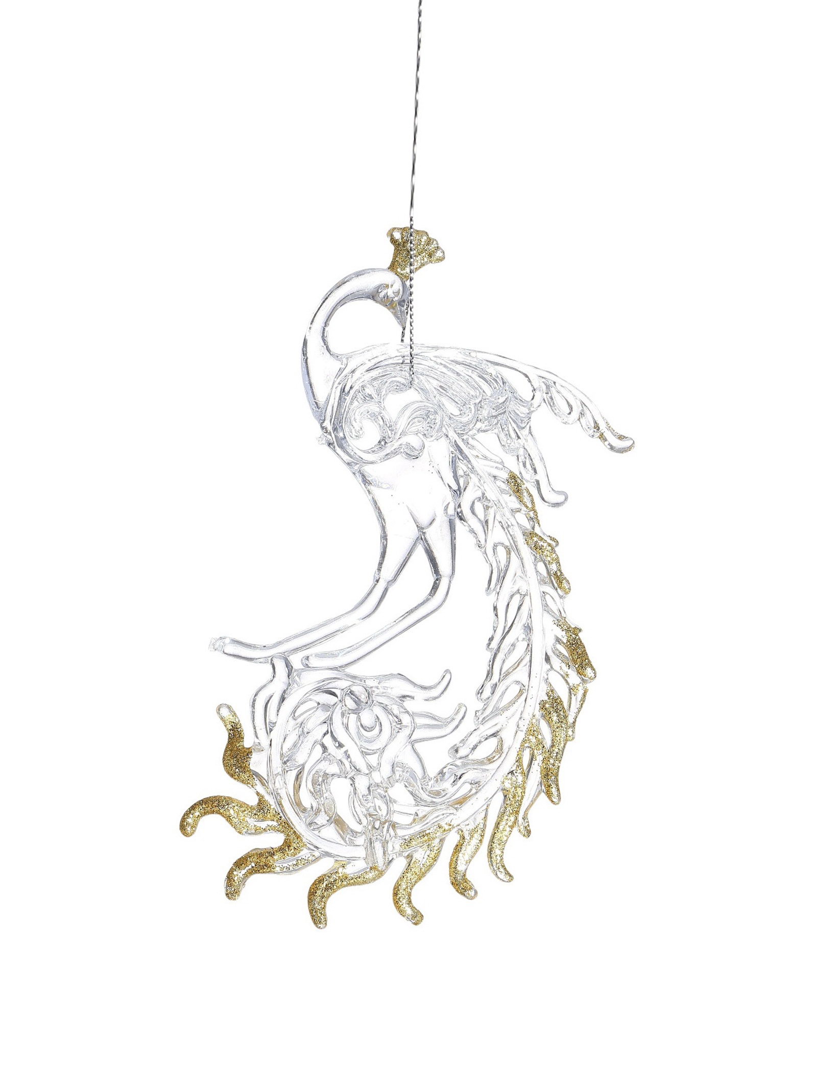Ёлочные игрушки 2 шт. "Зимнее волшебство. Жар-птица с золотинкой", 8x14.5 см, прозрачно-золотой, 8x14.5 см., Зимнее волшебство, Китай