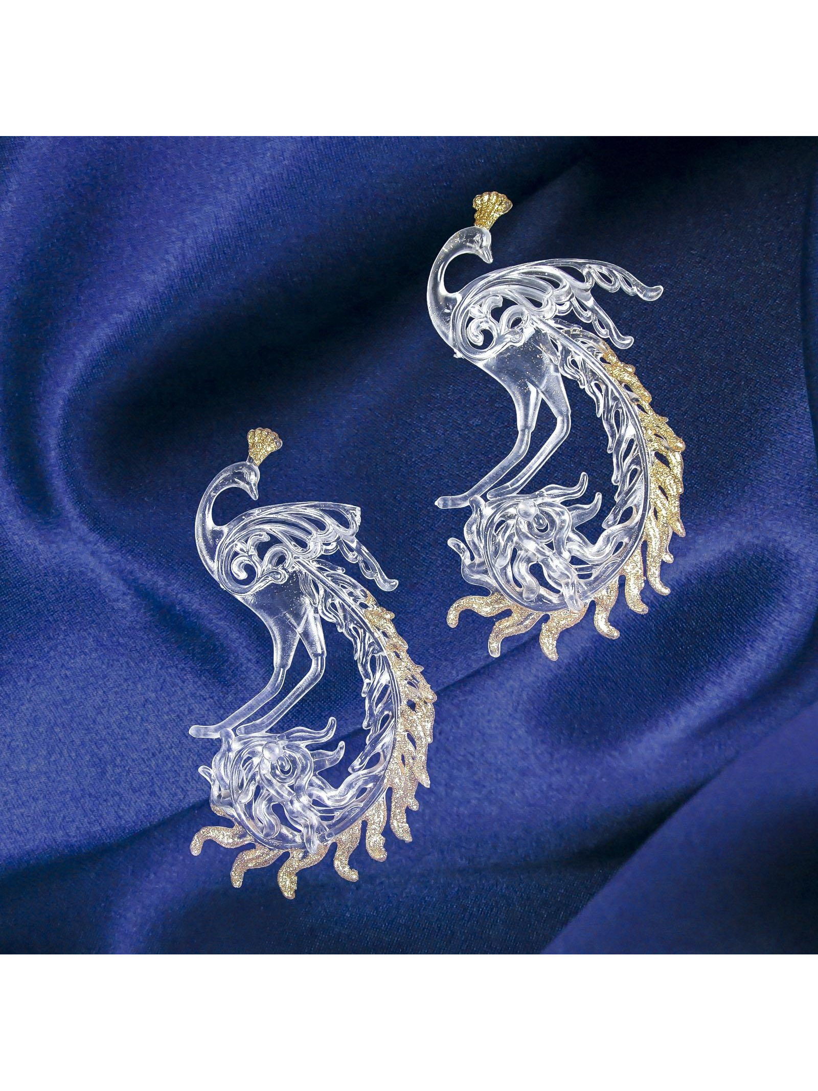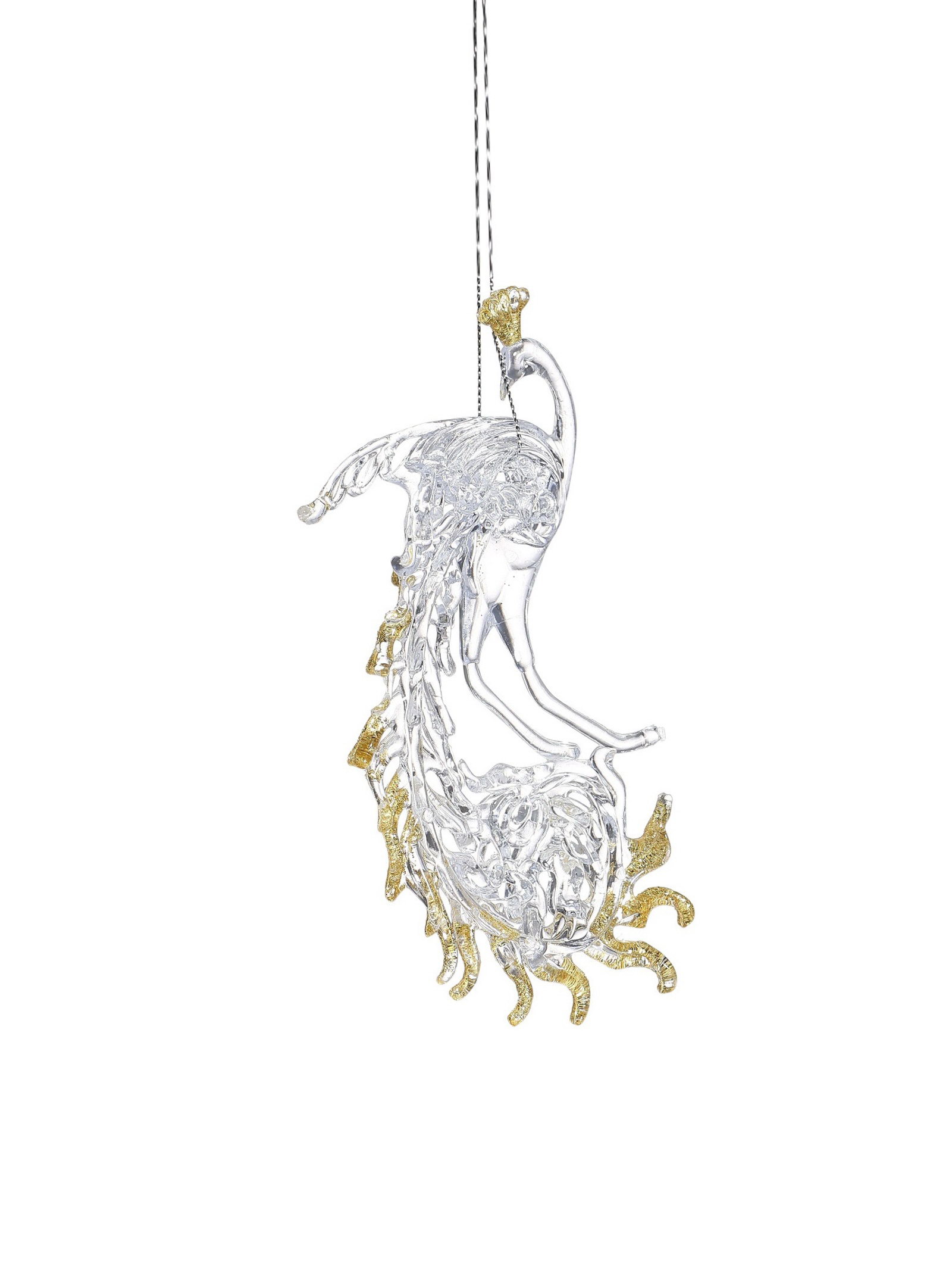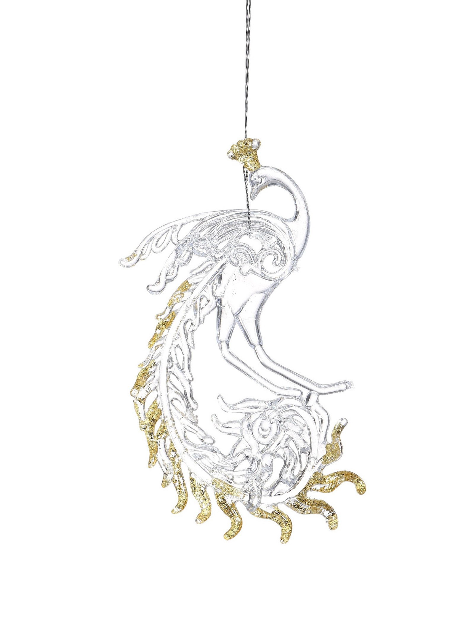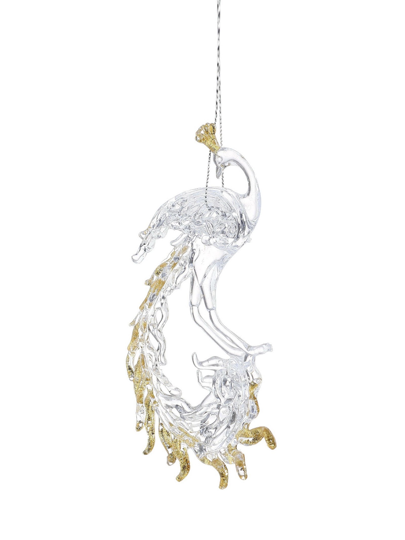 Ёлочные игрушки 2 шт. "Зимнее волшебство. Жар-птица с золотинкой", 8x14.5 см, прозрачно-золотой, 8x14.5 см., Зимнее волшебство, Китай