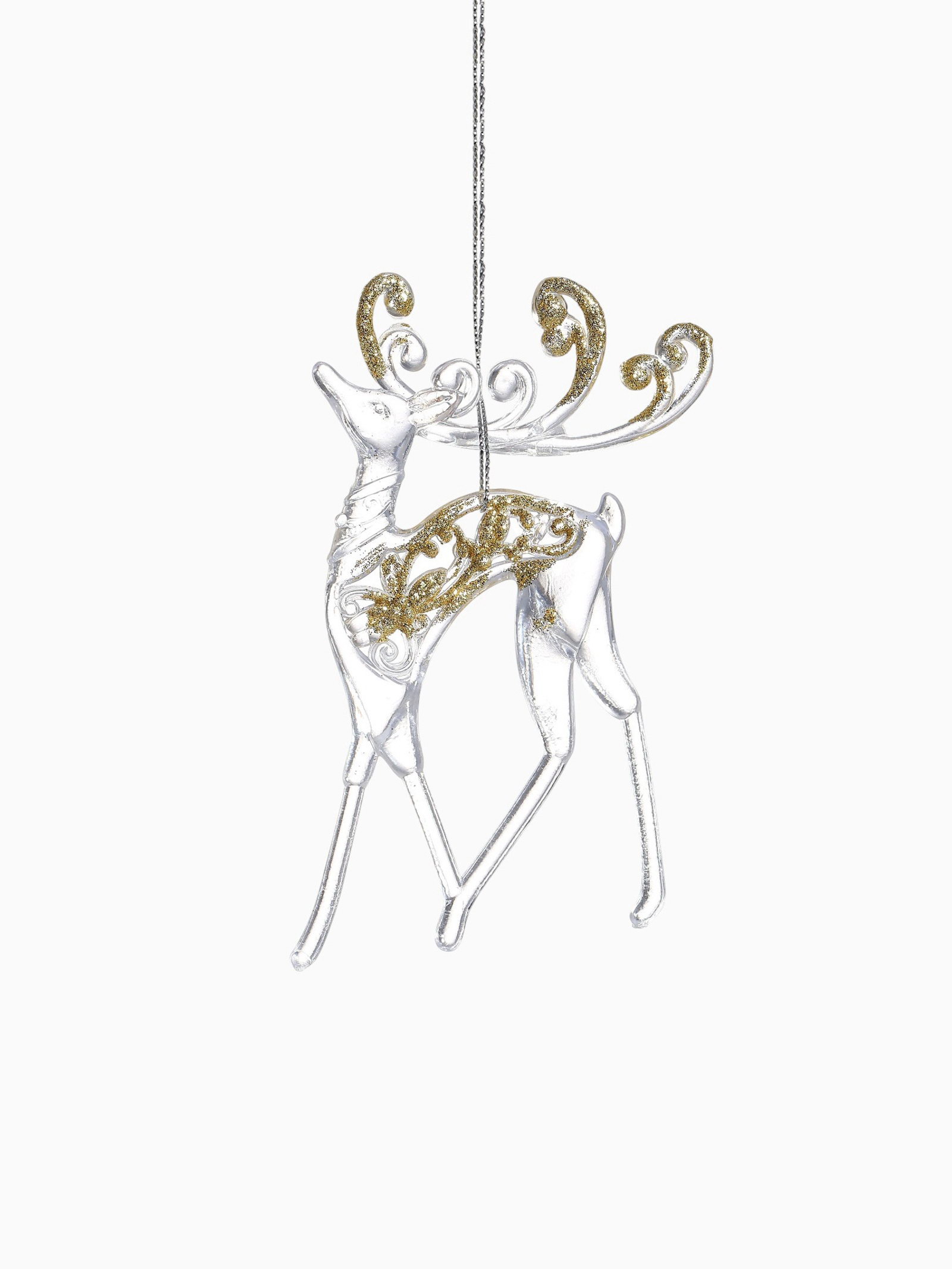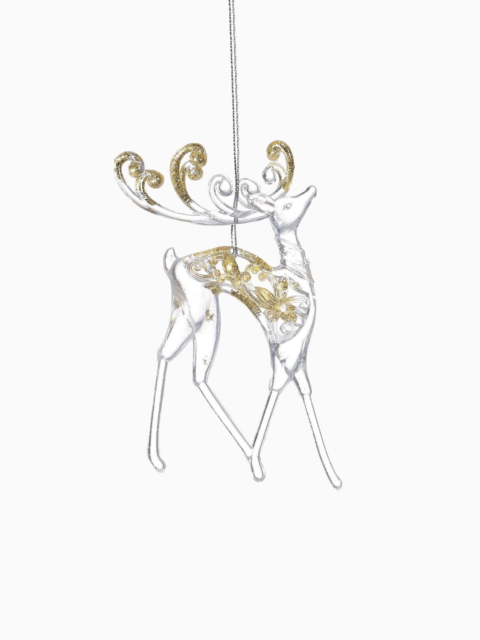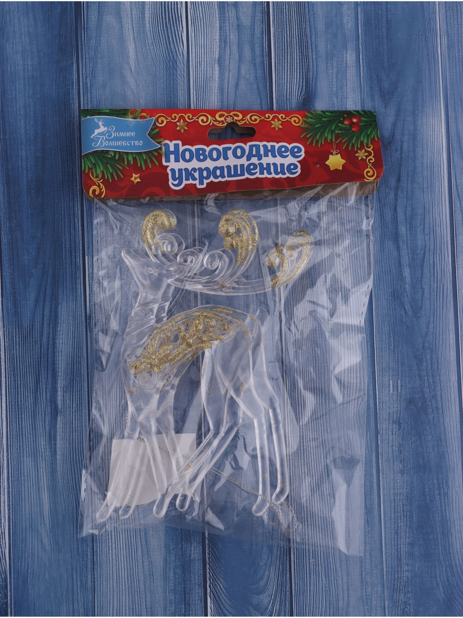 Ёлочные игрушки 2 шт. "Зимнее волшебство. Олень с блеском", 8x13 см, прозрачно-золотой, 8x13 см., Зимнее волшебство, Китай
