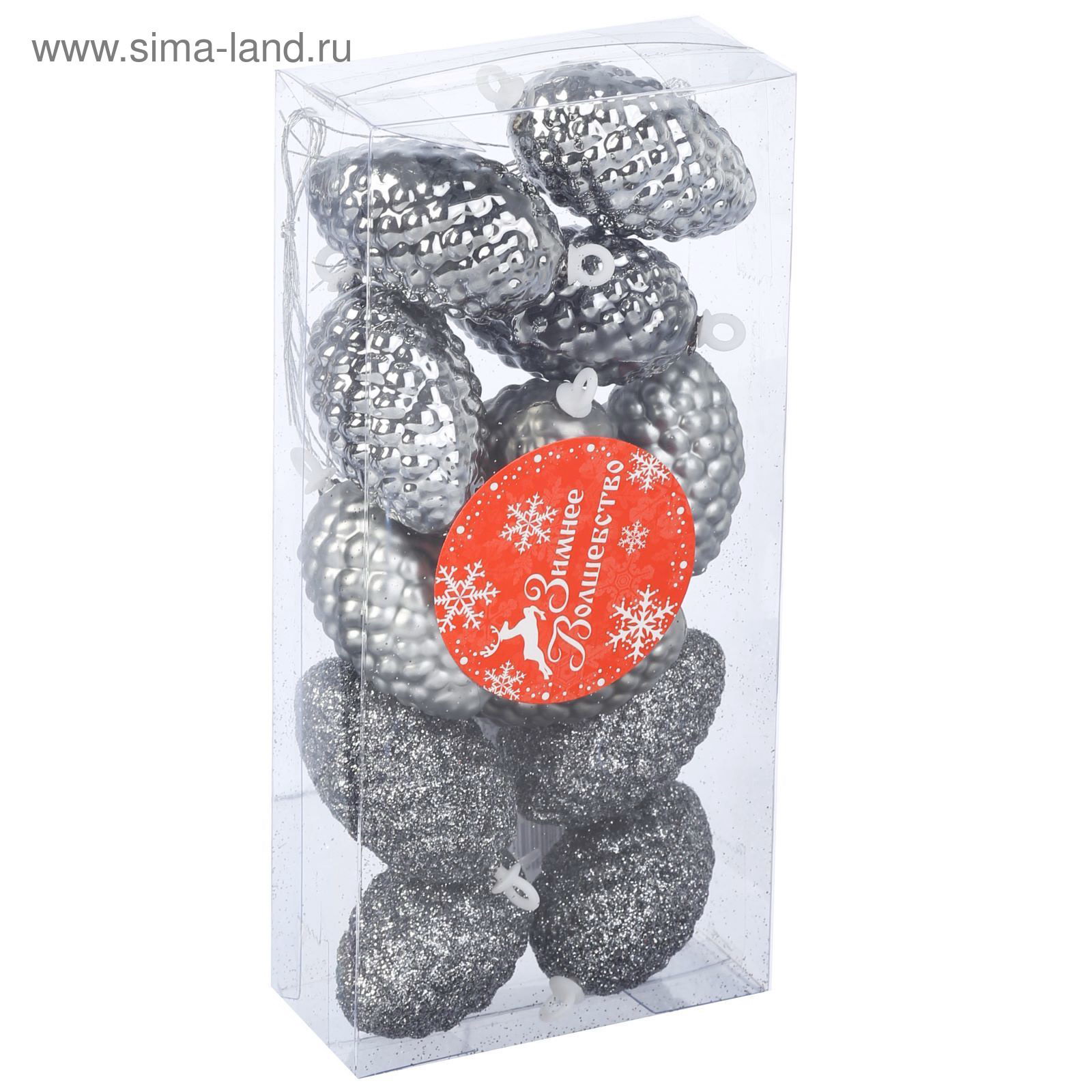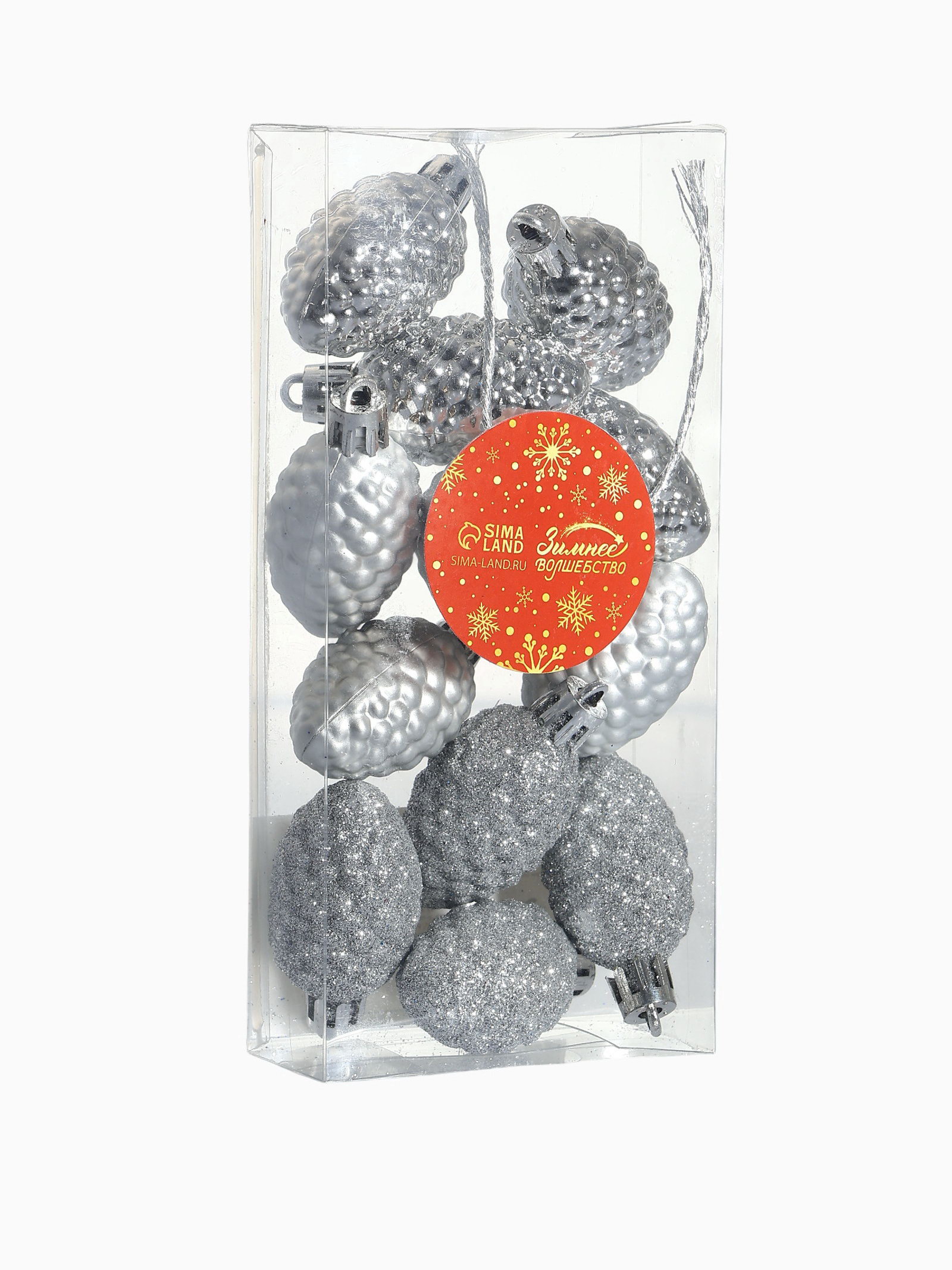 Ёлочные игрушки 12 шт. "Шишки" 4x2.5 см, серебро, 2.5x4 см., Зимнее волшебство, Китай