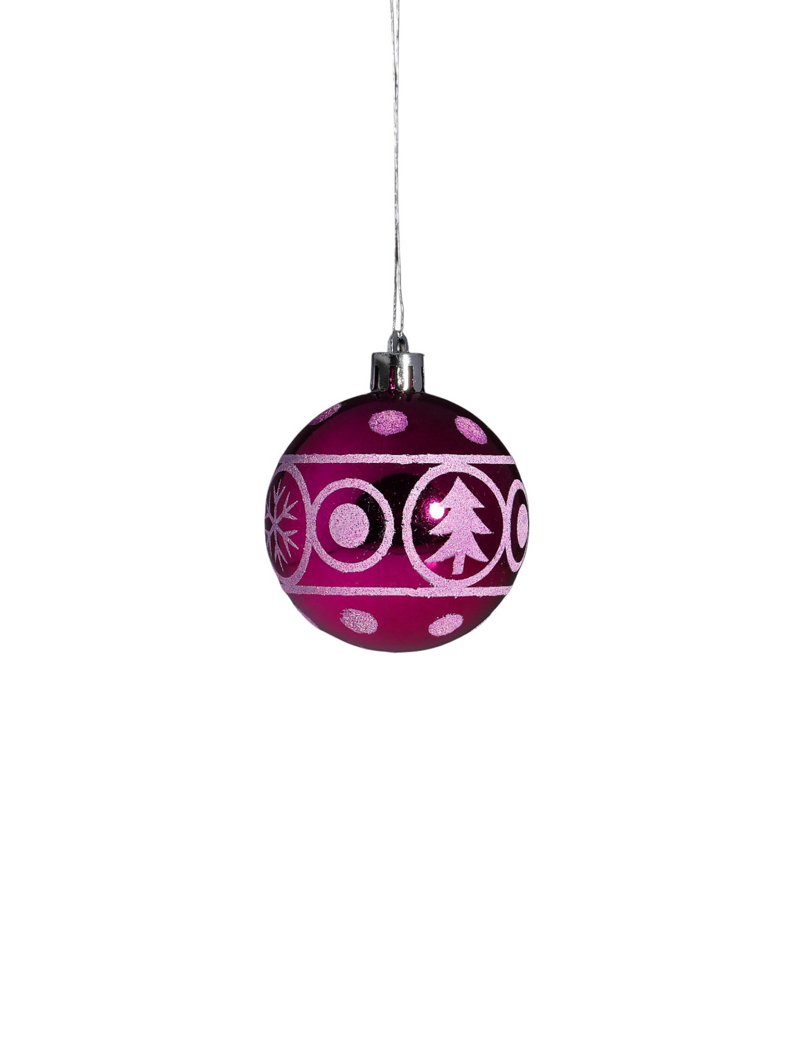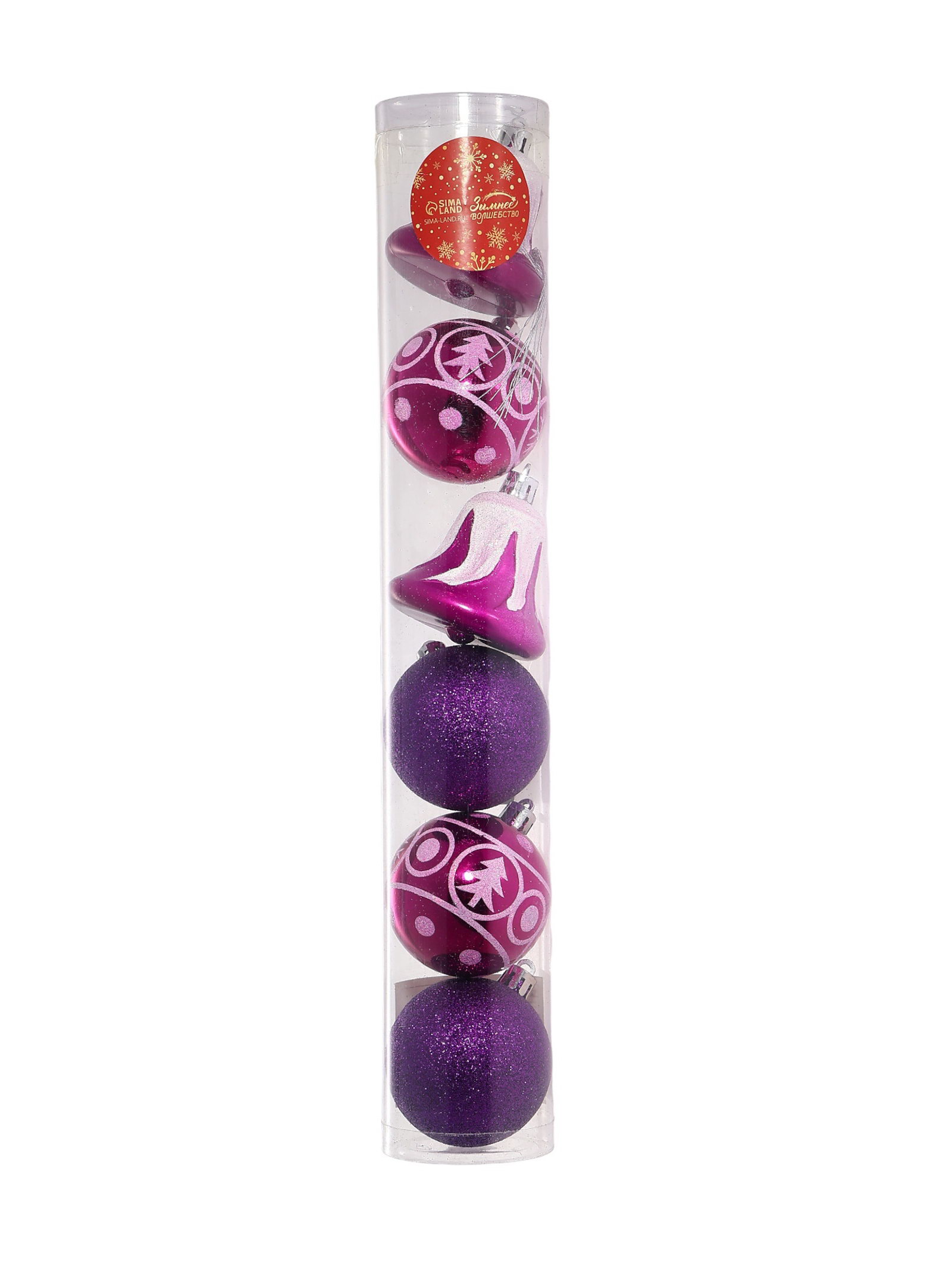 Размер упаковки: 6 x 6 x 37 см. Набор: Да Цвет: Фиолетовый Форма игрушки: Набор Символ года: Нет Тематика праздника: Новый год tnved: 9505109000 Рисунок: Да В наборе, шт.: 6 Диаметр шара, см: 6 Особенности: С рисунком Стиль: Фьюжн Набор новогодних украшений в фиолетовых тонах объединяет классические шары с изящными колокольчиками, создавая выразительный и стильный декор для праздничной ёлки. Элементы с рисунком добавляют глубину и текстуру, подчёркивая индивидуальность оформления. Особенности