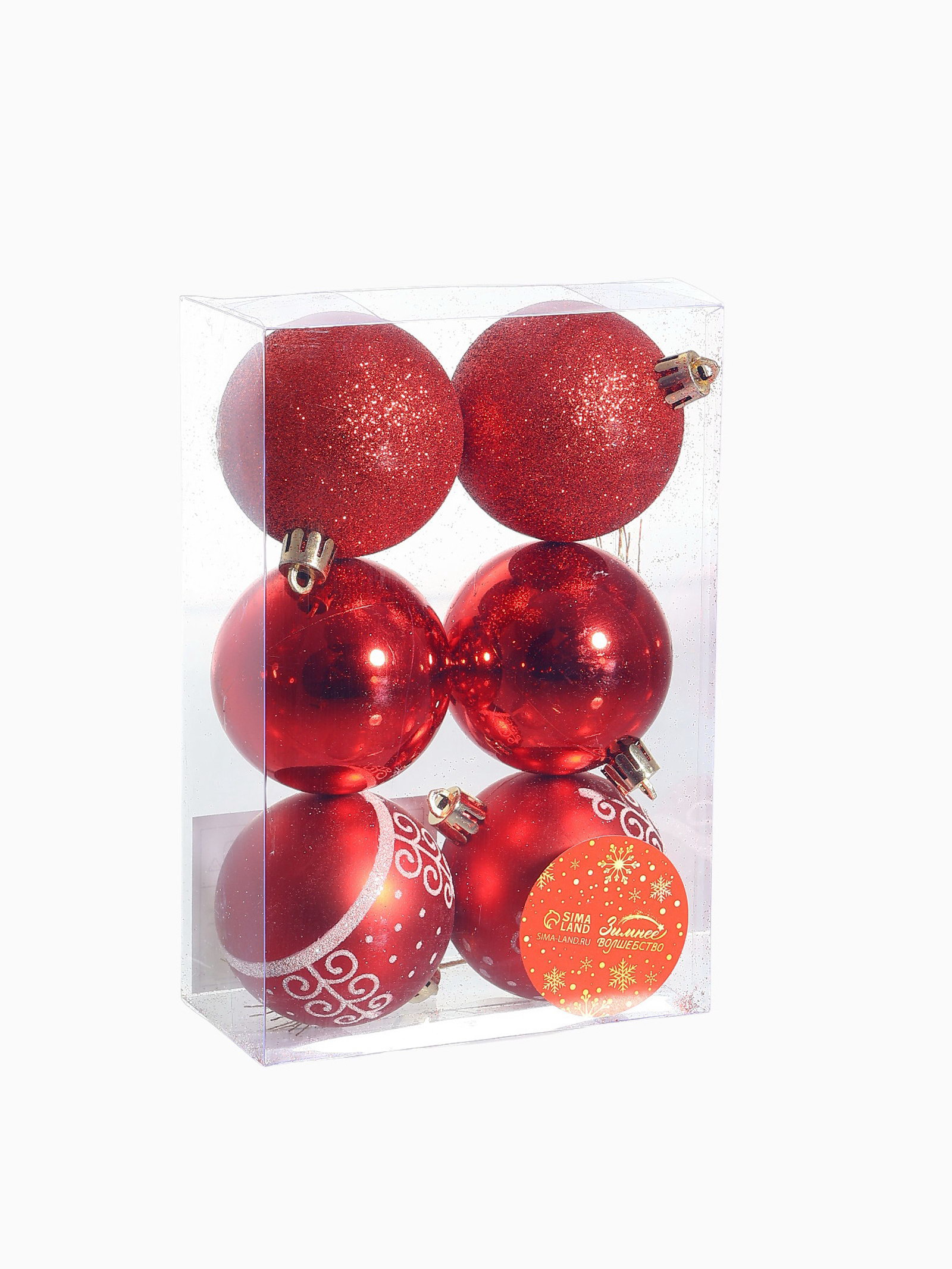 Ёлочные игрушки "Завитки", шары новогодние, набор 6 шт., d=6 см, красный, 6x6 см., Зимнее волшебство, Китай