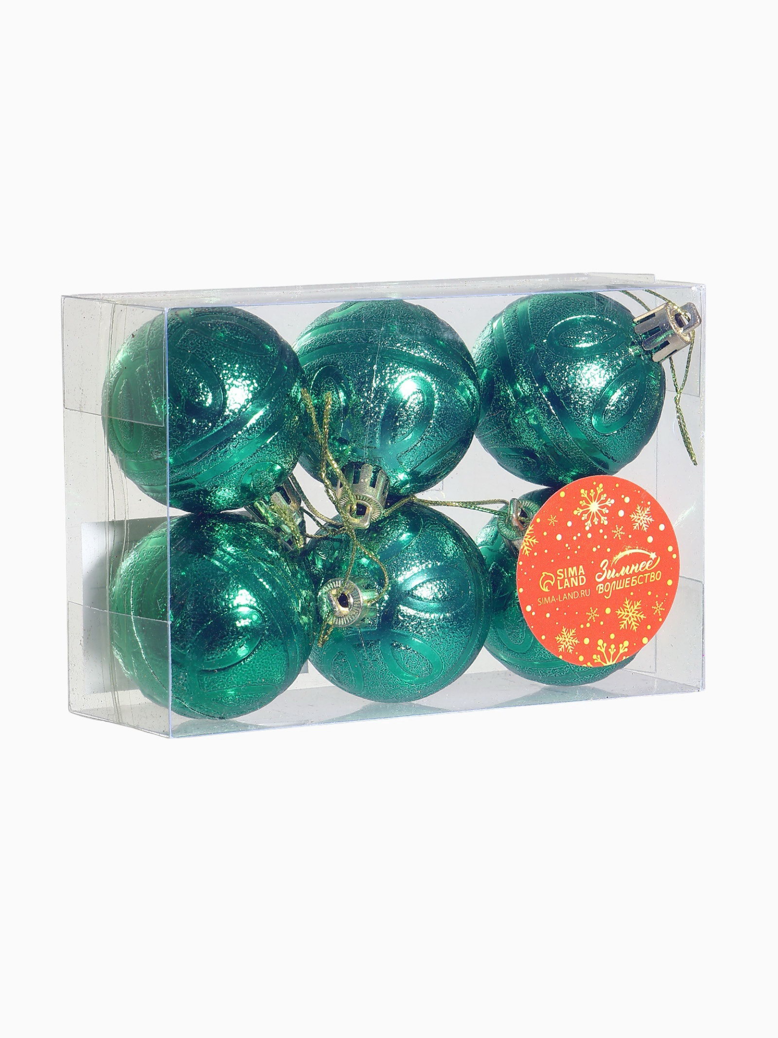 Ёлочные игрушки "Флёр", шары новогодние, набор 6 шт., d=5 см, зелёный, 5x5 см., Зимнее волшебство, Китай