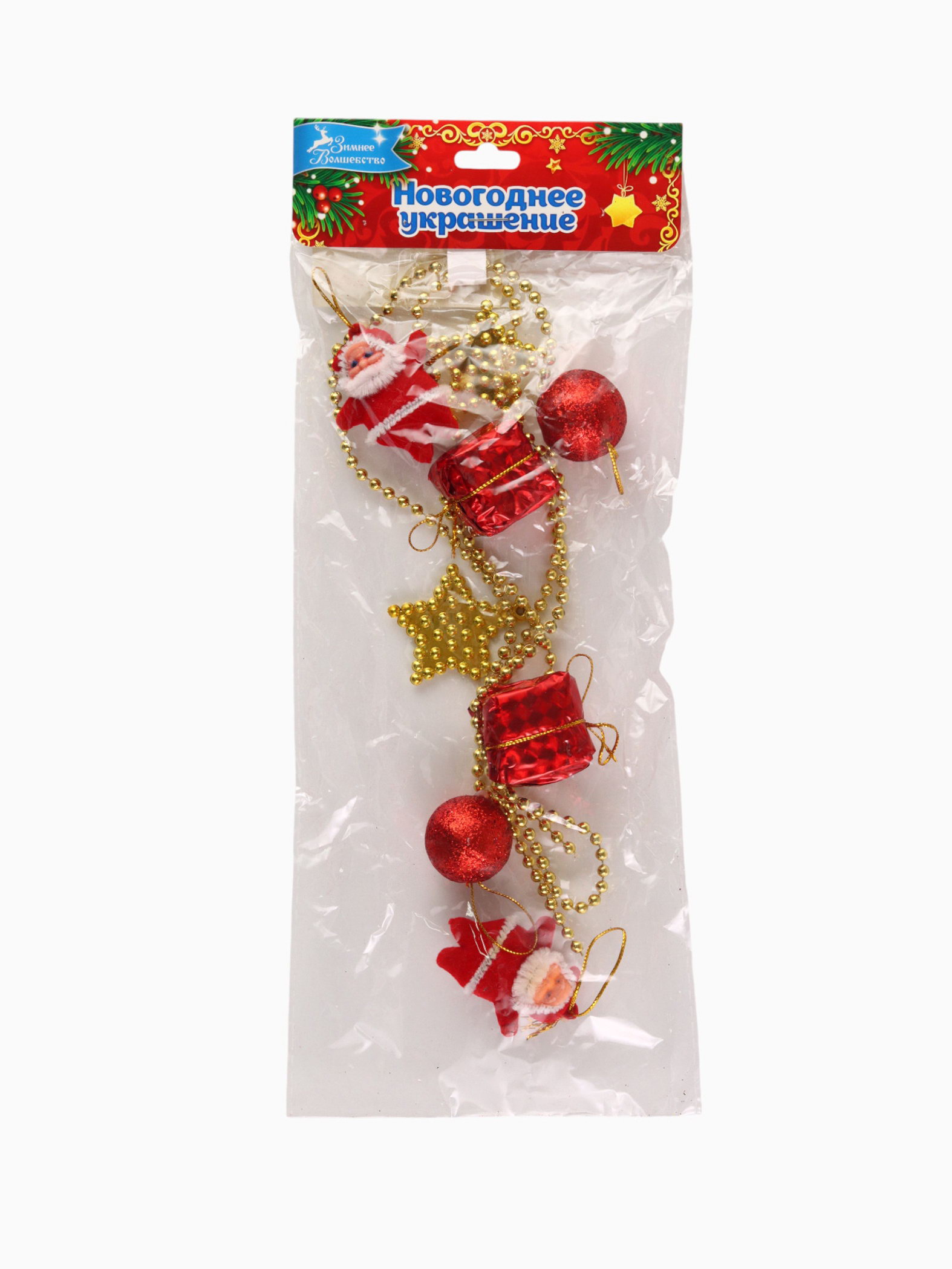 Бусы на ёлку "Звёзды, шарики, подарки", 90 см, красно - золотистые, 90 см., Зимнее волшебство, Китай
