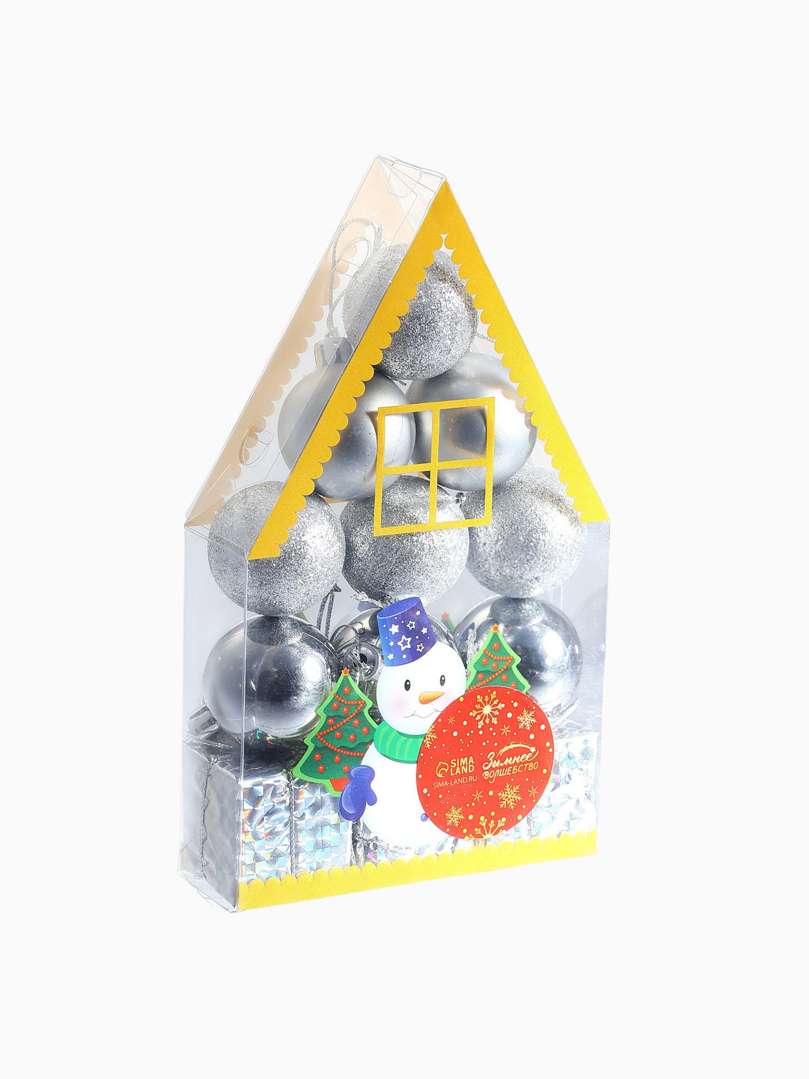 Ёлочные игрушки "Подарок", шары новогодние, набор 12 шт., серебристый, 11.5x4x20 см., Зимнее волшебство, Китай