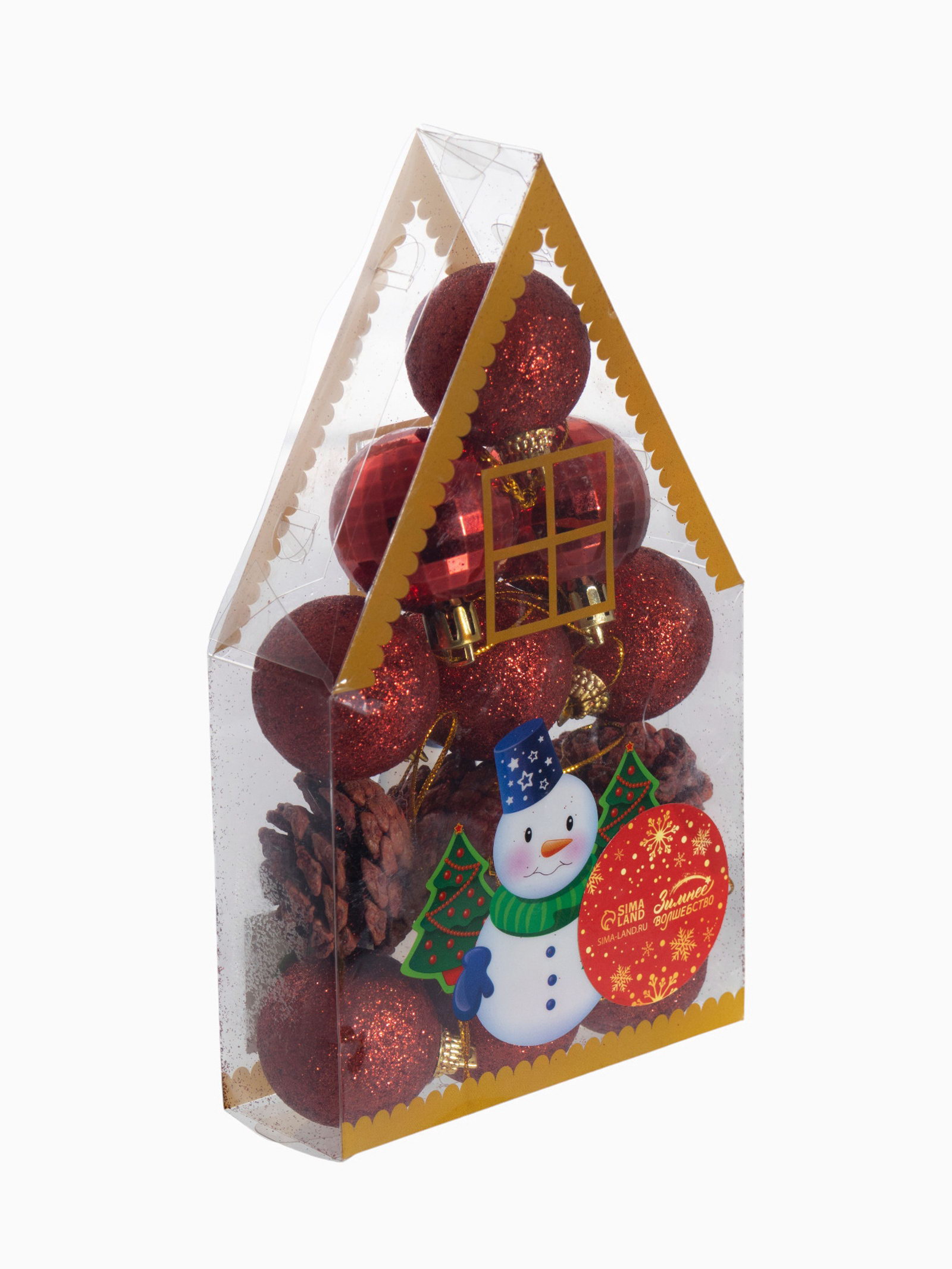 Ёлочные игрушки "Зимний лес", шары новогодние, набор 12 шт., 11.5x4x20 см., Зимнее волшебство, Китай