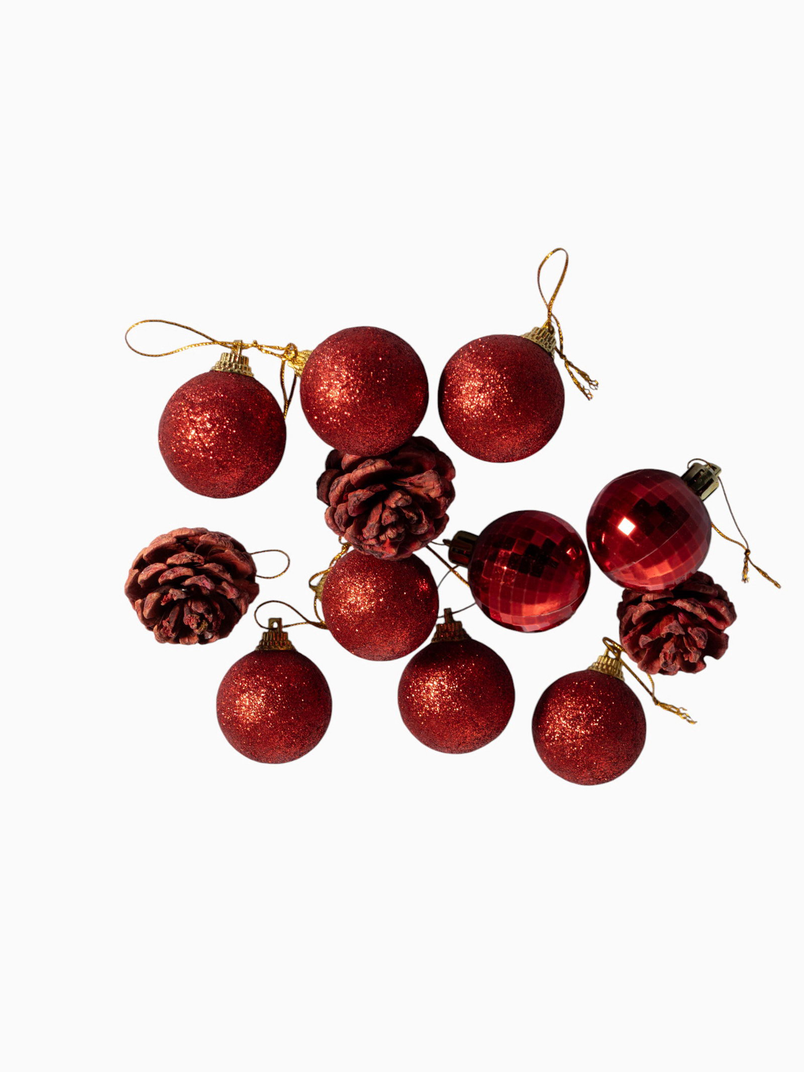 Стиль: Новогоднее барокко, Скандинавский, Фьюжн Размер упаковки: 11.5 x 4 x 20 см. Цвет: Красный Набор: Да Форма игрушки: Набор Тематика праздника: Новый год Символ года: Нет tnved: 9505109000 tnved: 9505109000 Рисунок: Да Диаметр шара, см: 4 В наборе, шт.: 12 Особенности: Однотонная Новогодние шары и шишки красного цвета это стильное и универсальное решение для украшения ёлки в преддверии праздника. Набор из 12 элементов (9 шаров, 3 шишки) станет основой для создания новогоднего настроения в стиле барокко, скандинавского минимализма или фьюжн. Сочетание пластика и деревянных элементов добавляет декору текстурности и делает его более живым и ассоциирующимся с зимним лесом. Детали