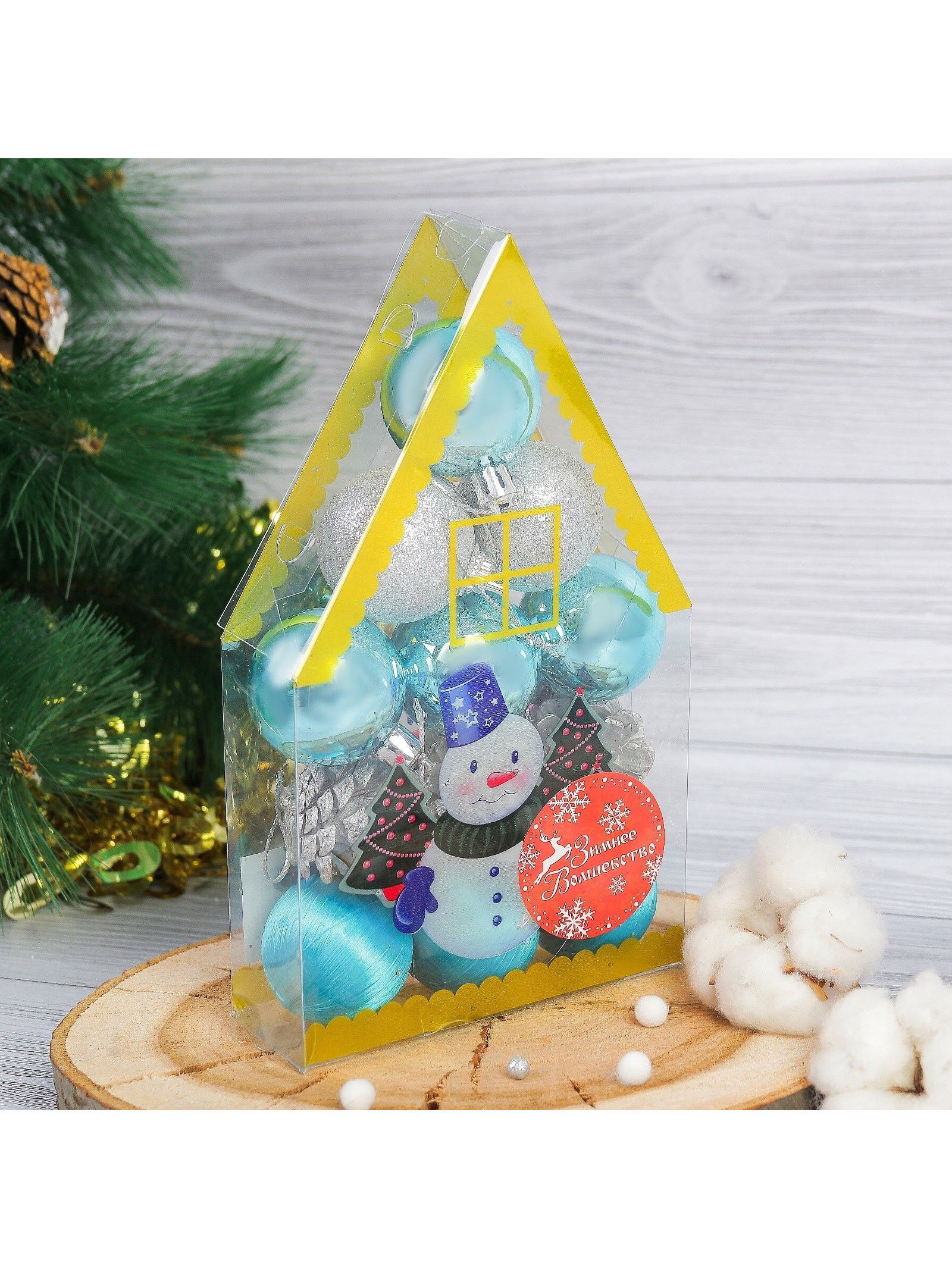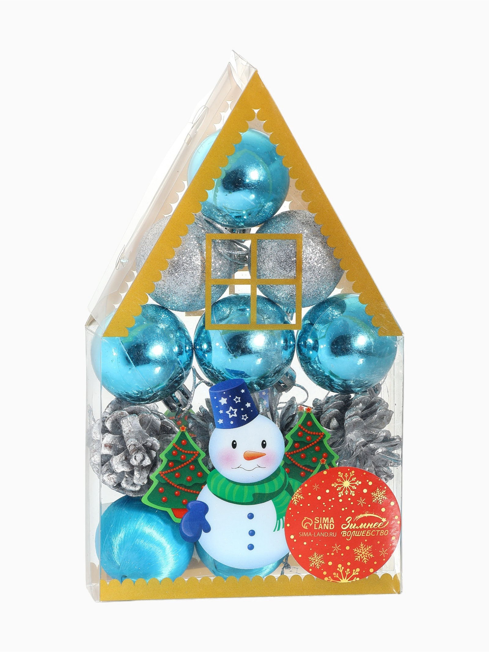 Цвет: Голубой, Серебристый Стиль: Фьюжн, Шебби-шик Размер упаковки: 11.5 x 20 x 4 см. Набор: Да Форма игрушки: Набор Тематика праздника: Новый год Символ года: Нет tnved: 9505109000 Рисунок: Нет Диаметр шара, см: 4 В наборе, шт.: 12 Особенности: Однотонная Новогодние игрушки "Домик" это лаконичный и стильный набор для украшения ёлки в серебристо-голубой гамме. В комплекте 12 элементов: 9 шаров и 3 шишки диаметром 3 см, выполненных из пластика и дерева с однотонной поверхностью. Украшения в стиле шебби-шик и фьюжн подходят как для традиционного, так и для современного оформления праздника. Особенности
