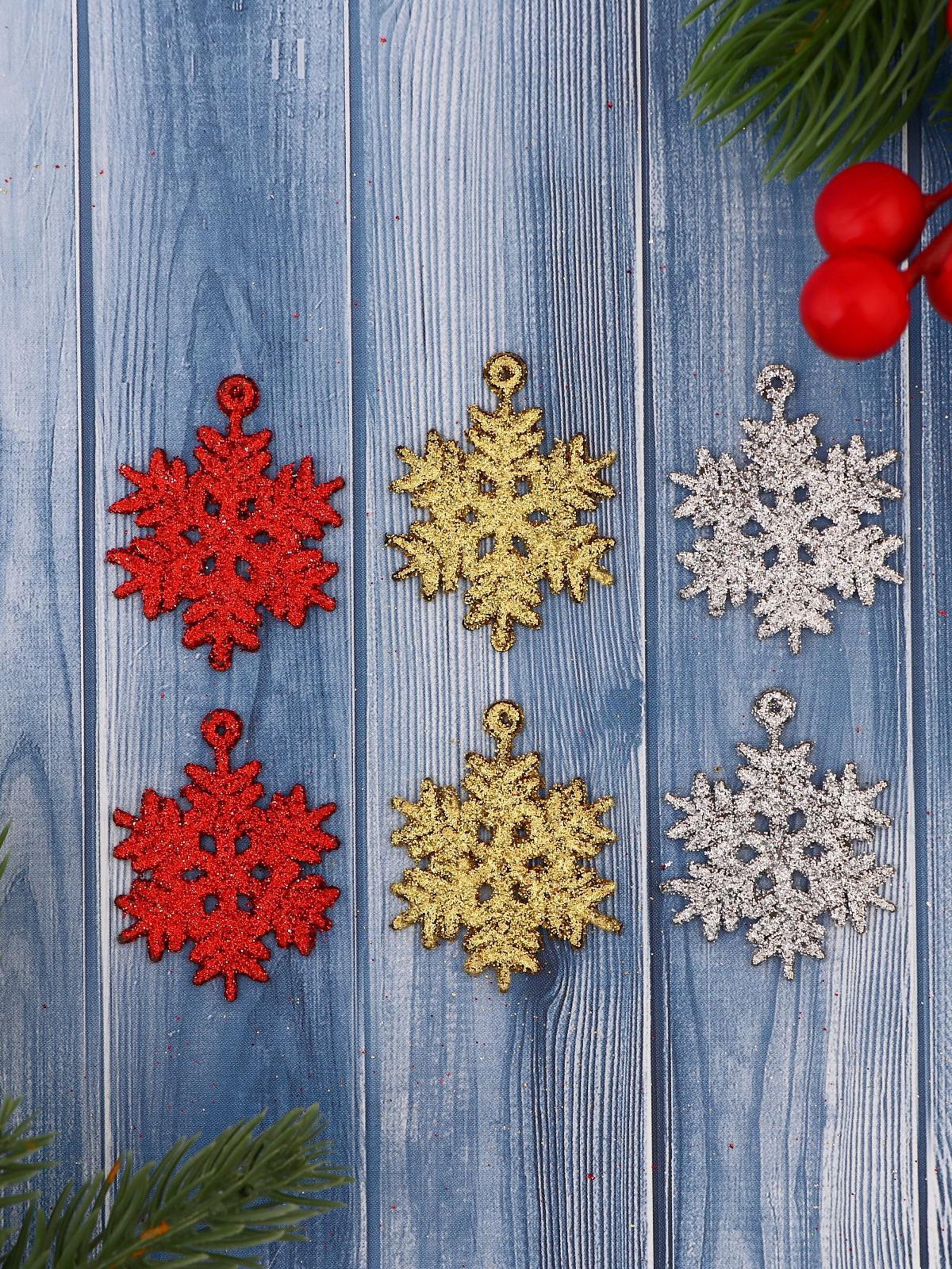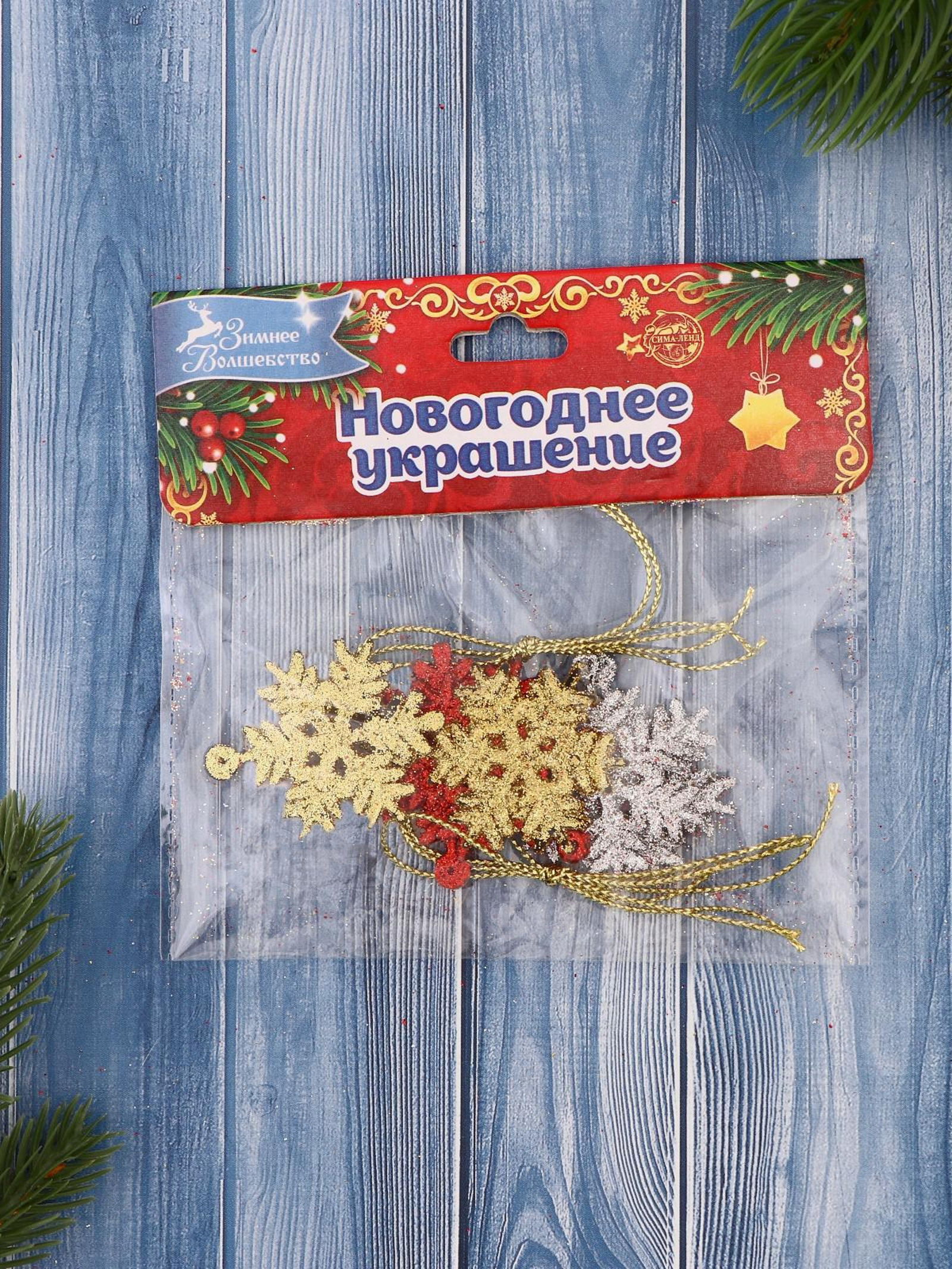 Ёлочные игрушки набор 6 шт. "Зимнее волшебство. Снежинка", d=3.5 см, МИКС, 3.5x3.5 см., Зимнее волшебство, Китай