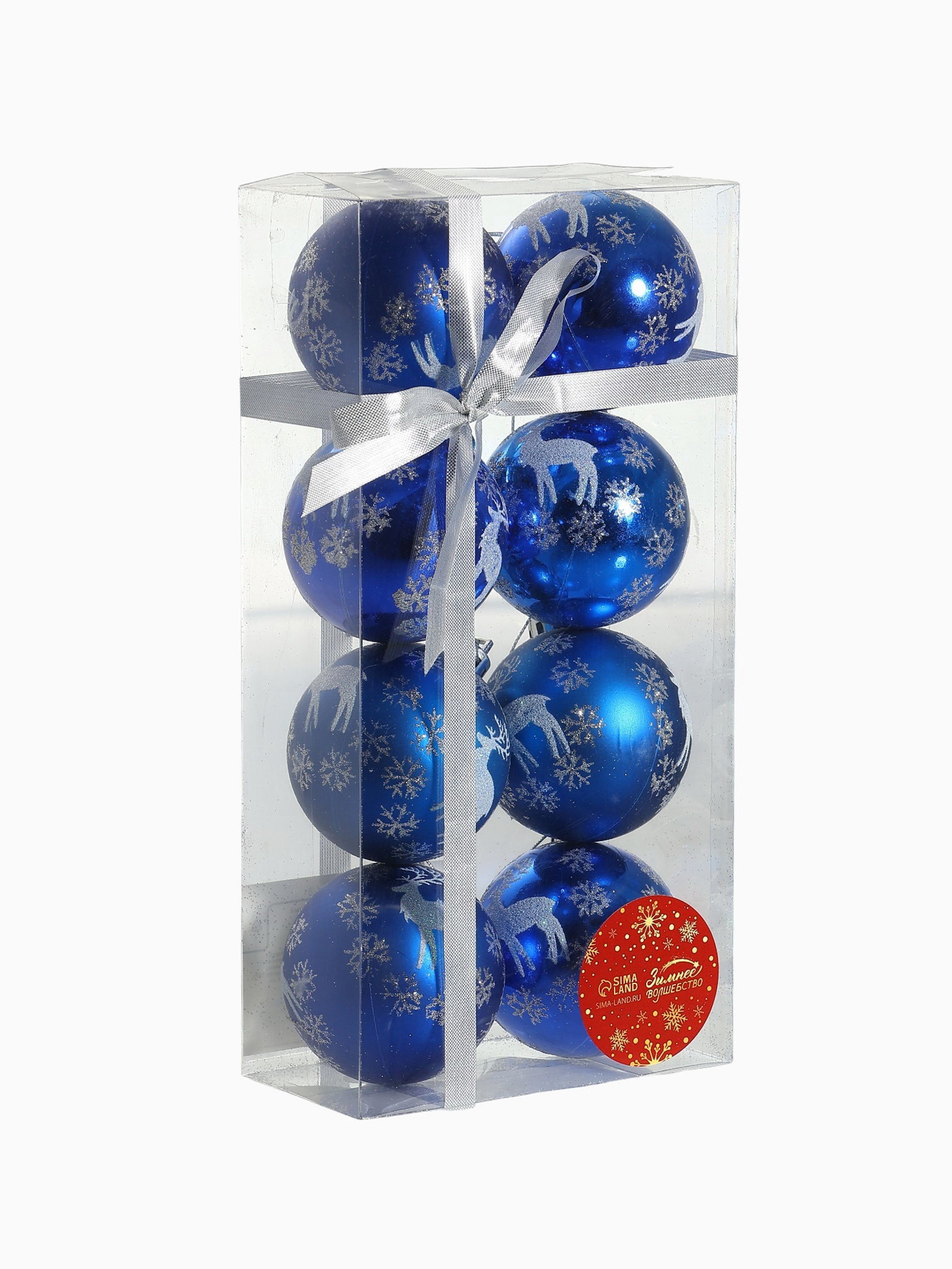 Ёлочные игрушки "Северный олень", шары новогодние, d=6 см, набор 8 шт., синий, 6x6 см., Зимнее волшебство, Китай