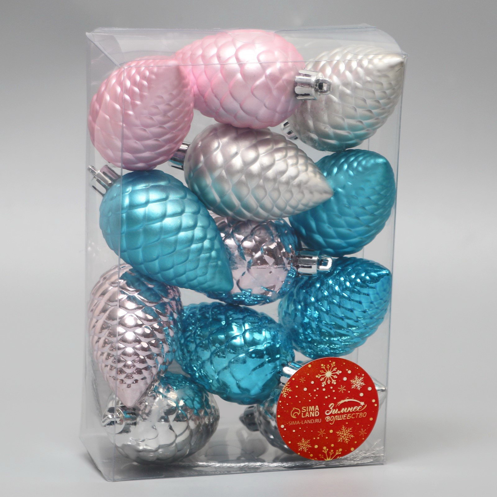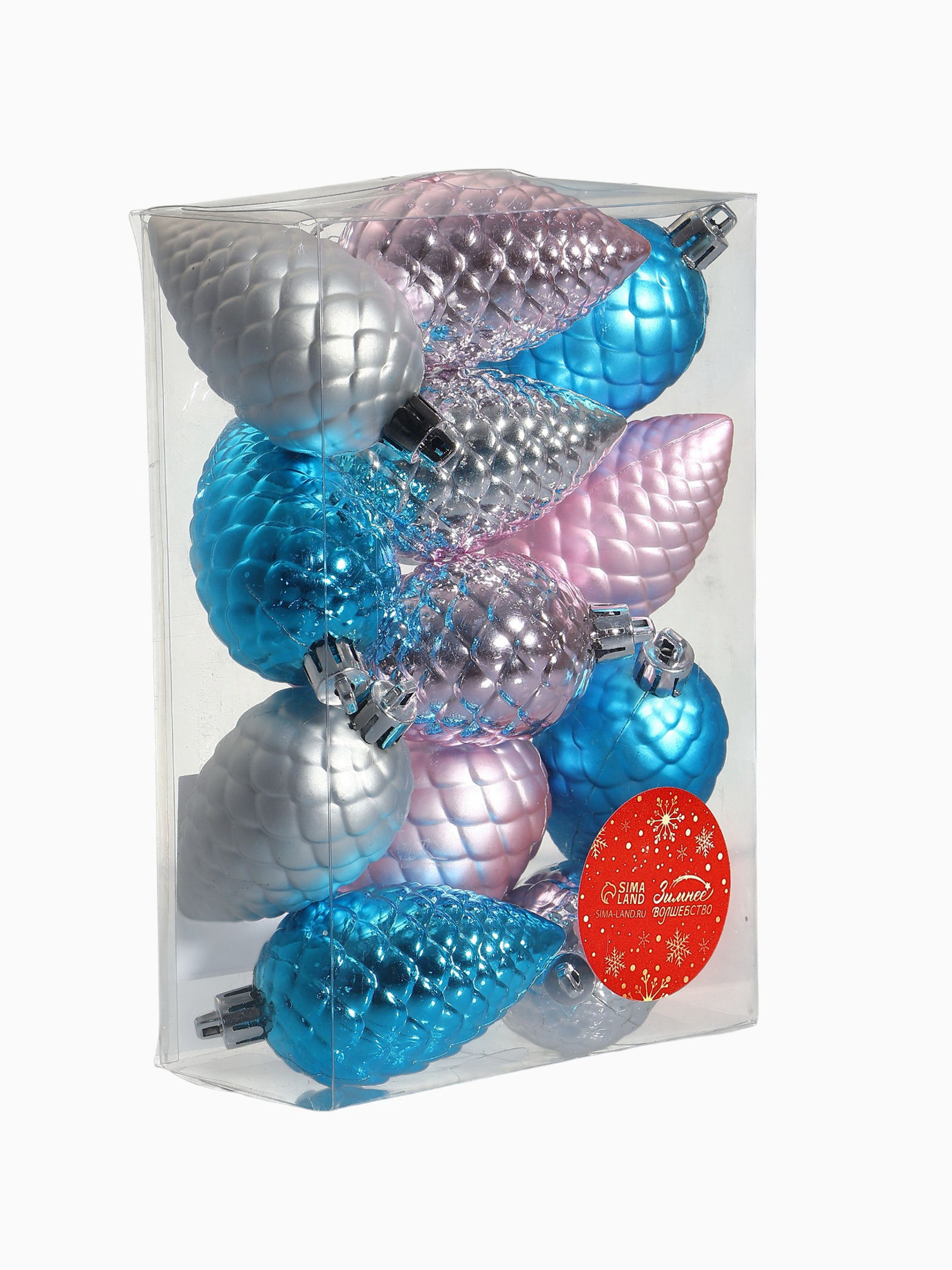 Ёлочные игрушки 12 шт. "Шишка" 6 см, МИКС, 11.5x6x17.5 см., Зимнее волшебство, Китай