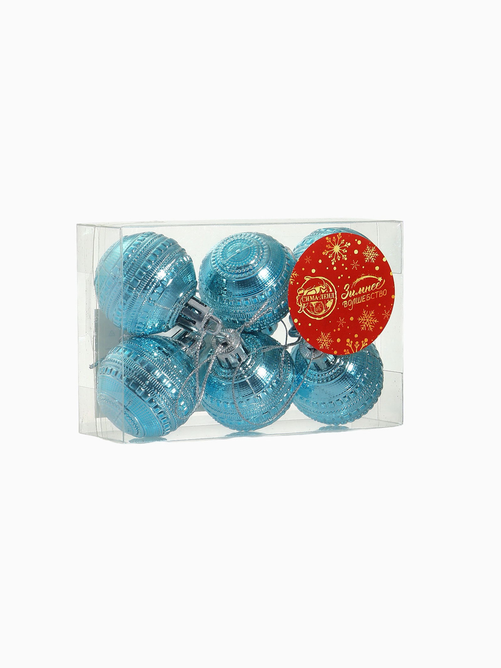 Ёлочные игрушки "Бусинка", шары новогодние, набор d=4 см, 6 шт., бирюзовый, 4x4 см., Зимнее волшебство, Китай