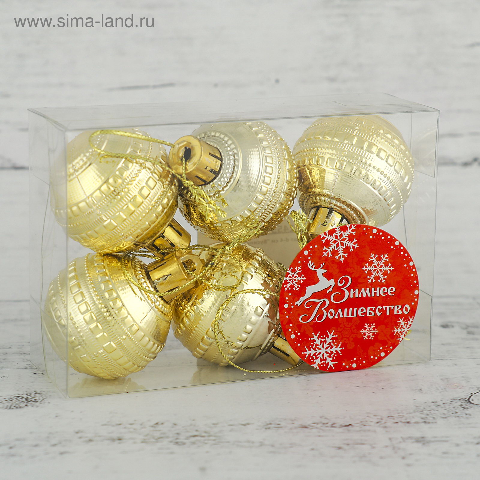 Ёлочные игрушки "Бусинка", шары новогодние, d=4 см, набор 6 шт. золотистые, 4x4 см., Зимнее волшебство, Китай