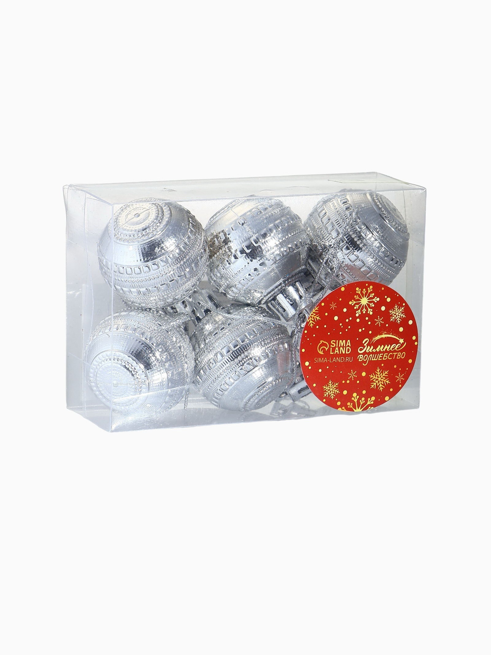 Ёлочные игрушки "Бусинка", шары новогодние, d=4 см, набор 6 шт., серебро, 4x4 см., Зимнее волшебство, Китай