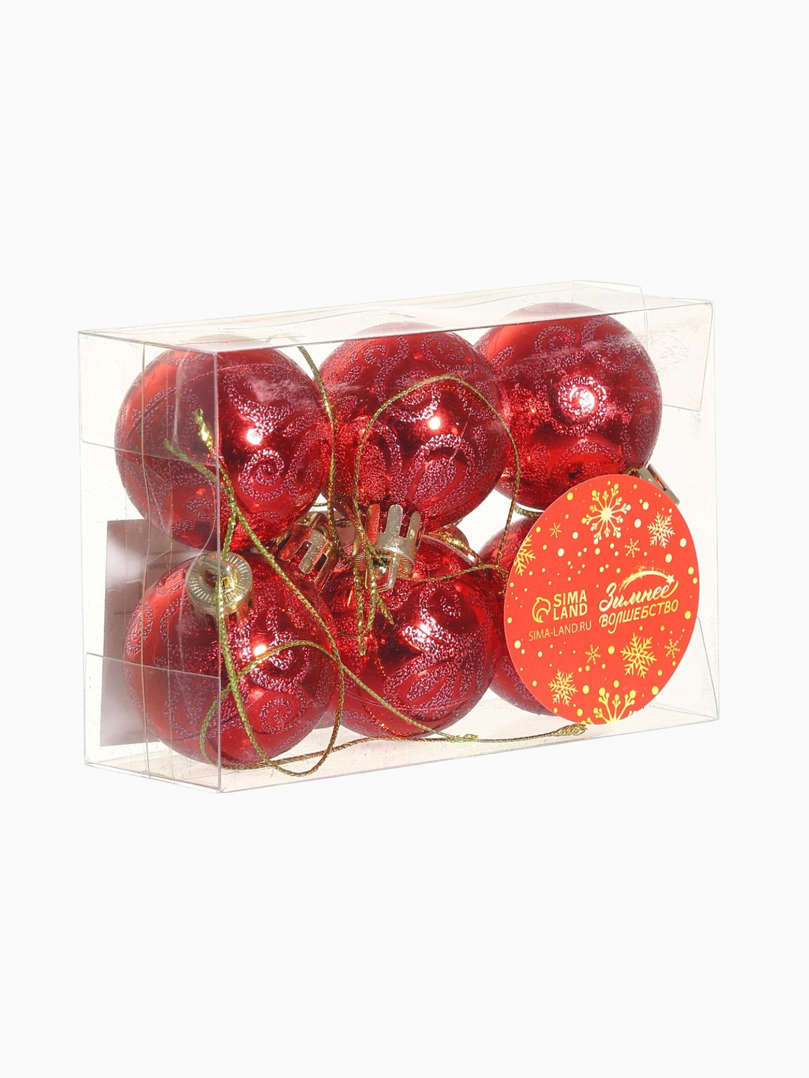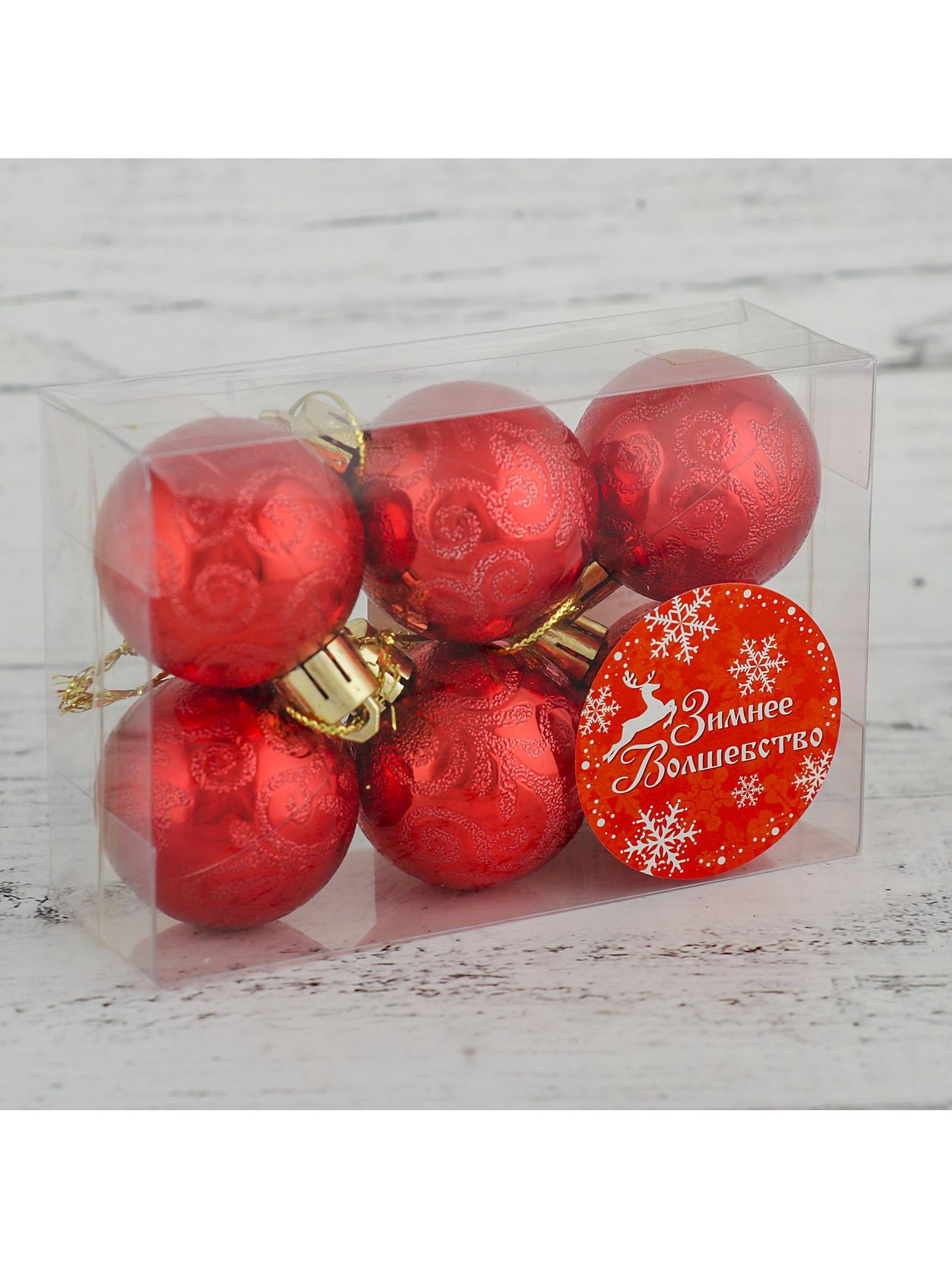 Ёлочные игрушки "Морозная зима", шары новогодние, d=4 см, набор 6 шт., красный, 4x4 см., Зимнее волшебство, Китай