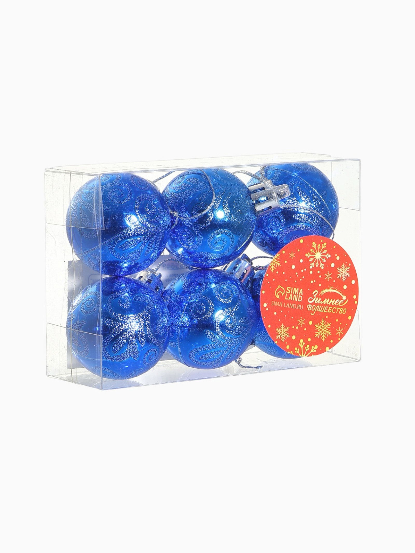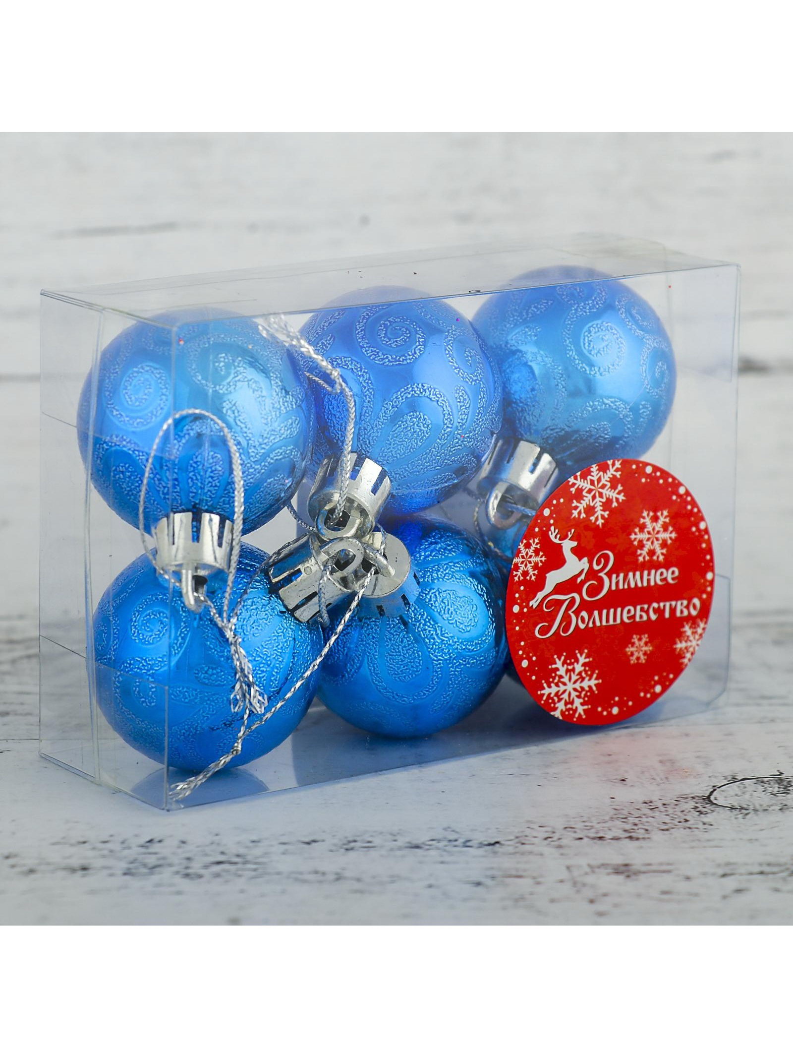 Ёлочные игрушки "Морозная зима", шары новогодние, d=4 см, набор 6 шт., синий, 4x4 см., Зимнее волшебство, Китай