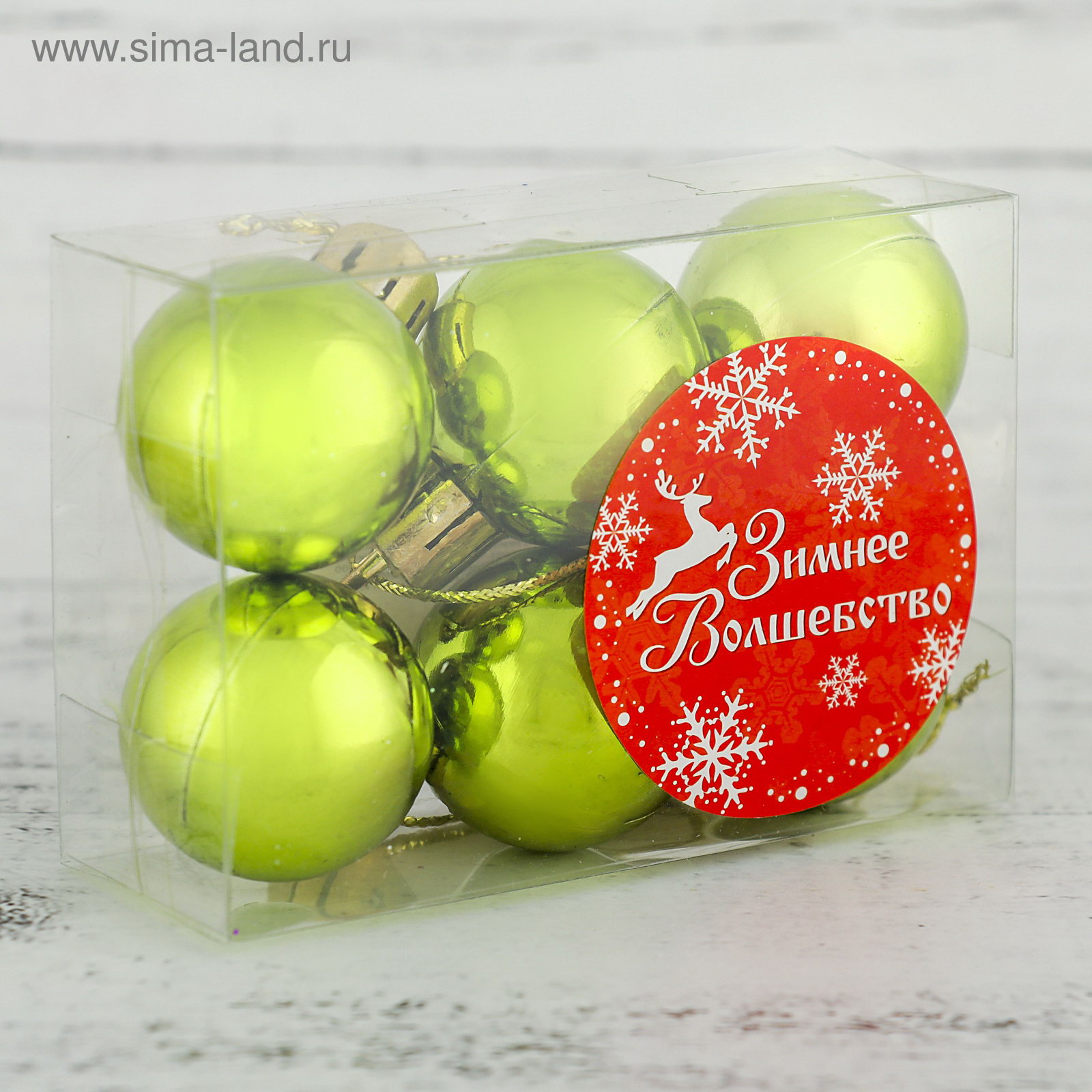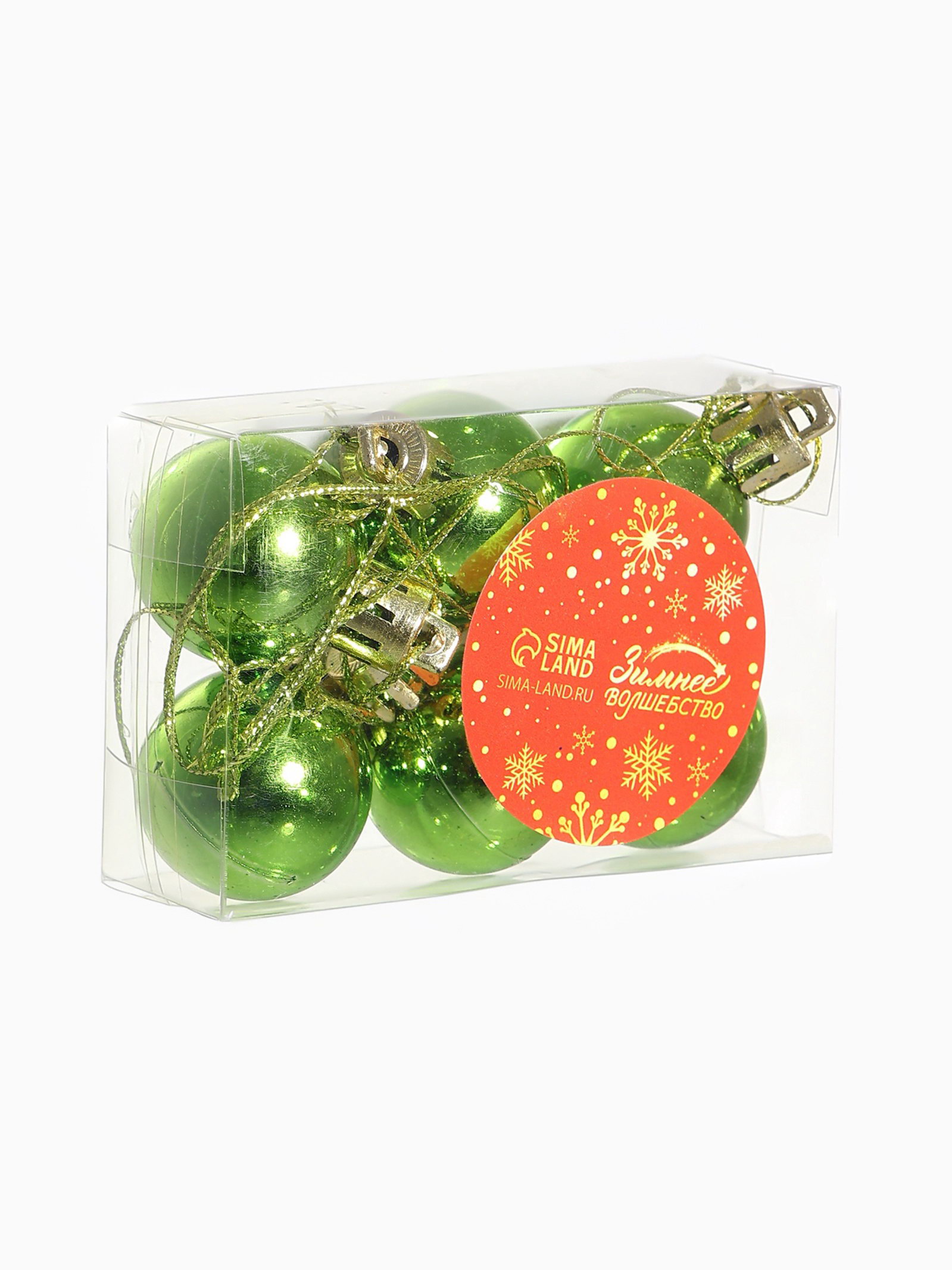 Ёлочные игрушки "Глянец", шары новогодние, d=3 см, набор 6 шт., зелёный, 3x3 см., Зимнее волшебство, Китай