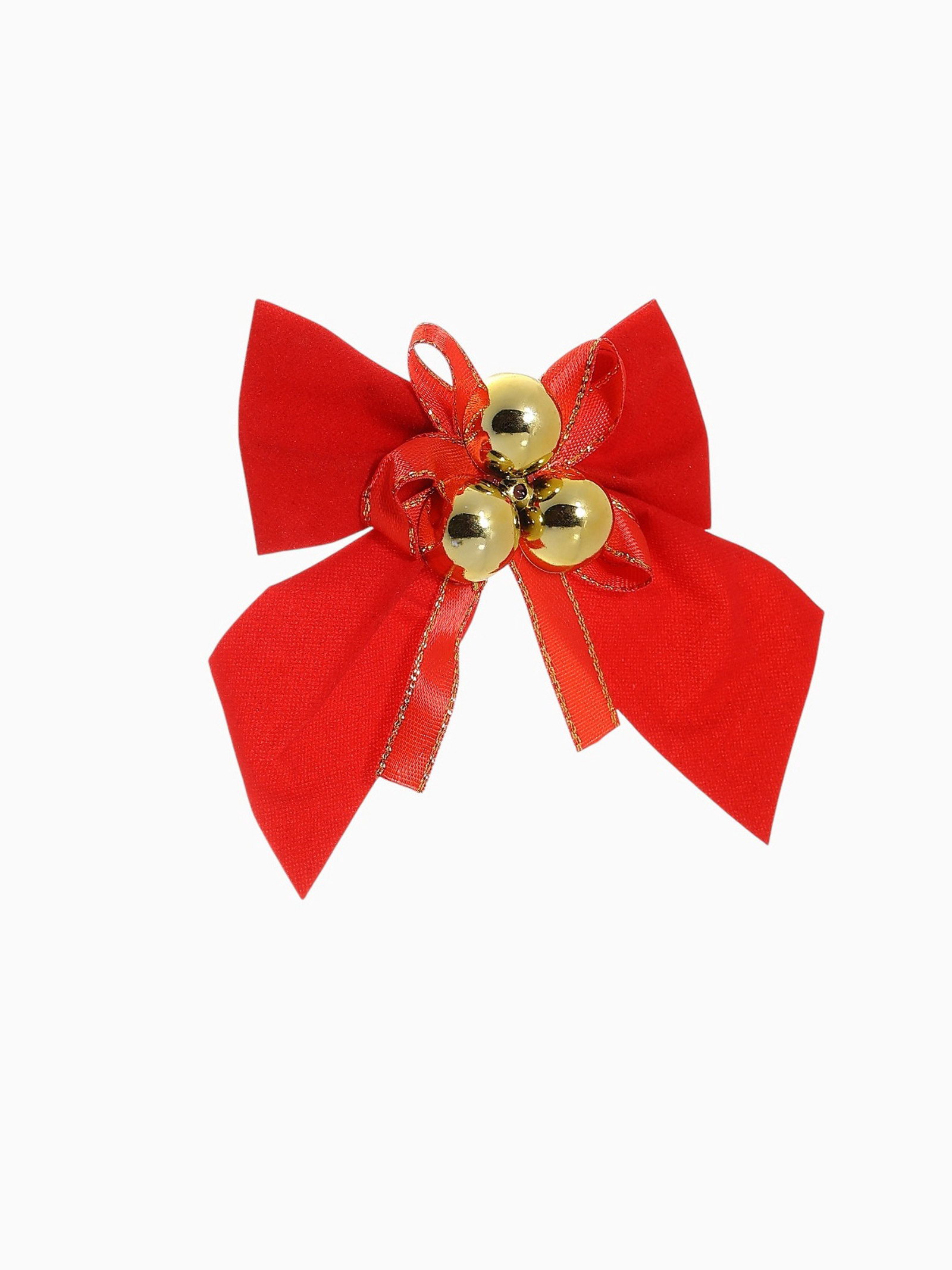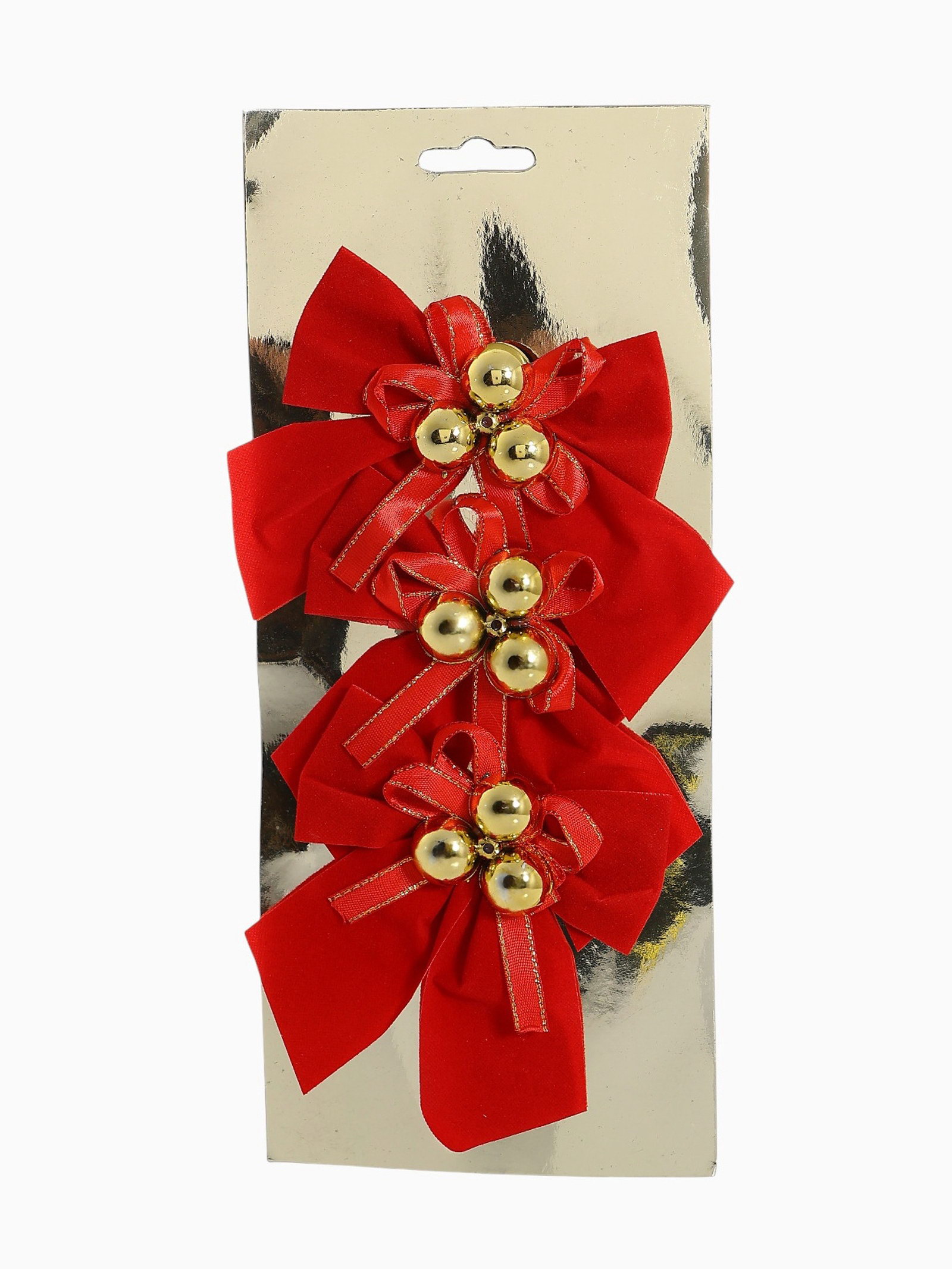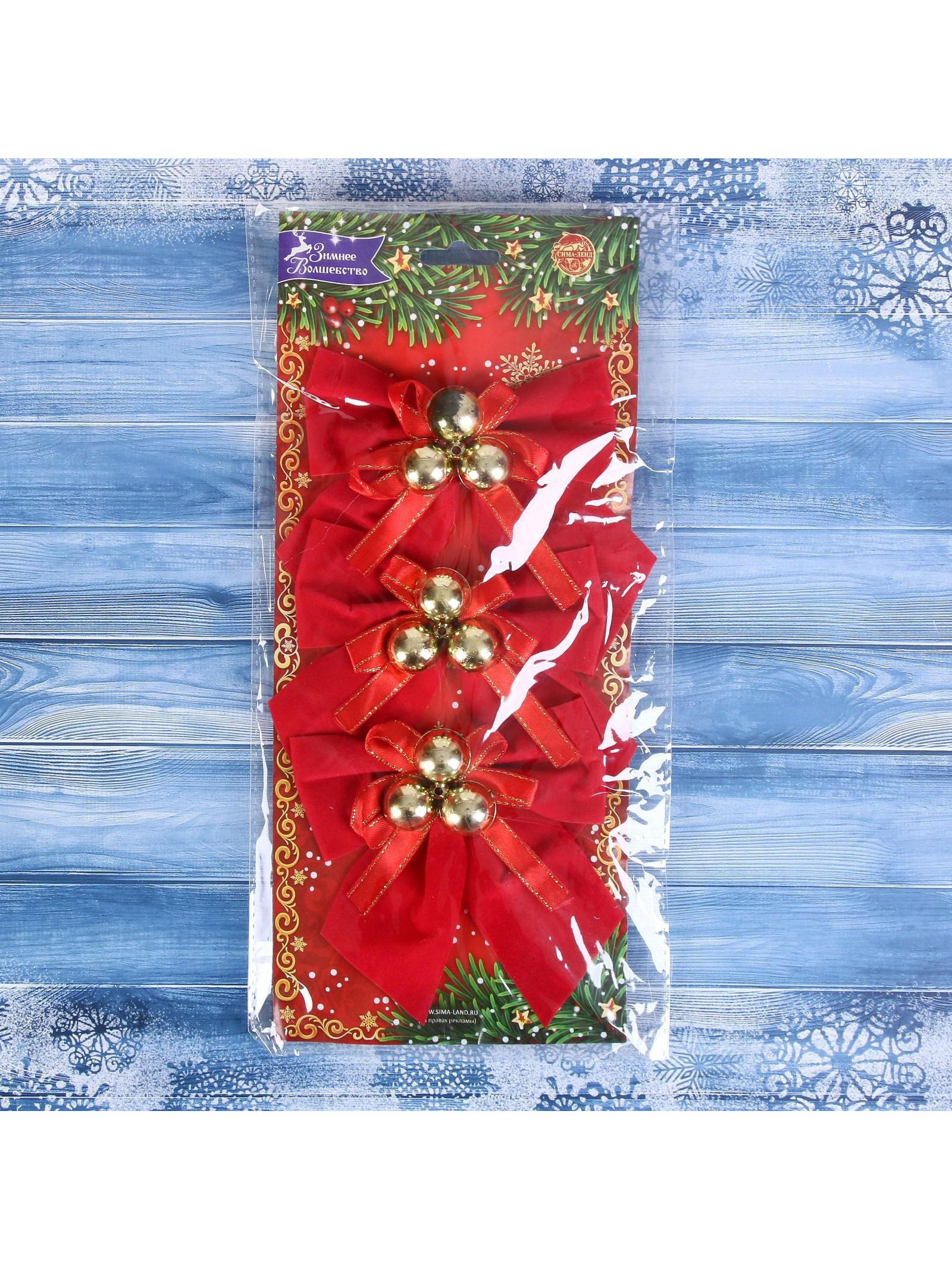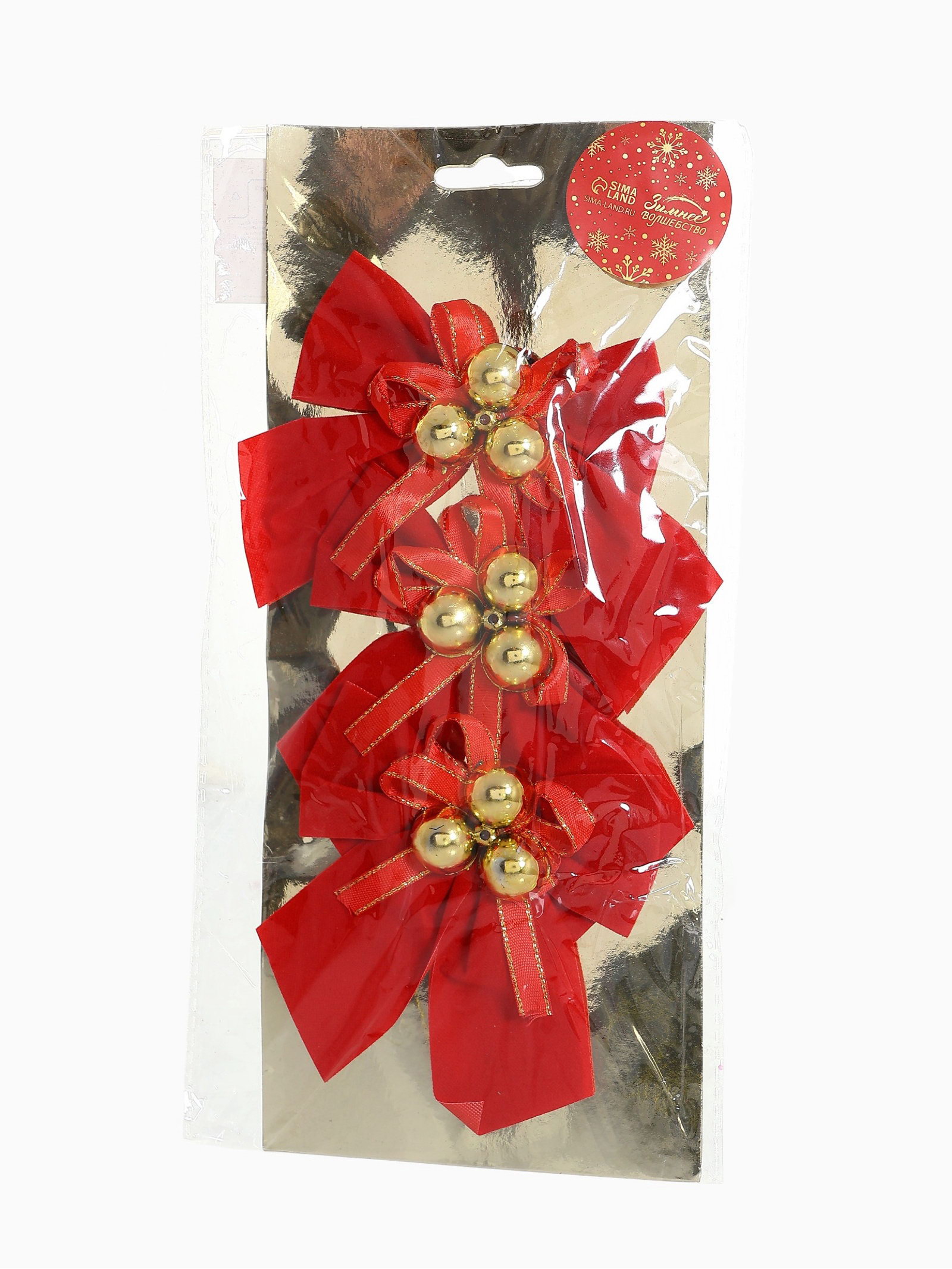 Ёлочные игрушки 3 шт. "Зимнее волшебство. Бант с бубенцами" пластик, 10x10 см, золотисто-красный, 10x10 см., Зимнее волшебство, Китай