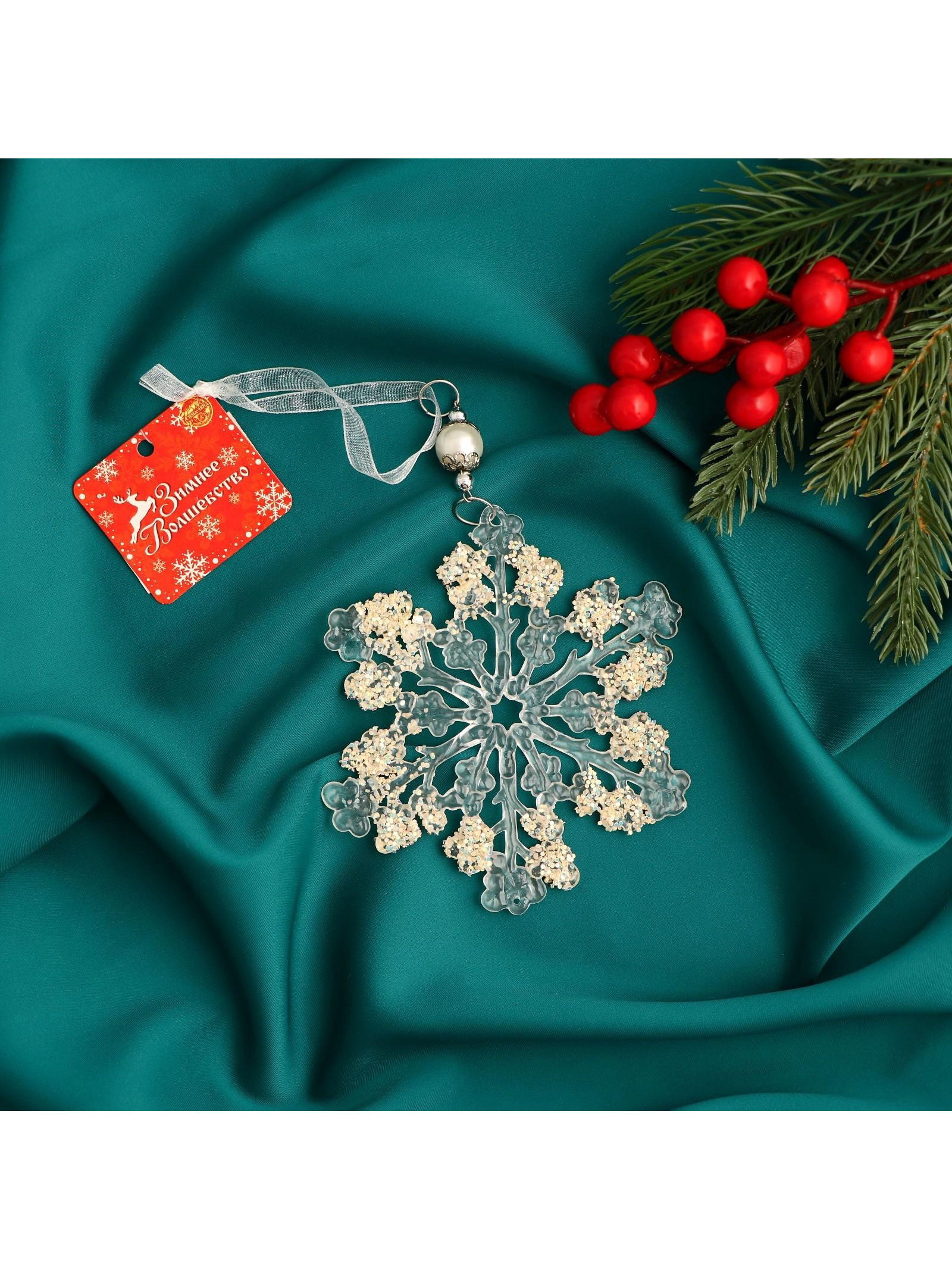 Ёлочная игрушка "Зимнее волшебство. Снежинка ажурная", d=12 см, прозрачный, МИКС, 12x12 см., Зимнее волшебство, Китай