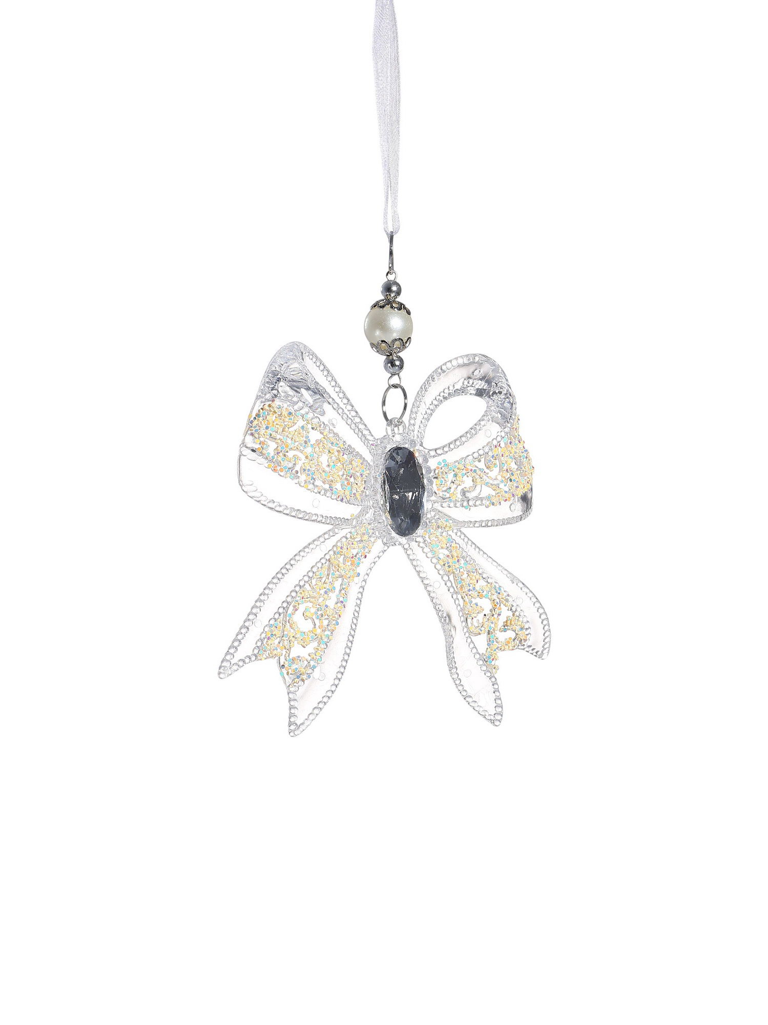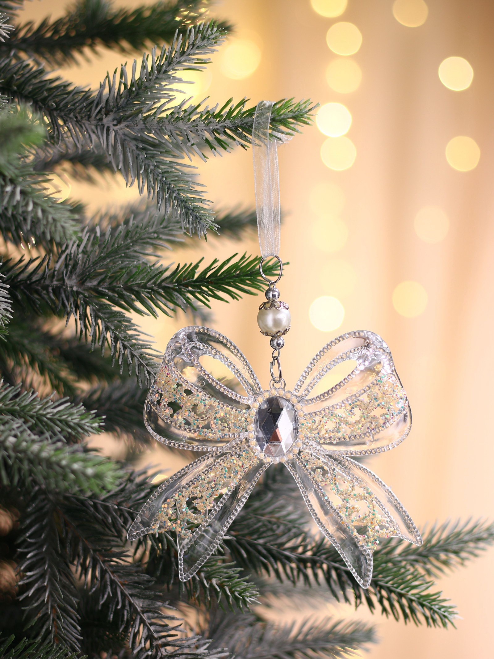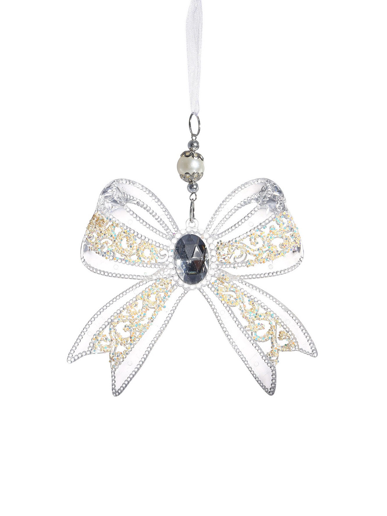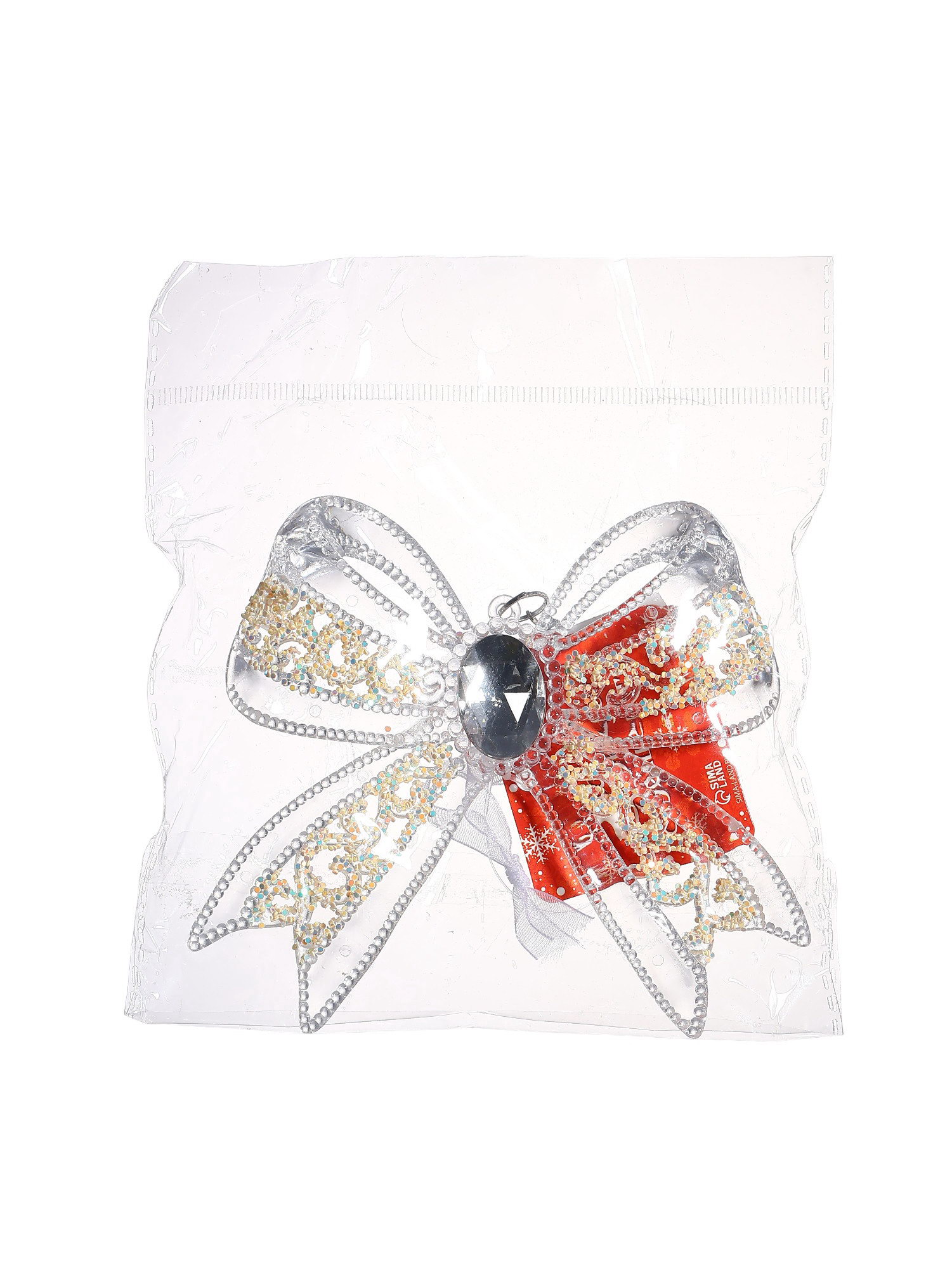Ёлочная игрушка "Зимнее волшебство. Бантик блеск", 12x10.5 см, прозрачный, 12x10.5 см., Зимнее волшебство, Китай
