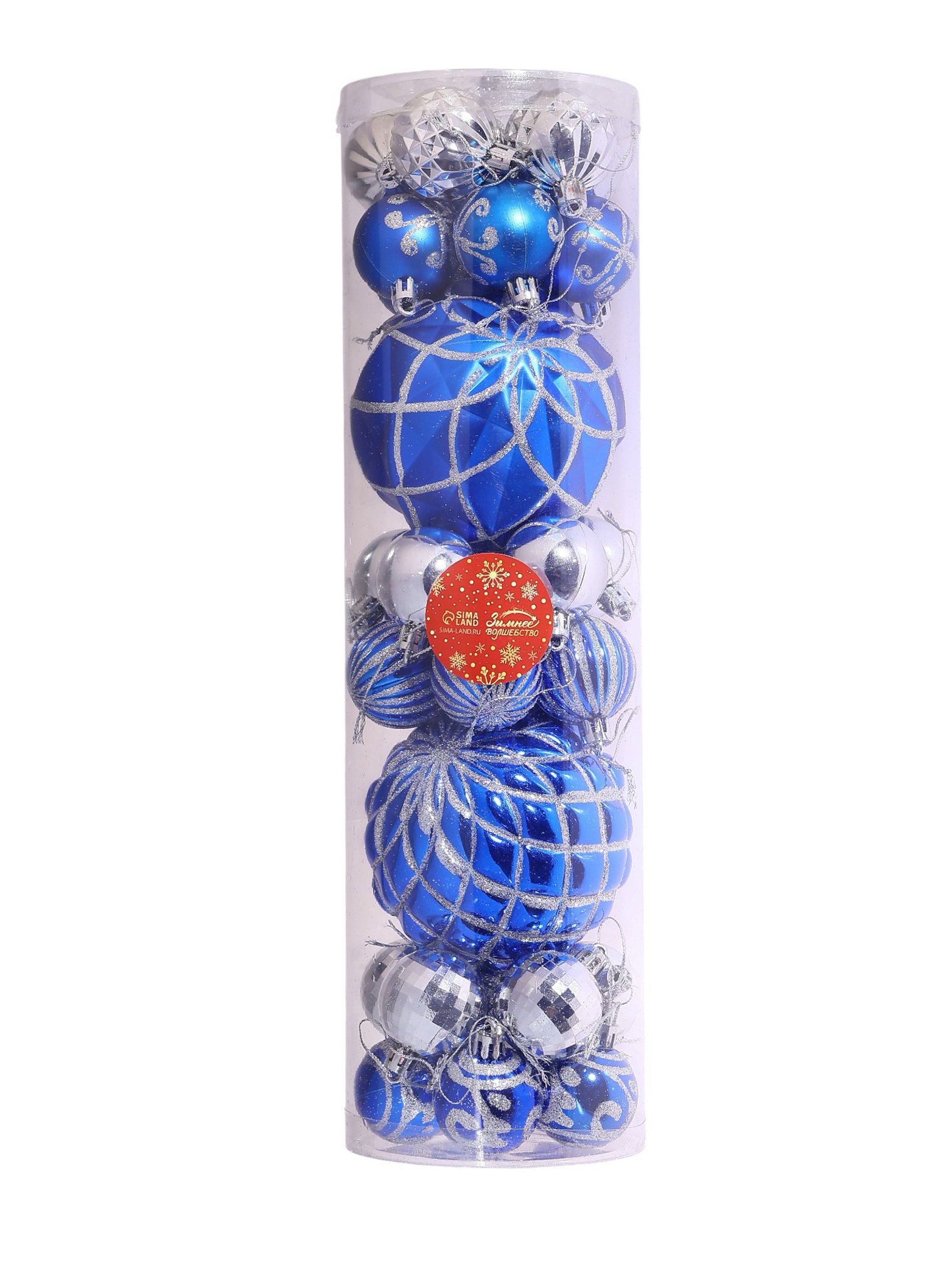 Ёлочные игрушки "Карнавал", шары новогодние, набор 32 шт., голубой/серебристый, 10x10x32 см., Зимнее волшебство, Китай
