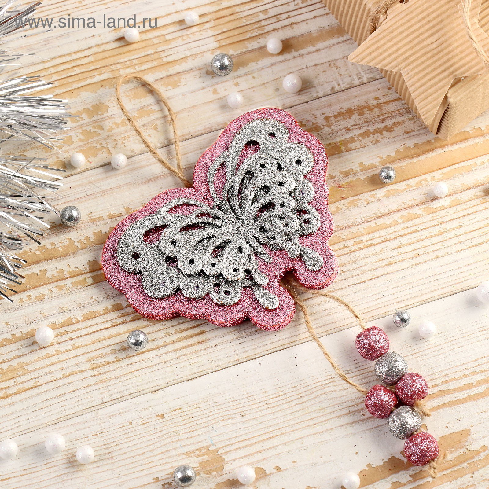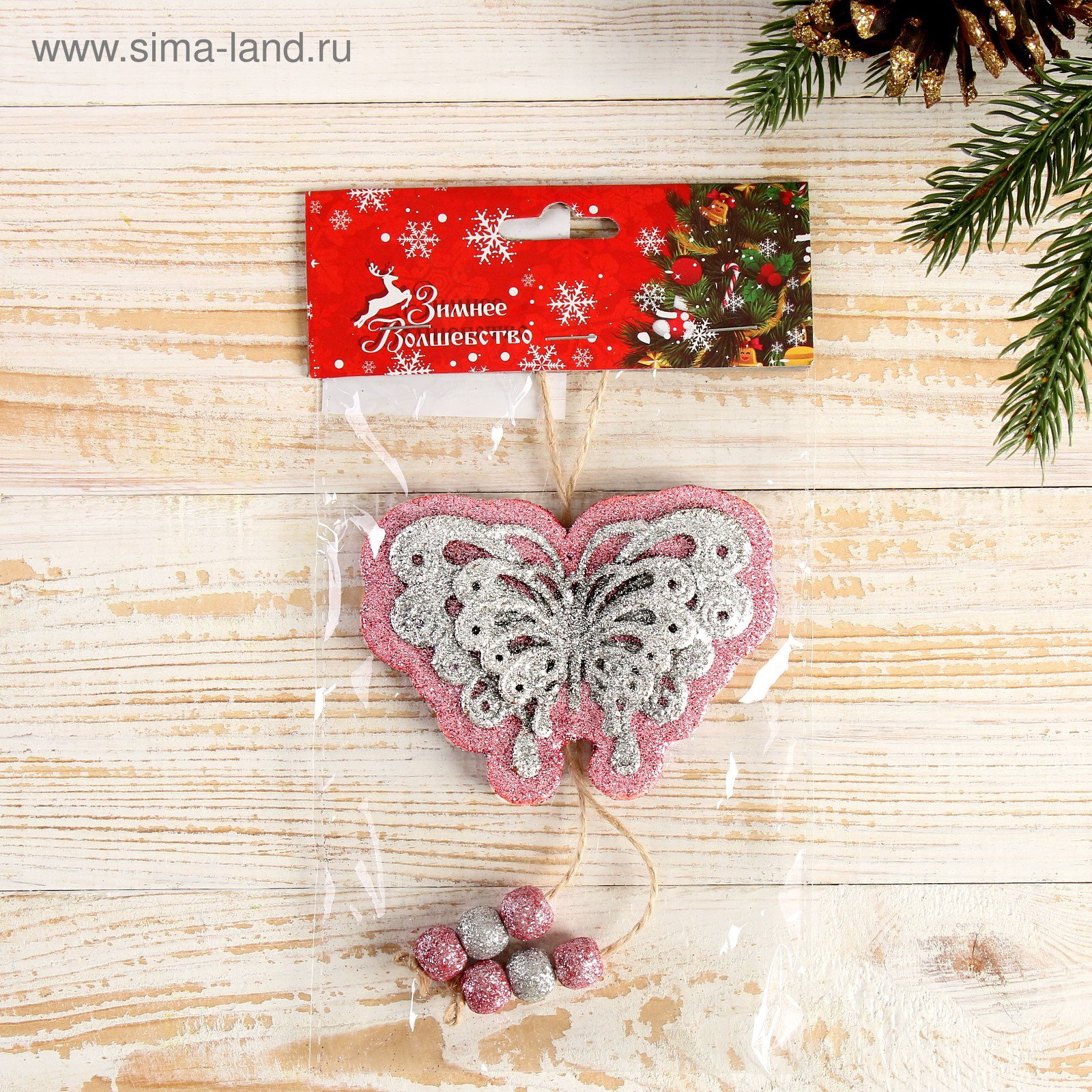 Украшение ёлочное "Бабочка" 10х7 см, серебристо-розовый, 10x7 см., Зимнее волшебство, Китай