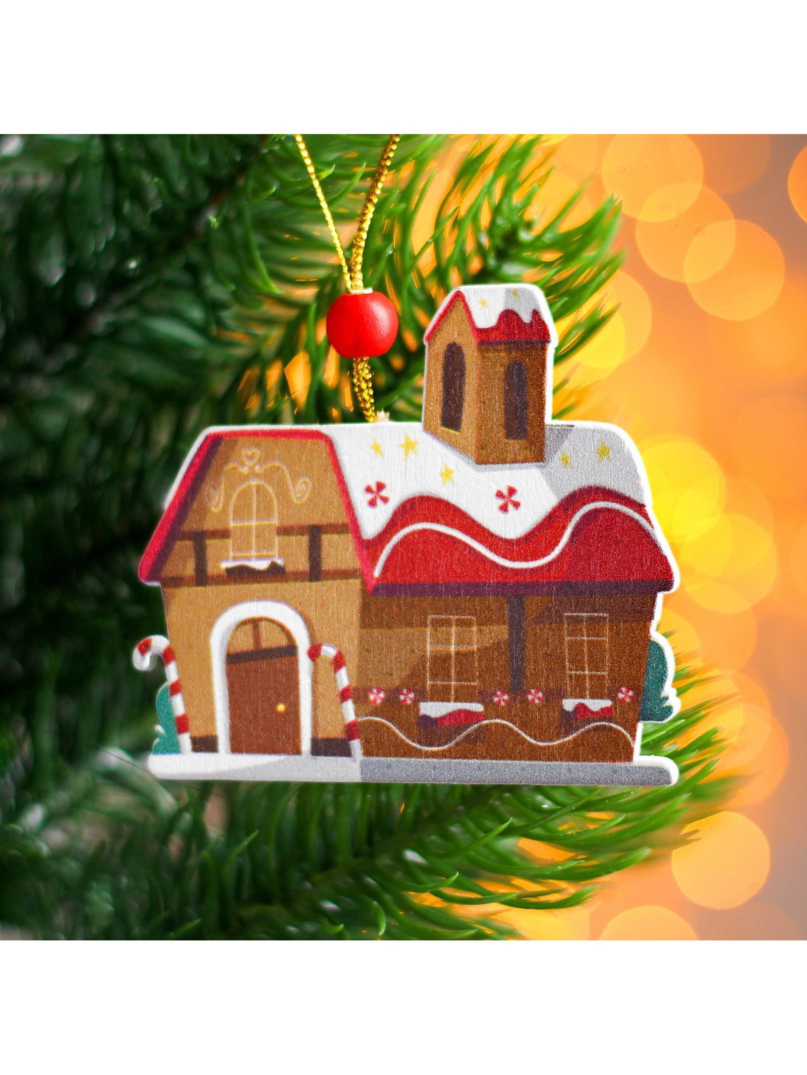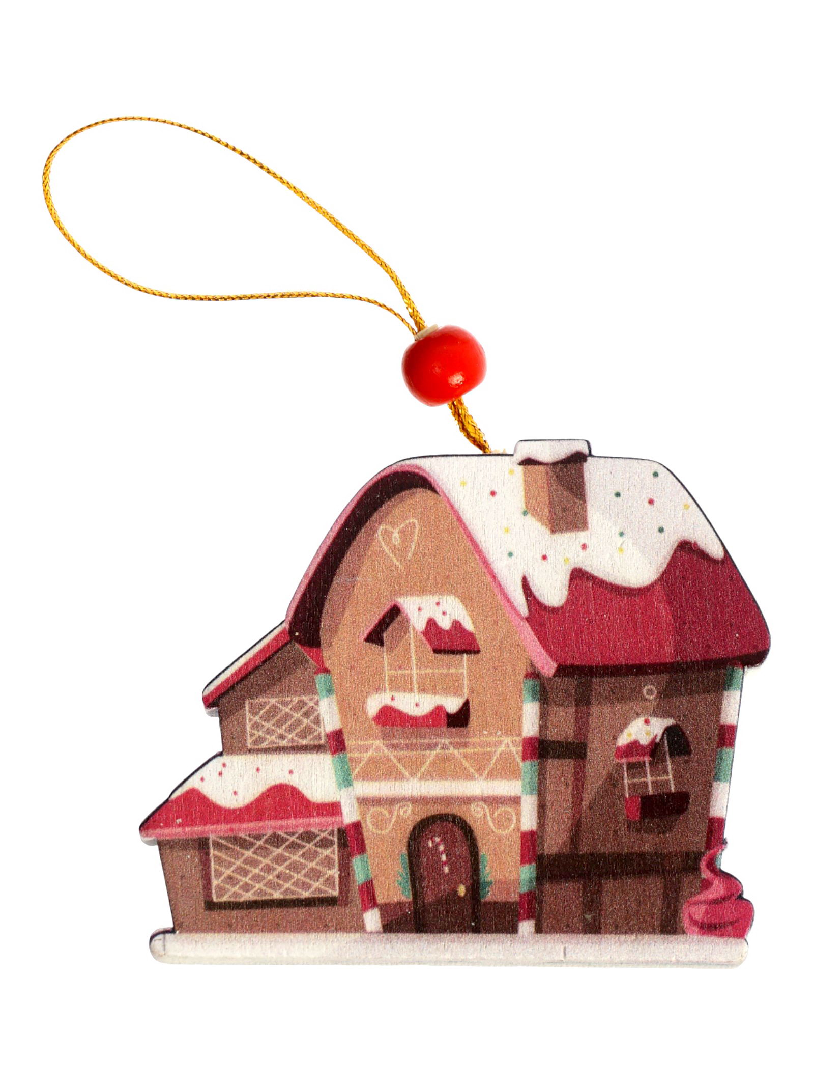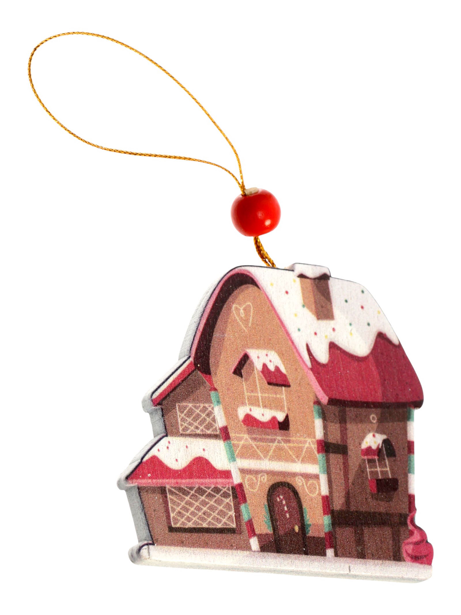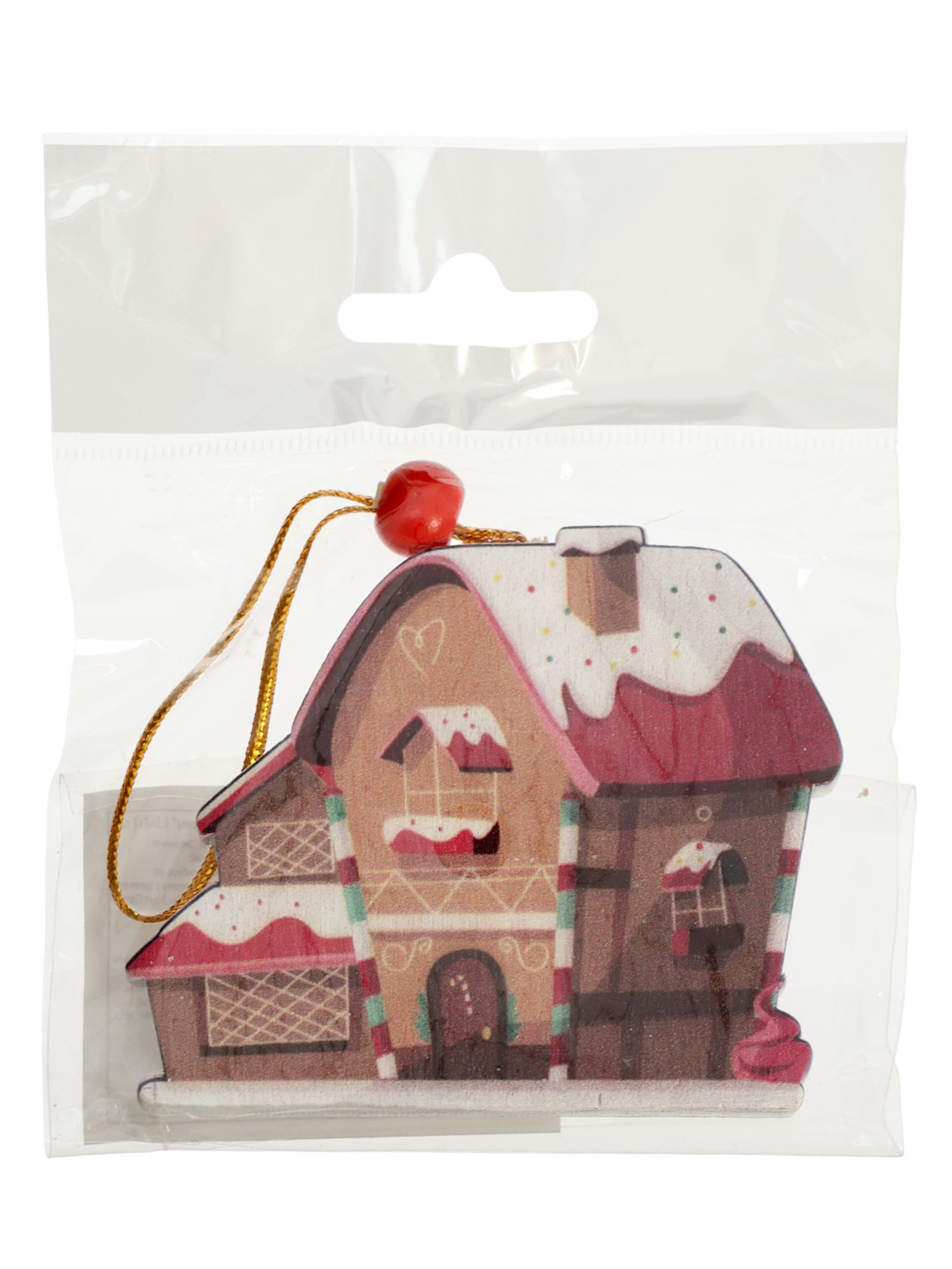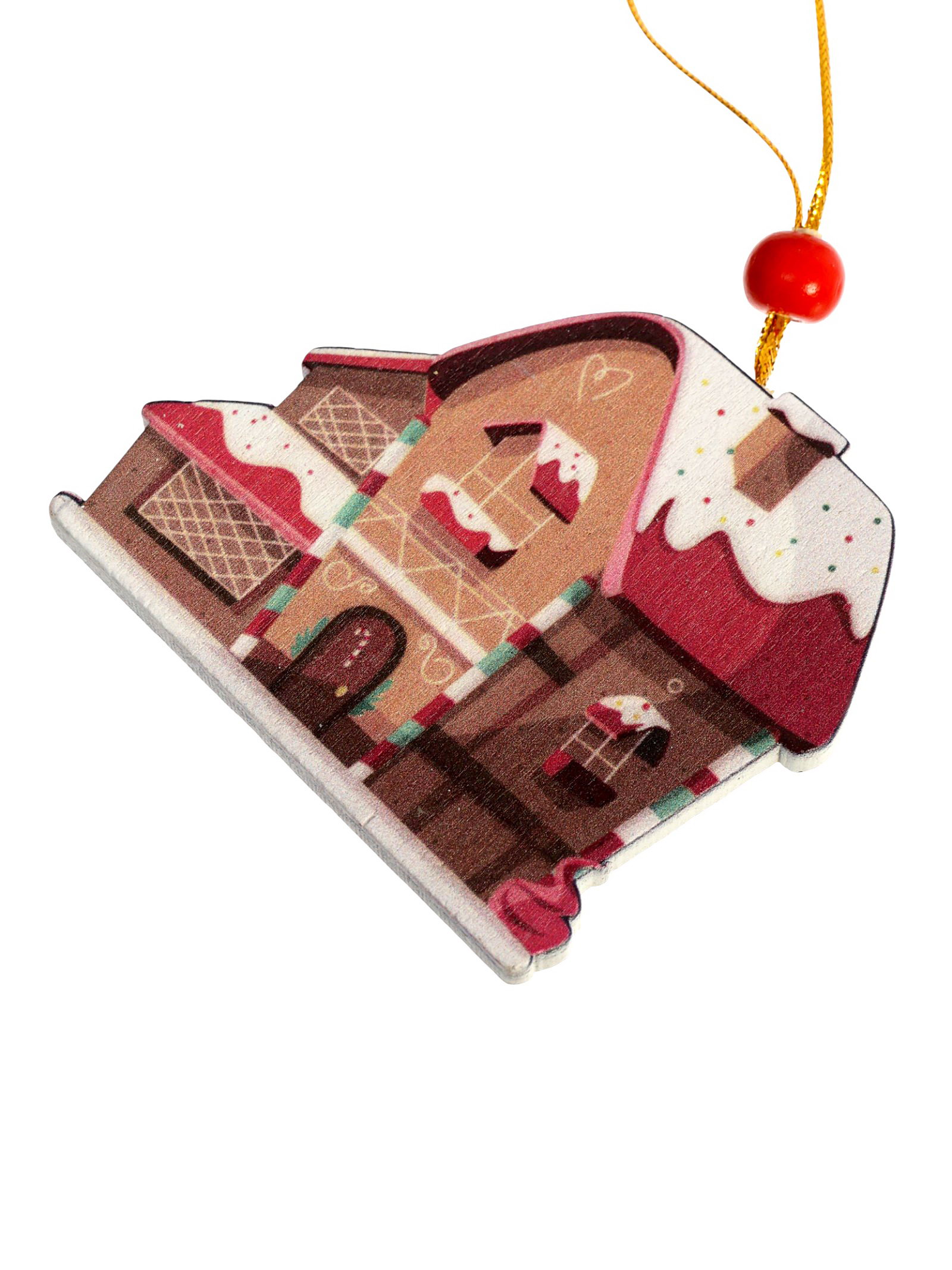 Елочная игрушка деревянная "Дом пряник", 0.5x7x7 см, 7x7x0.5 см., Лесная мастерская, Китай